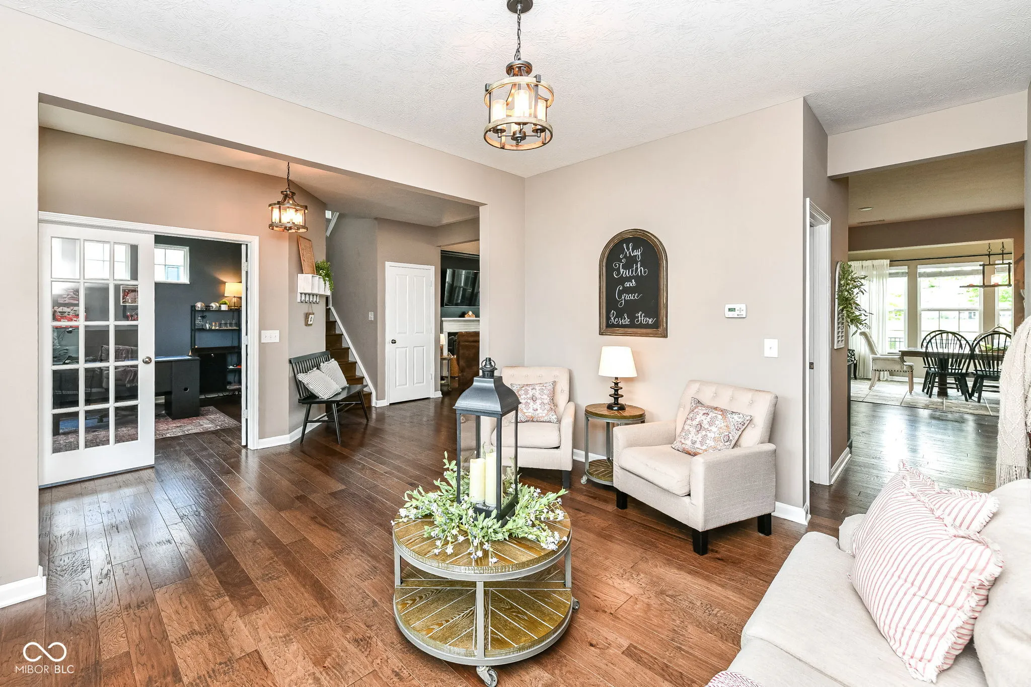 Welcome to your dream home! This stunning 4BR + Open Loft residence features a master bedroom suite and a spacious three-car garage. Enjoy a water view and impeccable landscaping from the comfort of your fully fenced backyard. The bright, white kitchen boasts a center island, breakfast bar, and flows into the formal dining room – perfect for entertaining. A main floor office provides a quiet workspace. The great room offers abundant natural light, creating a bright and airy ambiance. Relax in the Florida sunroom or keep things organized in the convenient cubbies area. Neighborhood boasts a community pool. Experience luxury living at its finest! Negotiable items: Outdoor TV, 4 individual chairs at the island and counter, both black coffee bar hutches, snowblower