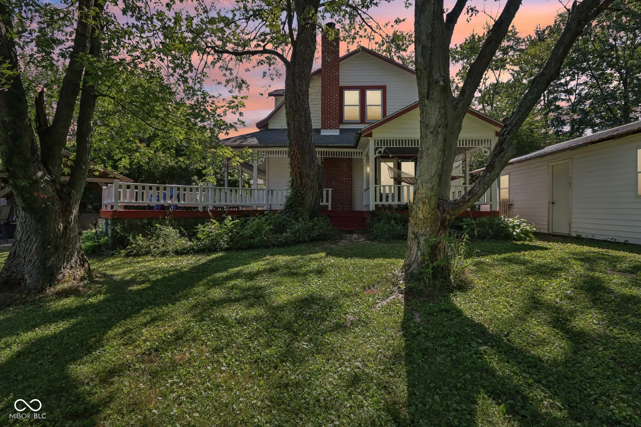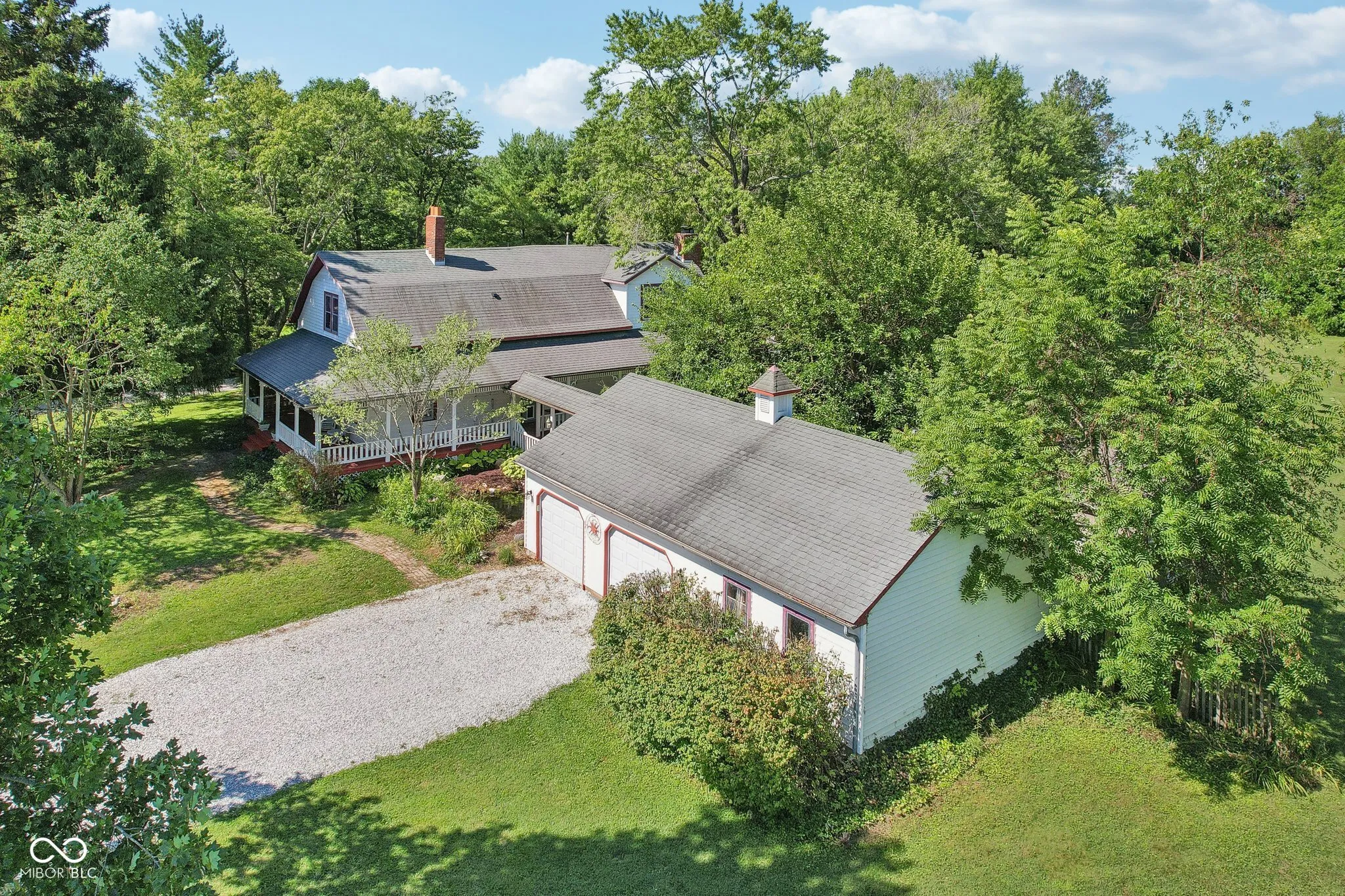 Country living near the city! Attractive Franklin Township 3 BR/3BA home near the heart of Wannamaker w/ 3.35 acres, huge carriage style 2 car garage w/ a workshop, she-shed and no HOA! Treelined driveway and wrap around porch invite you inside. Updated KT feat granite CT’s, subway tile backsplash, SS appliances, farmhouse sink, & pantry w/ barn door access. Living room & family room with built in bookcases, and Family room masonry woodburning FP for cool nights in. Den/office/sitting room(or guest room) w/ hardwood floors, french doors, window bench seating and plenty of storage cubbies. Primary BR has woodburning FP, dbl closets, and Primary BA shows off walk in shower, clawfoot tub, skylight, tiled floors. Guest BR2 has dbl walk in closets and newer windows. BR3 w/ built in bookshelves & HW floors. Guest BA w/ newer tub/shower insert, VP flooring, newer vanity. Main level mudroom w/ updated full BA for cleaning off after a long day. Custom she-shed w/ mini ductless system perfect for craft space or guest sleeping. Relax watching the goldfish in the pond, take a nap 1n the back porch hammock or enjoy a cup of coffee on the front porch swing. Gazebo w/ concrete pad for your hot tub. Dual zone gas furnace/dbl AC’s(’18), new gravel drive(’24), newer KT, DR, den/office windows(’19), main level BA(’21), newer garage doors, pond pump/liner(’24), mini split(’24). Chicken coup perfect for natural alarm clocks. Woodshop/workshop w/ wood burning stove for all your projects. Carport/tractor parking. Front portion of home built in 1876, back portion of home believed completed in 1990. Walking distance to restaurants, stores and activities. short drive to the interstate or downtown. So much to list, this home has something for everyone.