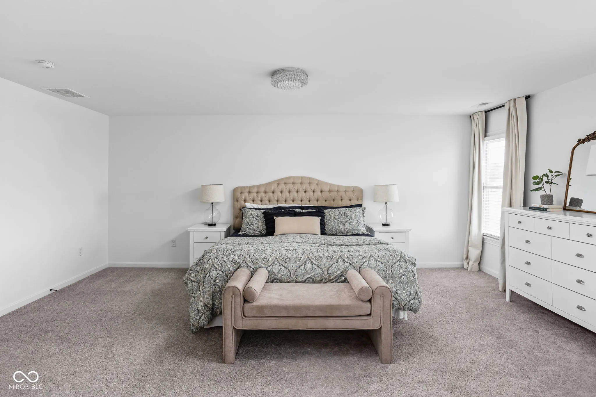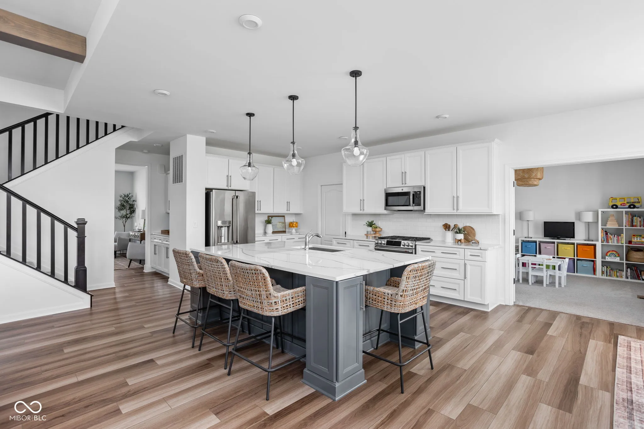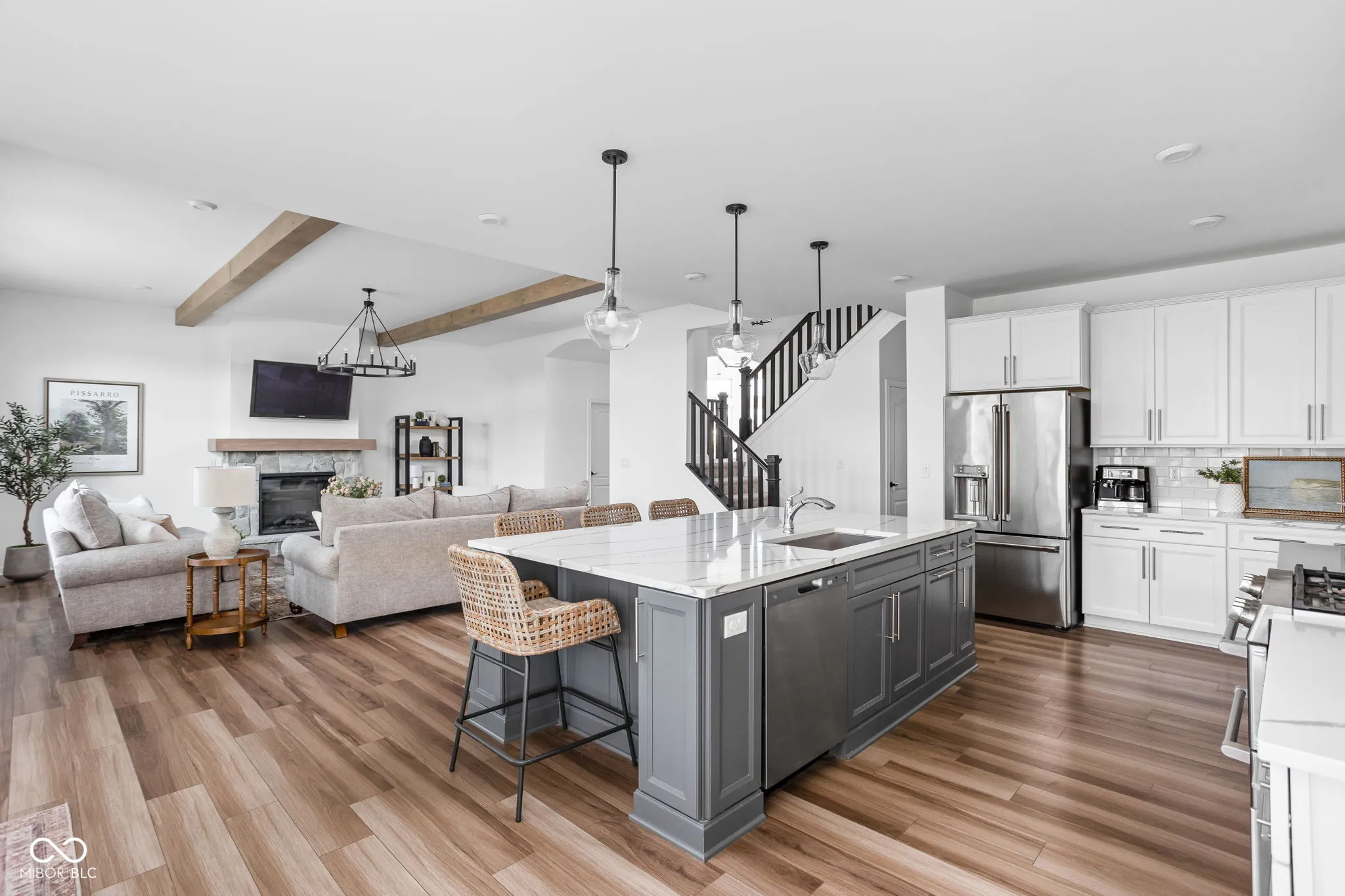 Luxury living awaits in this exquisite one-year-old home in Westfield’s prestigious Chatham Hills community. The expansive first floor features dual staircases and a dramatic 2-story entryway. Highlighting the home is a stunning solarium with 12-foot ceilings, a grand archway, and magnificent windows. The open kitchen and great room form the heart of the home, boasting a custom stone fireplace and exposed beams that create a warm and inviting atmosphere. The kitchen is a chef’s dream, featuring an oversized island with quartz countertops, upgraded cabinetry, double ovens, and a butler’s pantry. Enjoy your meals in the morning room while taking in the picturesque pond views. Adjacent to the butler’s pantry, a versatile lounge area awaits, perfect for enjoying a cocktail or serving as a formal dining room. The first floor also includes a den/flex room with glass doors offering beautiful water views, as well as a mudroom/laundry room and pantry discreetly tucked behind a pocket door. Upstairs, the primary suite is a luxurious retreat with a spacious sitting room, two walk-in closets, dual vanities, and a lavish tiled glass shower. The upper level also features three generously sized bedrooms and a hall bath. The full basement is over 1800 sqft with 9-foot ceilings, a wet bar, and full bath rough-ins, offers endless possibilities for customization. This home is situated on a premium .34-acre lot with serene pond views, irrigation, and landscaping designed for future privacy. The property includes a three-car side-load garage with an extended driveway. Additionally, the purchase comes with a Sport and Social Membership to The Club at Chatham Hills, providing access to top-tier amenities including Pete Dye golf courses, a driving range, indoor and outdoor pools, tennis and pickleball courts, restaurants, a fitness center, and more.