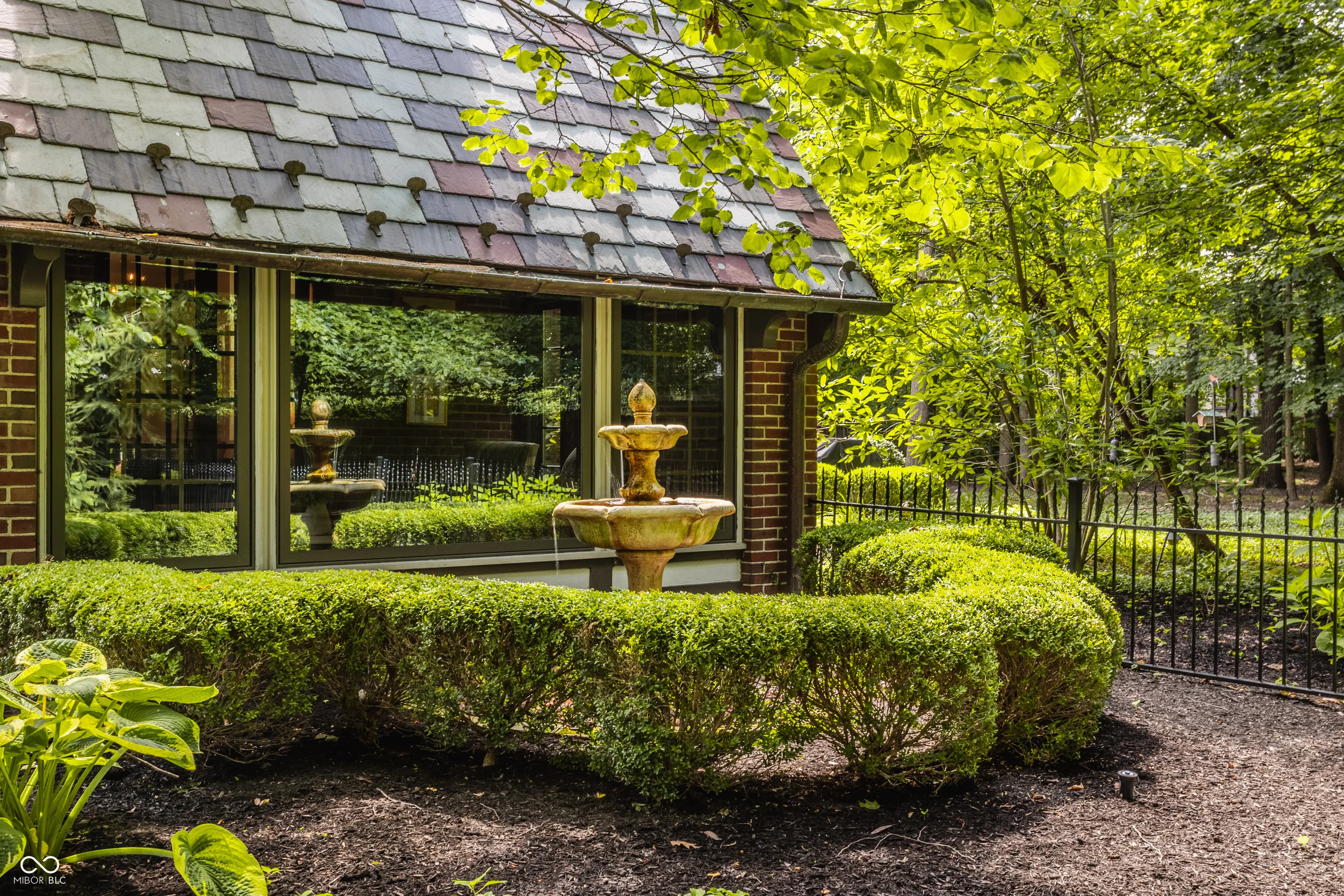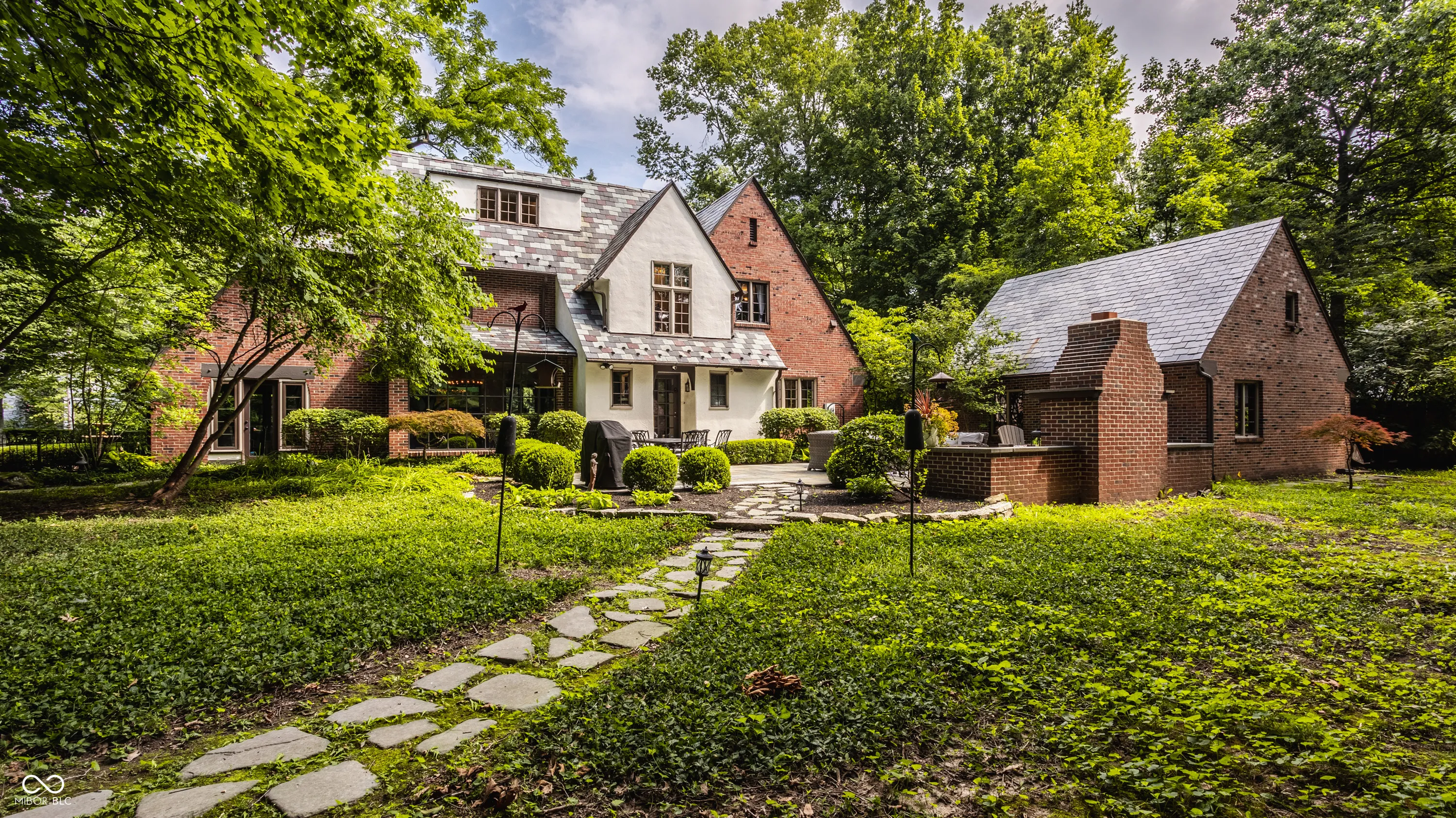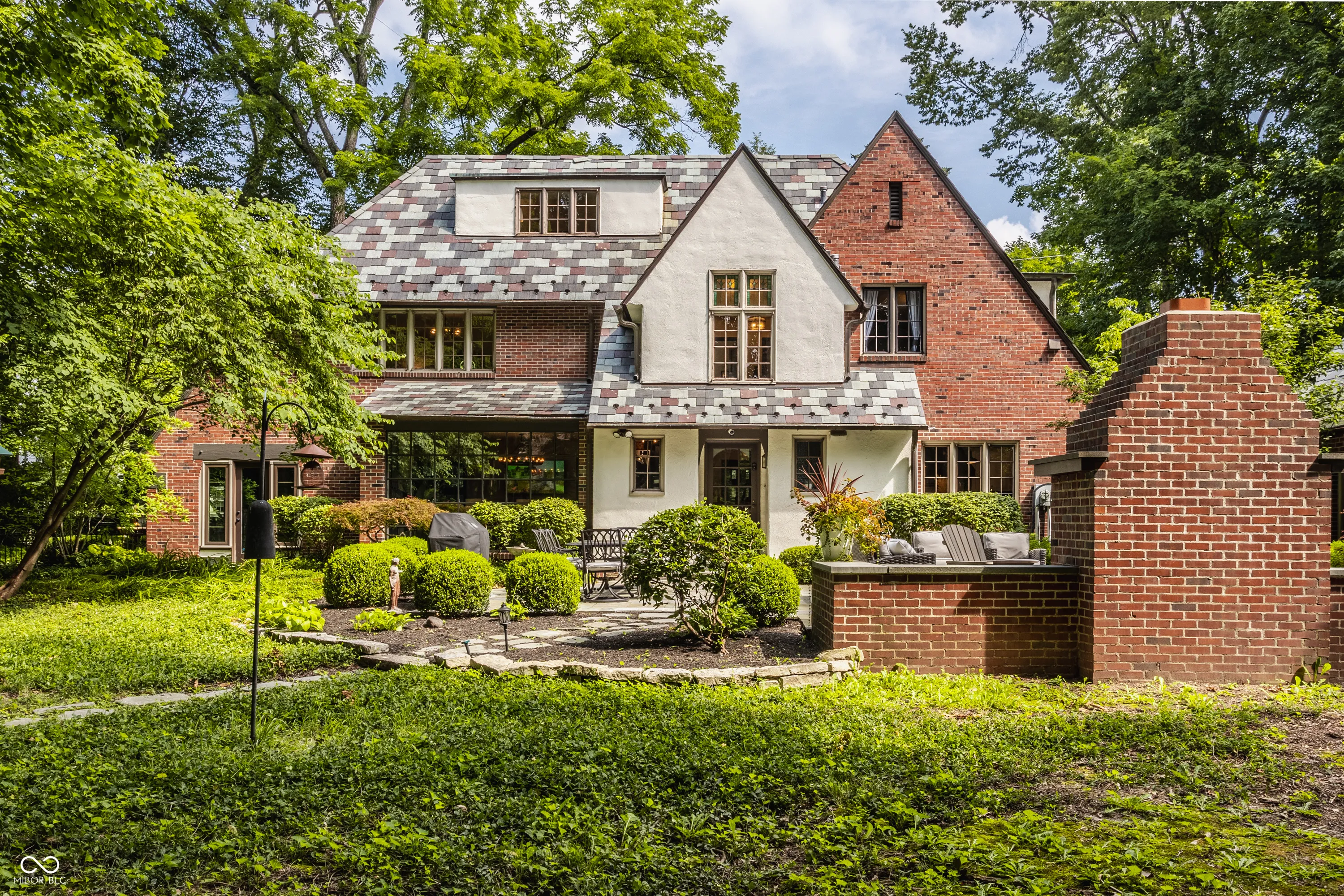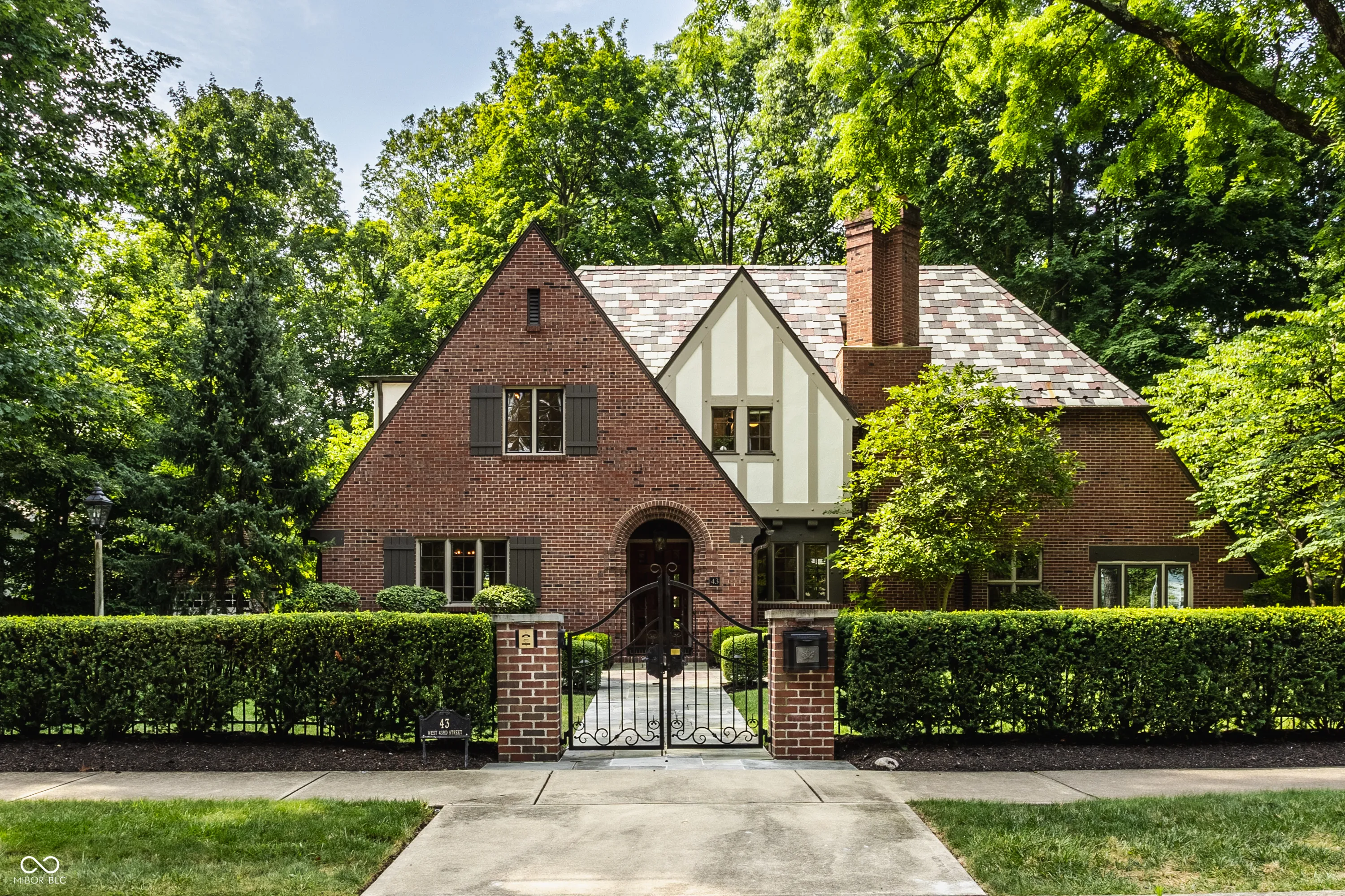 Nestled on large lot just off of the historic Meridian Street corridor, this exquisite tudor-style home effortlessly combines original craftsmanship with modern functionality, making this a truly special piece of Indianapolis real estate. Natural light is showcased throughout the home’s beautifully placed windows, including the picture perfect view in the living room of the park-like backyard (more on that later!). The circular floor plan on the main level accentuates the large living spaces – the gourmet kitchen easily flows to the formal dining room, which easily spills into the spacious living room and sun room. Upstairs, you will find all four bedrooms and three full bathrooms, including the primary suite with a newly renovated bathroom. The basement boasts beautifully finished spaces, including a custom sauna and steam shower. Outdoors, you will find gated entries and fully fenced yards, blue stone patios and walkways, all within .87 acres of lush landscaping to enjoy. Take note of the custom tree house tucked in the treetops…and don’t be shy to check it out on your visit! Formerly owned by famed Indianapolis architect Evans Woolen and adjacent to the Booth Tarkington House, there is no question that that 43 W 43rd stacks up as an architecturally significant residence in an ideal, sought-after location.