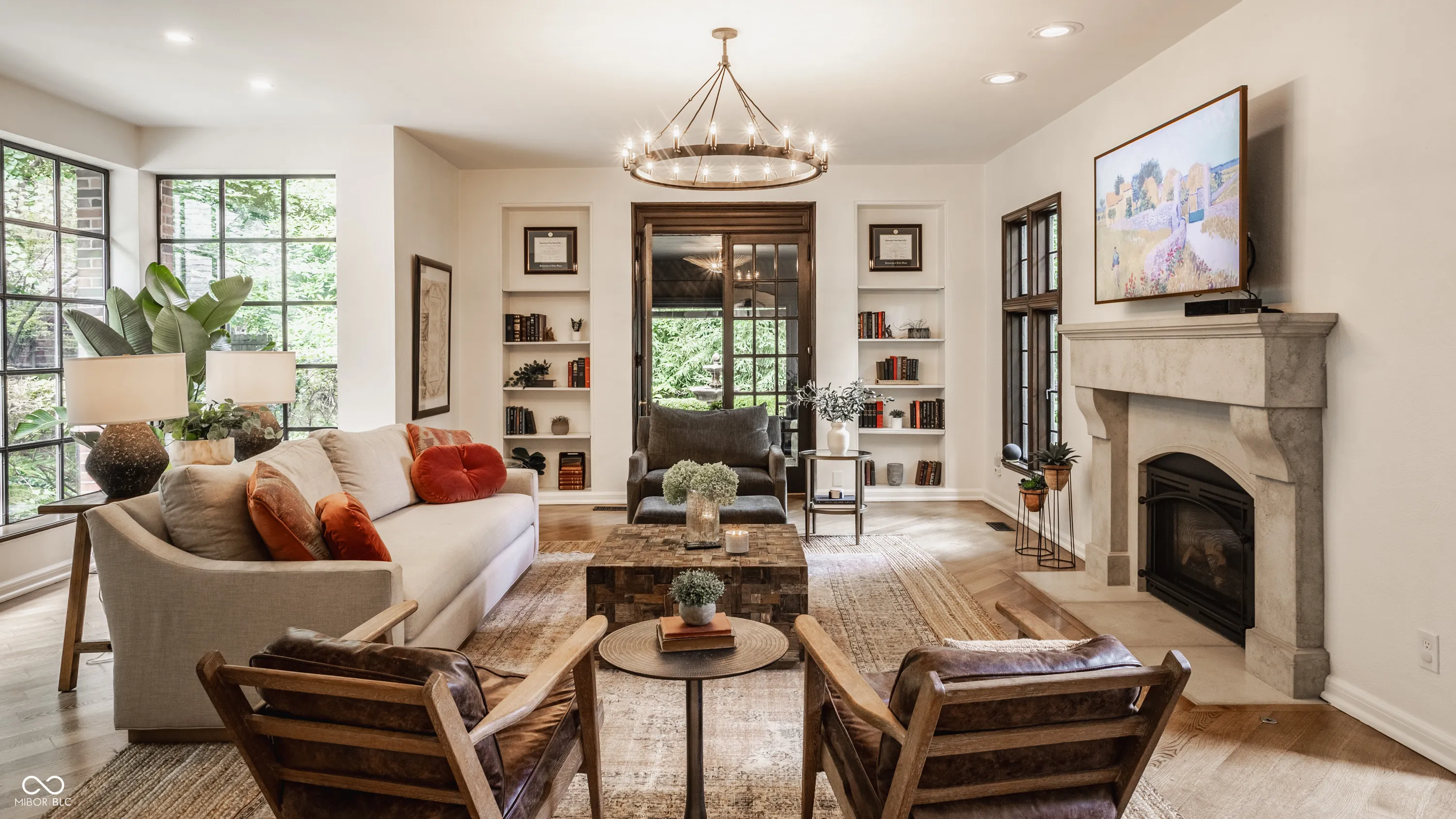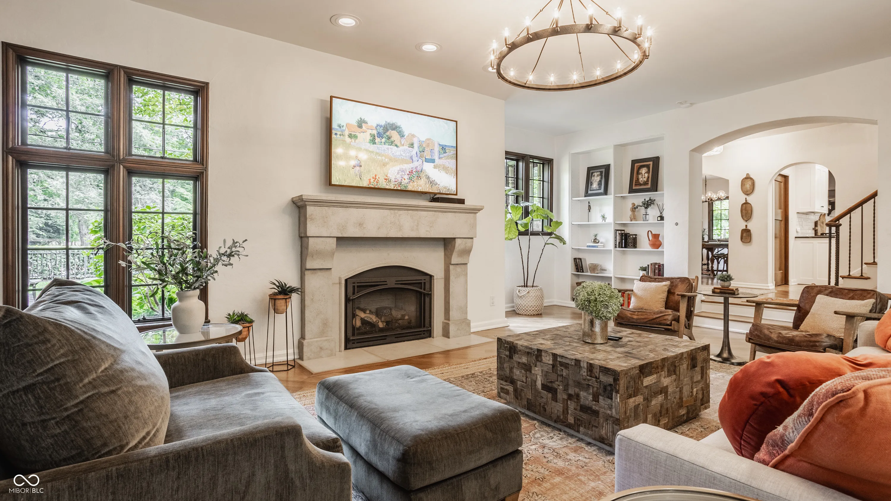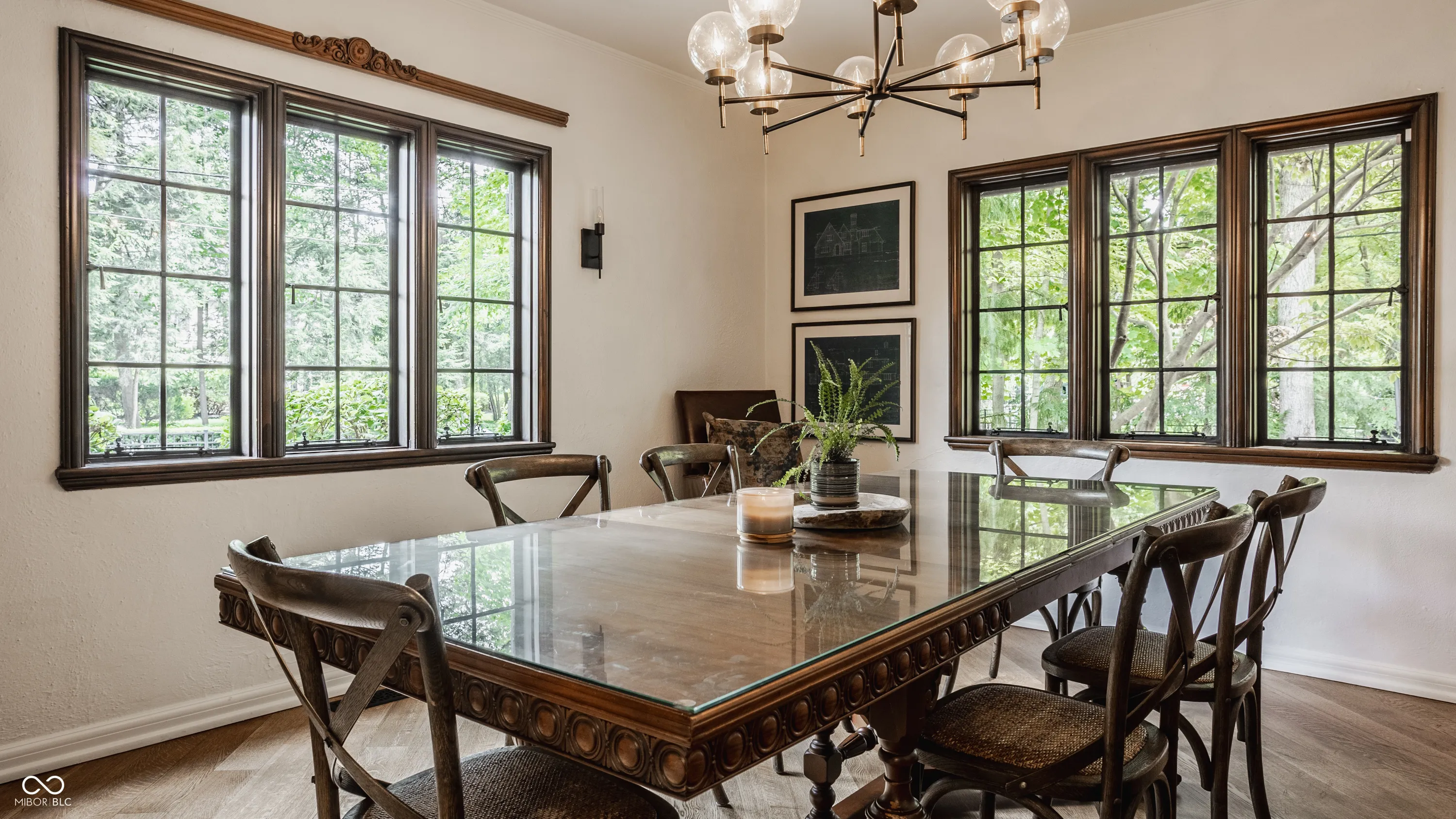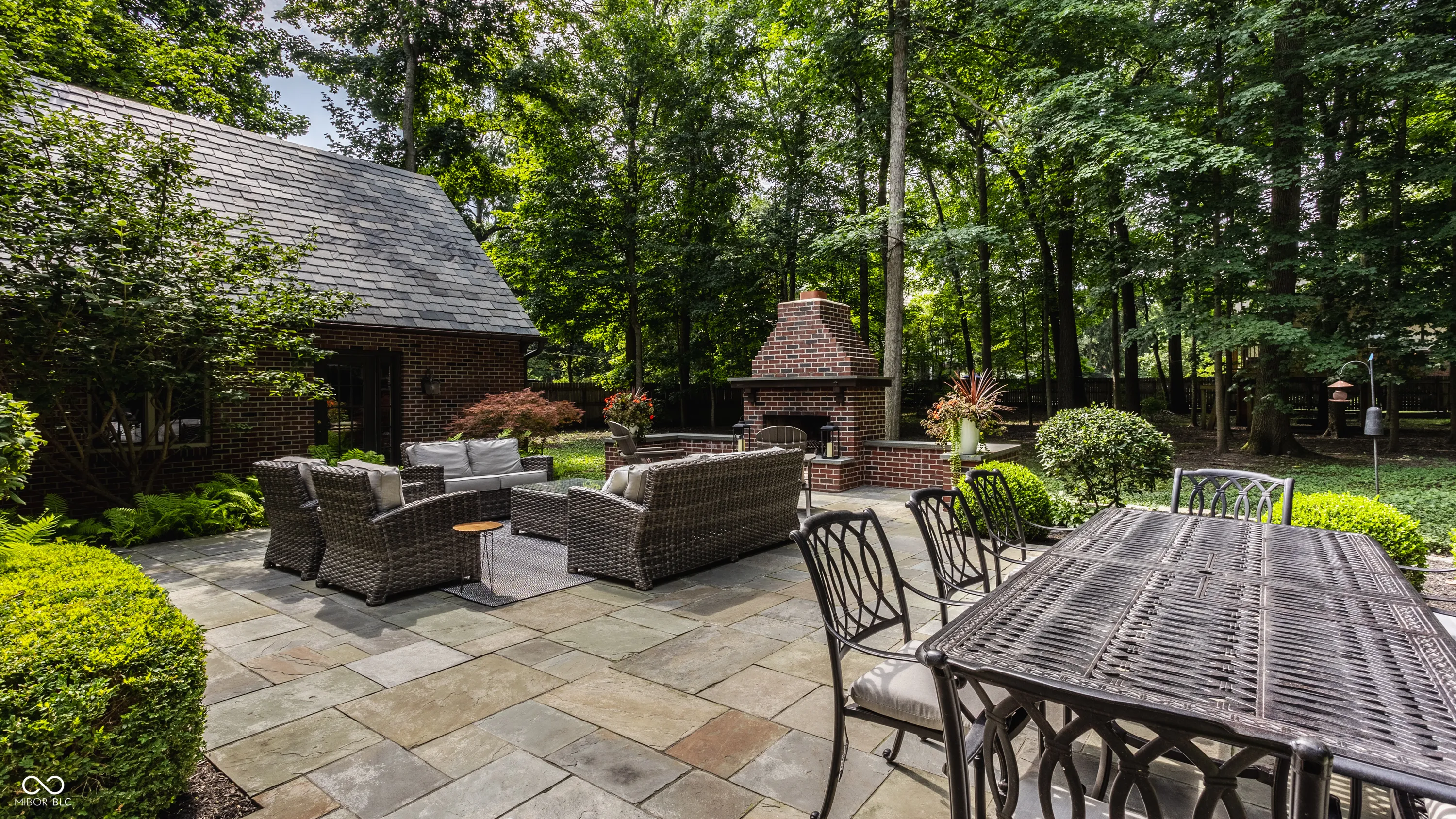 Nestled on large lot just off of the historic Meridian Street corridor, this exquisite tudor-style home effortlessly combines original craftsmanship with modern functionality, making this a truly special piece of Indianapolis real estate. Natural light is showcased throughout the home’s beautifully placed windows, including the picture perfect view in the living room of the park-like backyard (more on that later!). The circular floor plan on the main level accentuates the large living spaces – the gourmet kitchen easily flows to the formal dining room, which easily spills into the spacious living room and sun room. Upstairs, you will find all four bedrooms and three full bathrooms, including the primary suite with a newly renovated bathroom. The basement boasts beautifully finished spaces, including a custom sauna and steam shower. Outdoors, you will find gated entries and fully fenced yards, blue stone patios and walkways, all within .87 acres of lush landscaping to enjoy. Take note of the custom tree house tucked in the treetops…and don’t be shy to check it out on your visit! Formerly owned by famed Indianapolis architect Evans Woolen and adjacent to the Booth Tarkington House, there is no question that that 43 W 43rd stacks up as an architecturally significant residence in an ideal, sought-after location.