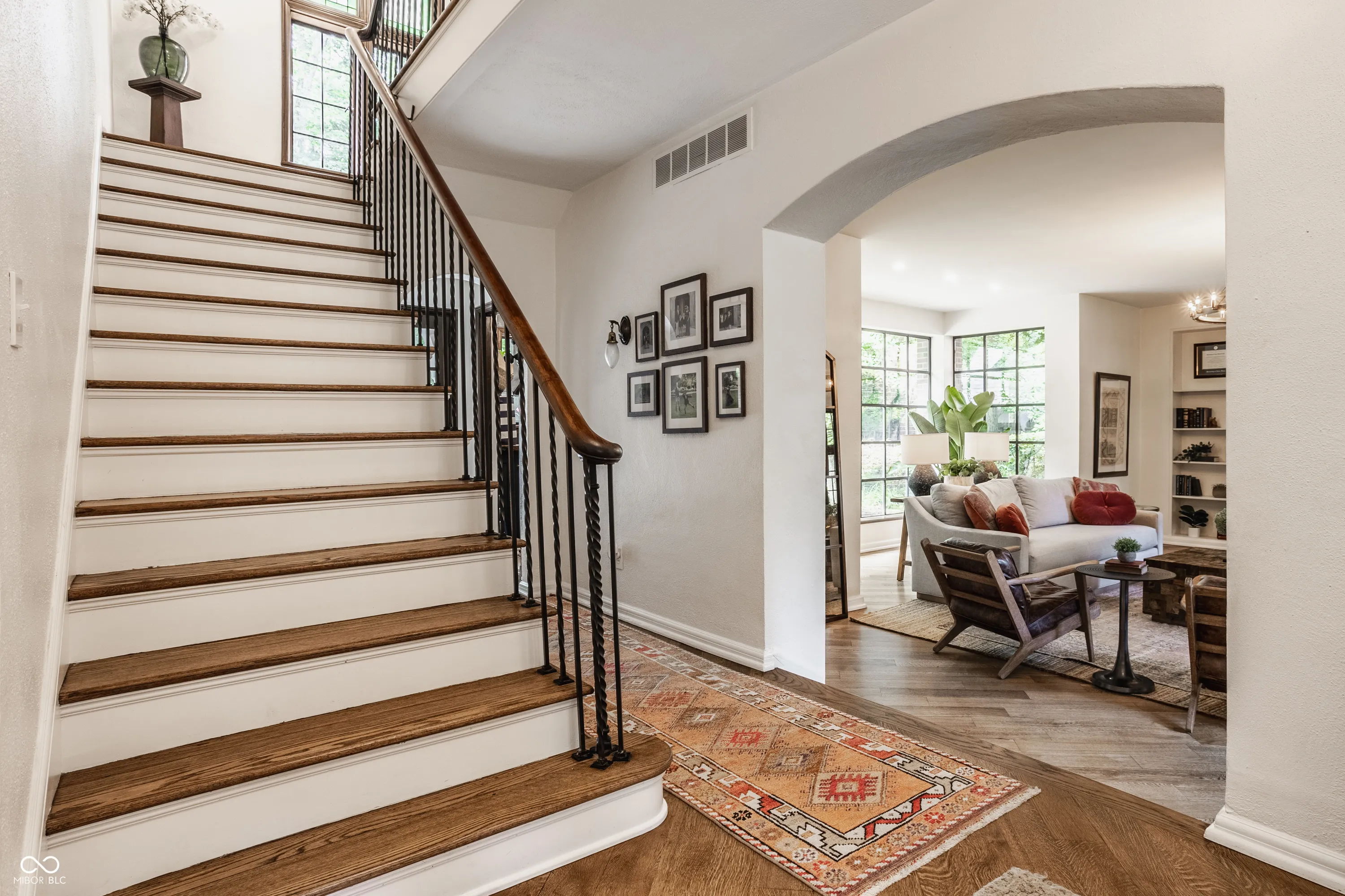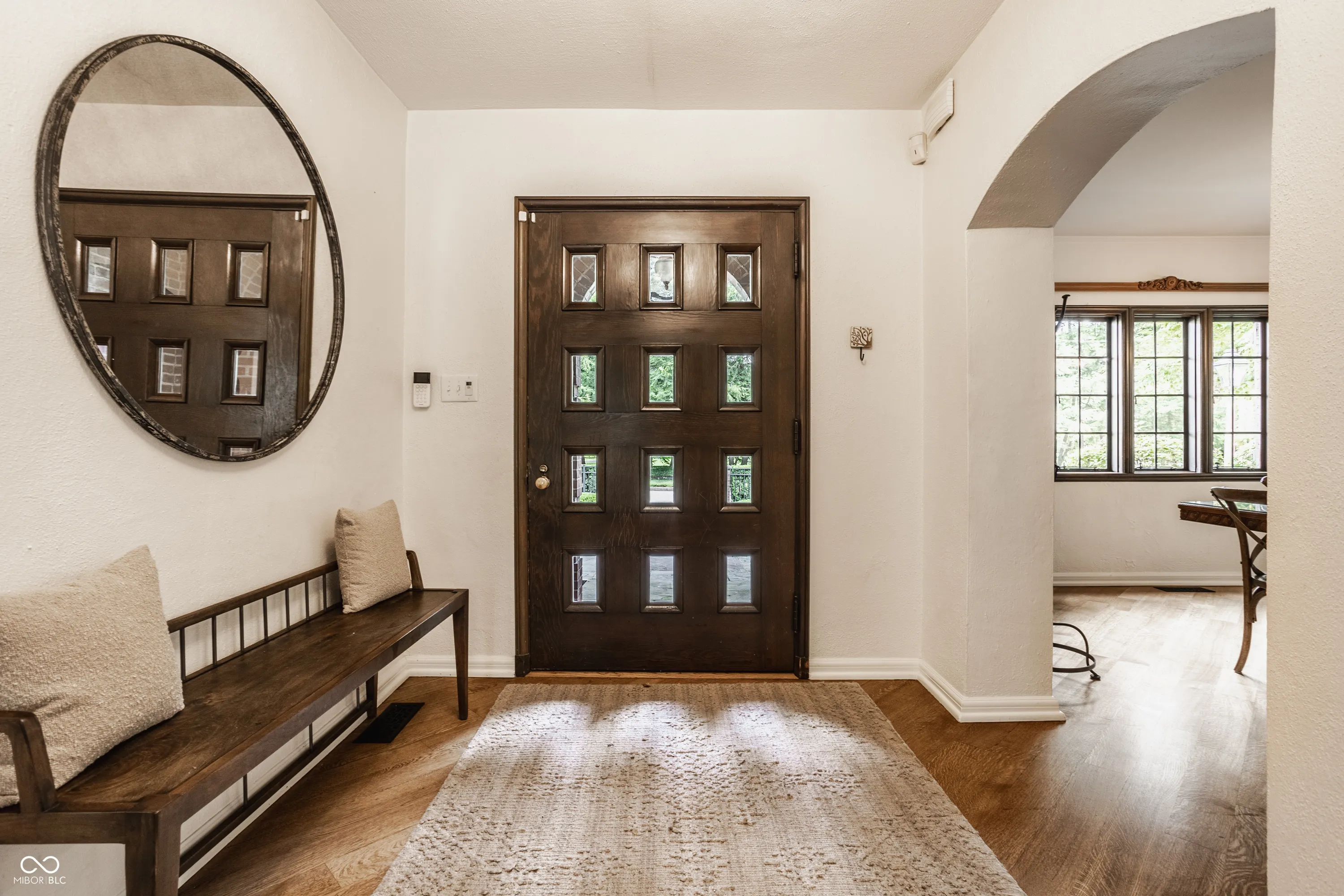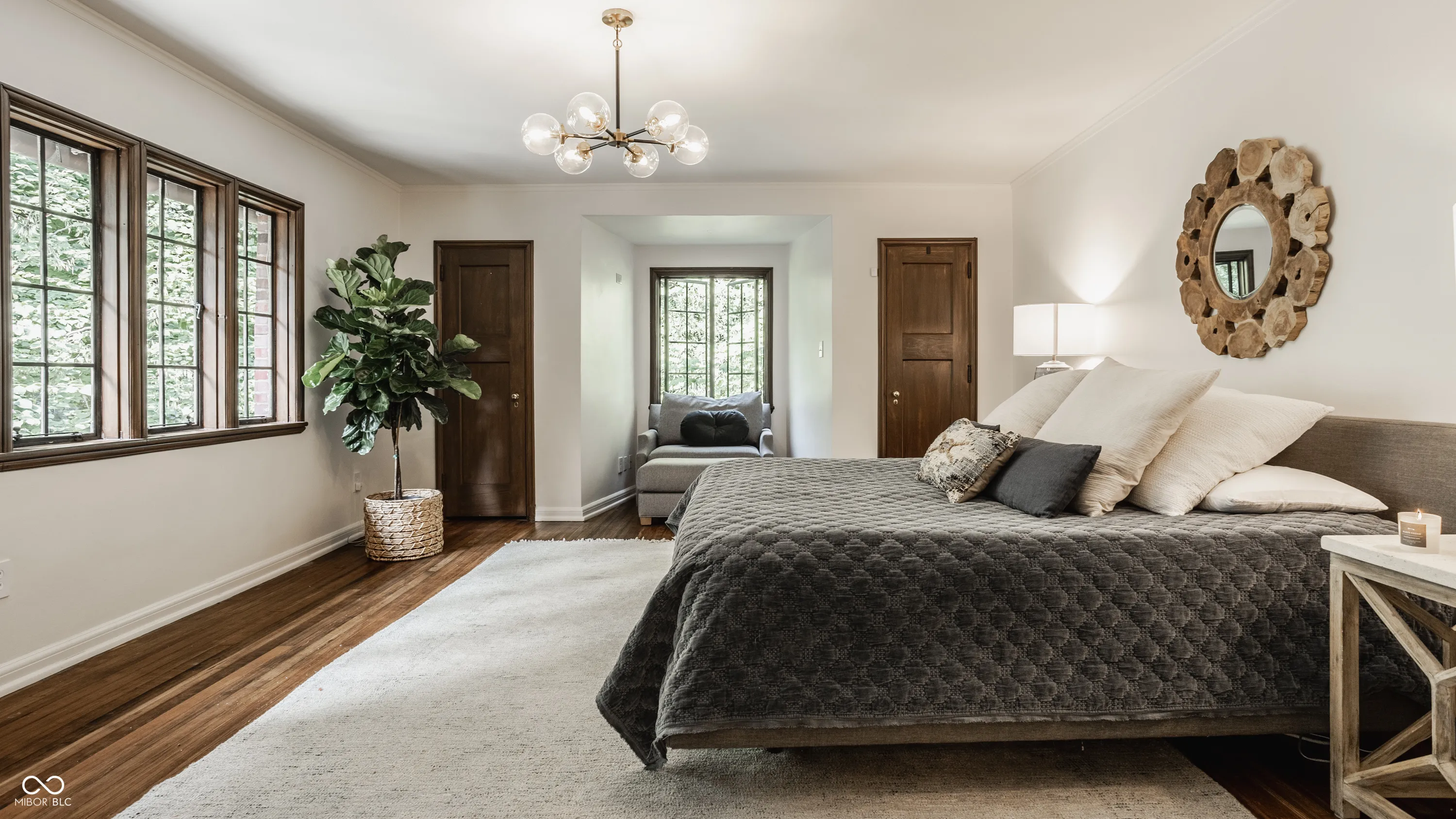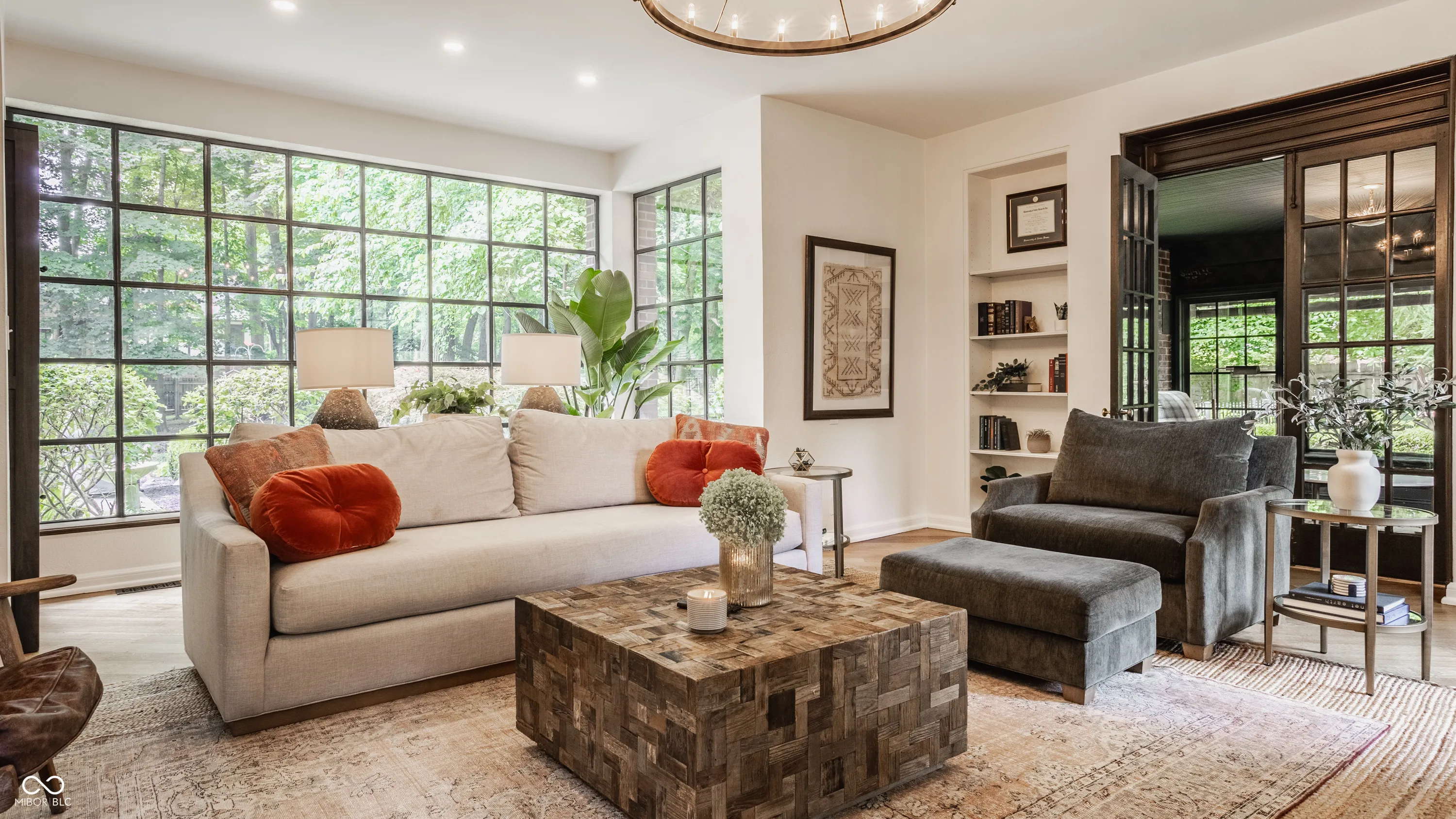 Nestled on large lot just off of the historic Meridian Street corridor, this exquisite tudor-style home effortlessly combines original craftsmanship with modern functionality, making this a truly special piece of Indianapolis real estate. Natural light is showcased throughout the home’s beautifully placed windows, including the picture perfect view in the living room of the park-like backyard (more on that later!). The circular floor plan on the main level accentuates the large living spaces – the gourmet kitchen easily flows to the formal dining room, which easily spills into the spacious living room and sun room. Upstairs, you will find all four bedrooms and three full bathrooms, including the primary suite with a newly renovated bathroom. The basement boasts beautifully finished spaces, including a custom sauna and steam shower. Outdoors, you will find gated entries and fully fenced yards, blue stone patios and walkways, all within .87 acres of lush landscaping to enjoy. Take note of the custom tree house tucked in the treetops…and don’t be shy to check it out on your visit! Formerly owned by famed Indianapolis architect Evans Woolen and adjacent to the Booth Tarkington House, there is no question that that 43 W 43rd stacks up as an architecturally significant residence in an ideal, sought-after location.
