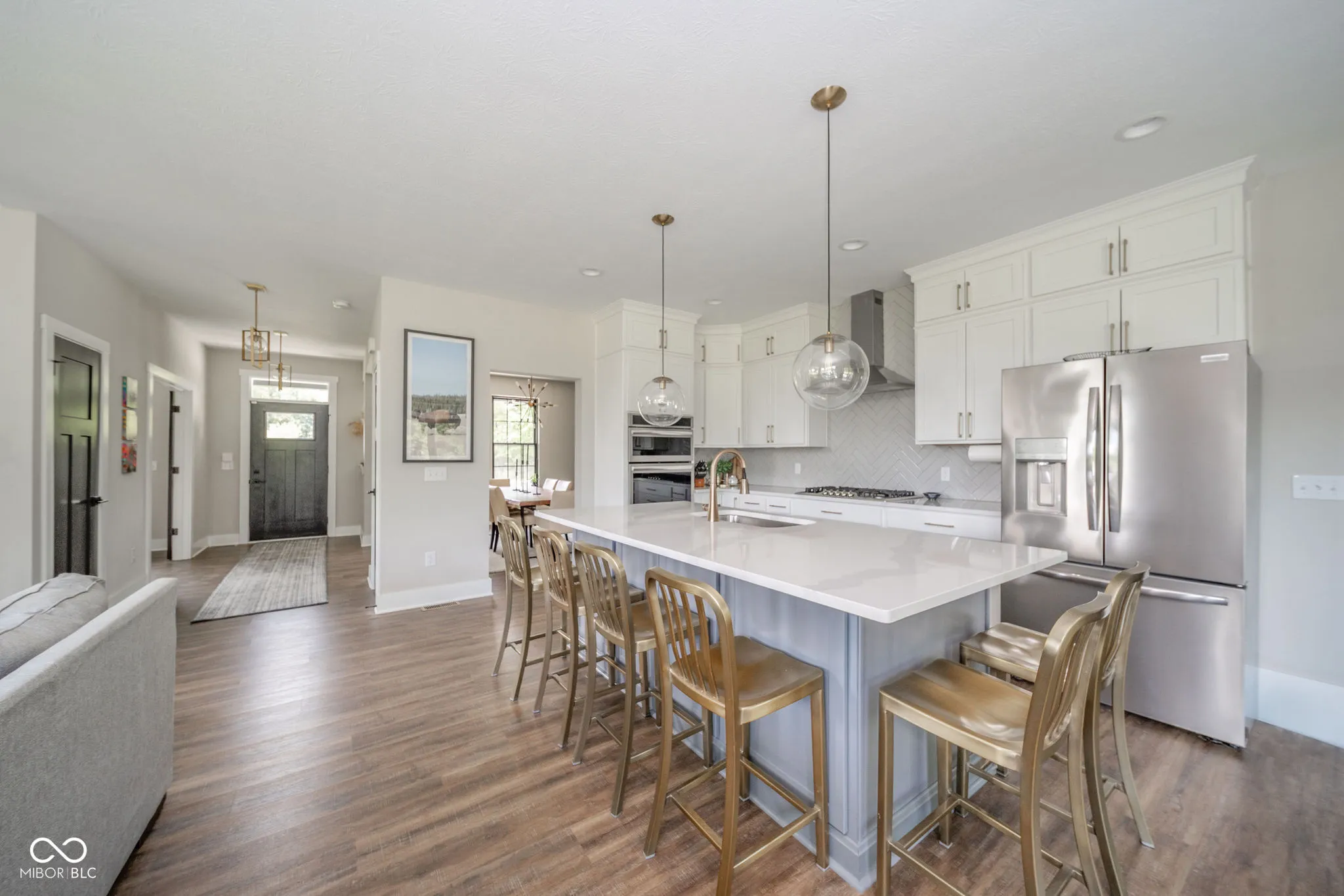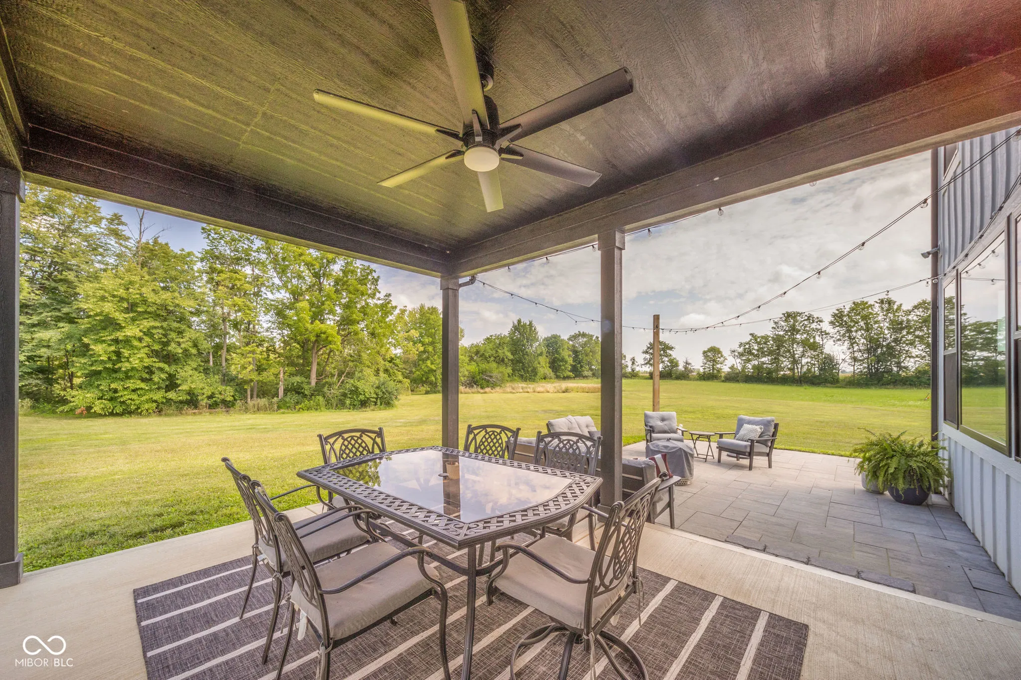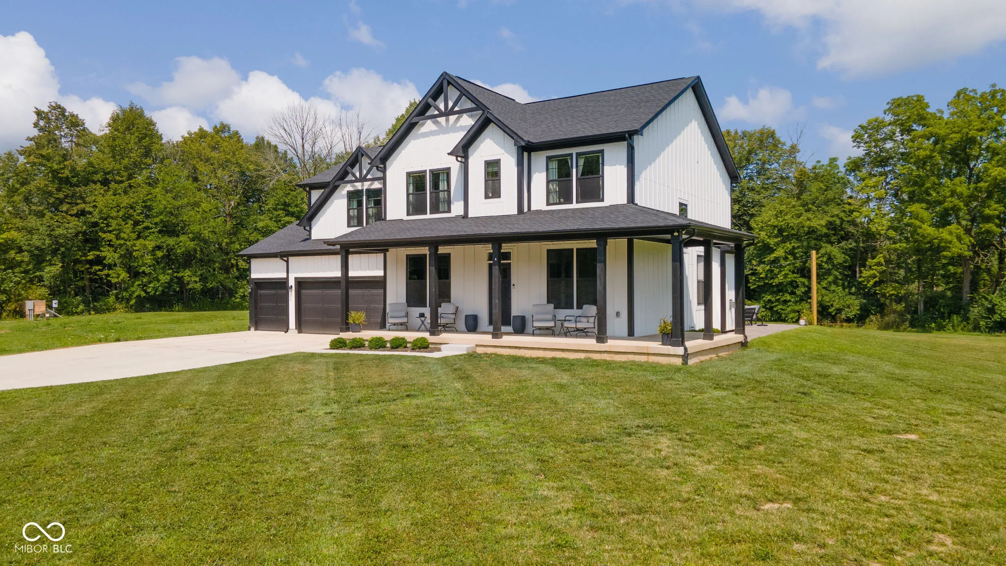 Built in 2022, this beautiful home boasts four bedrooms and three full bathrooms. The house sits on 5.03 private acres on the south end of New Castle with the possibility of an additional 5 acres. Top end finishes throughout the open main level. Gorgeous kitchen with quartz countertops, large island, custom cabinetry, and spacious pantry. Huge living room, formal dining area, den/office, and nicely sized laundry room make up the remainder of the main level. Upstairs you will find an amazing main bedroom with luxury en suite. There are three other bedrooms as well as a 17 x 14 landing for additional living area. Three car attached garage. Enjoy the outdoors under the covered front porch or partially covered and open patio in the back. 48 x 40 Pole Building with concrete flooring and 200 AMP service.