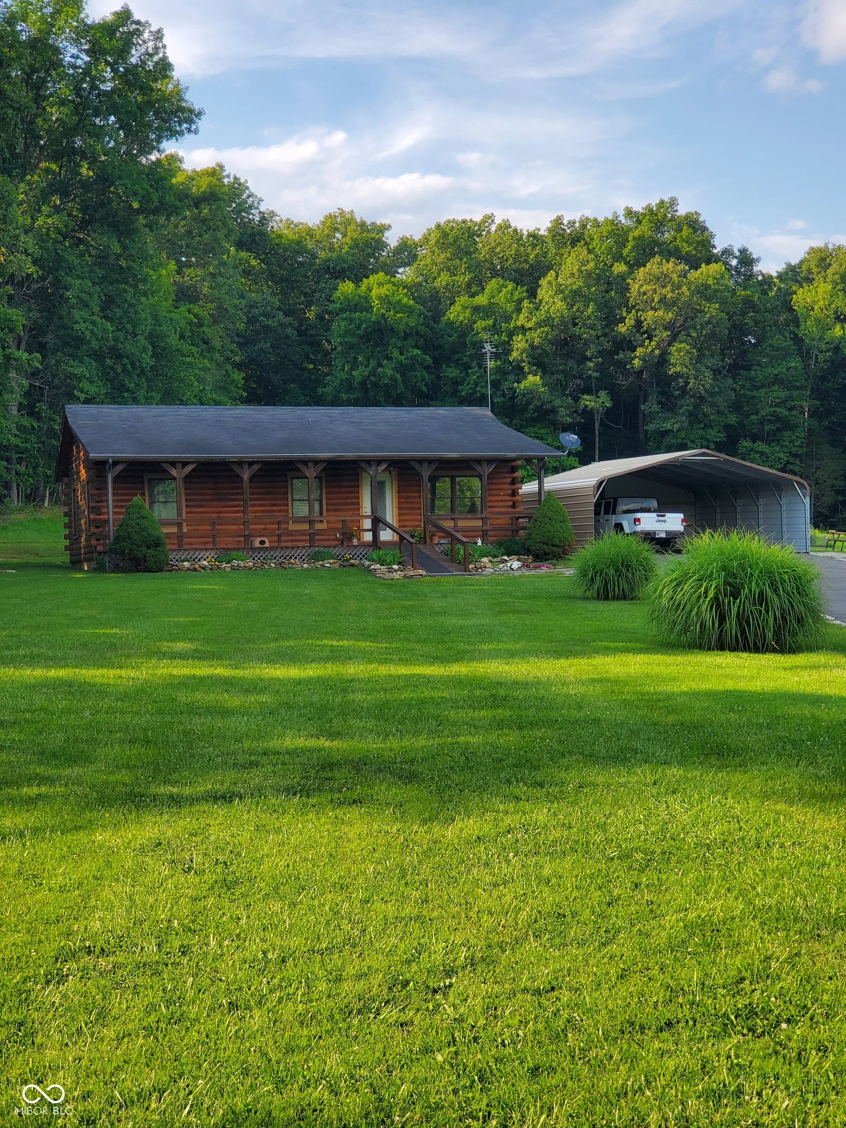 Retreat or Home Sweet Home this Log cabin built in 2007 in rural area of Jackson County is a rare find. This two bed, one bath home with open concept in the living and kitchen area also includes an enclosed carport, black-top driveway, 50 X 24 pole barn with electric, additional 16 X 12 storage shed with double loft and all of this on newly surveyed 3.51 acres of ground. A 48′ covered front porch is sure to accommodate a large gathering of folks. Updates include propane forced air furnace with central air-conditioning, propane gas logs, newer appliances including electric range, dishwasher, microwave, refrigerator, washer and dryer and 3 new windows. Property is broker owned. This property has a lot to offer with open space for all kinds of activity. This is the log cabin many have been seeking to find. REMC internet is being installed.