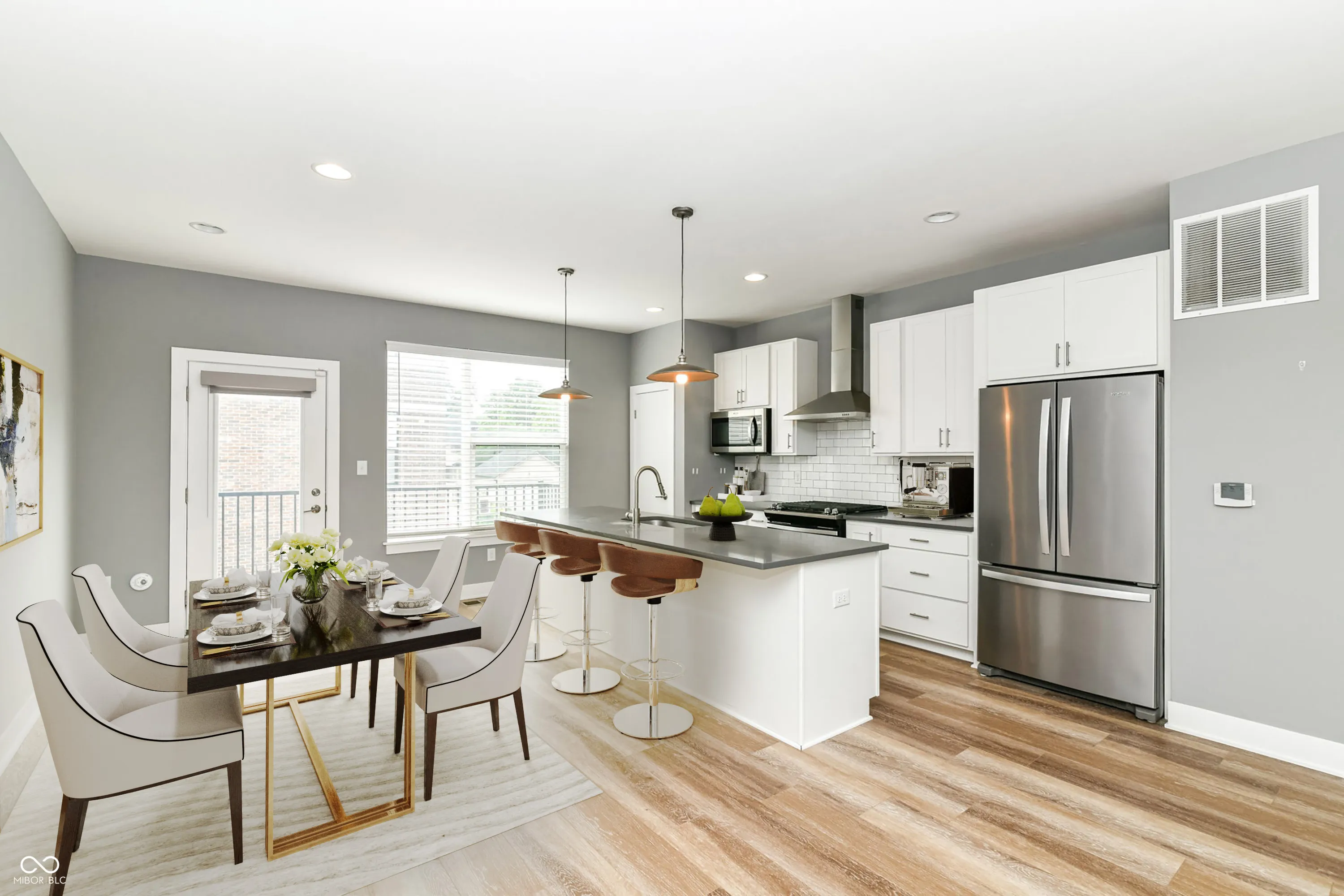 Light, bright, open floor plan is so very inviting! Beautiful townhouse in Herron Morton. The layout is great for entertaining guests. The kitchen has a large center island with seating, solid surface countertops, stainless steel appliance. Enjoy a beverage of your choice sitting & relaxing on your balcony. 3 bedrooms and 2.5 bath. The laundry room is conveniently located upstairs. The two car garage has additional space to the side for plenty of storage, plus a separate gas heater in the garage that was added. If you are looking for a place with walkability, then you will love the places you can head out to when you live here…Tinker Street, Foundry Provisions, Gallery on 16th, The Grub House, Kroger grocery, Herron-Morton Place Park & so much more.
