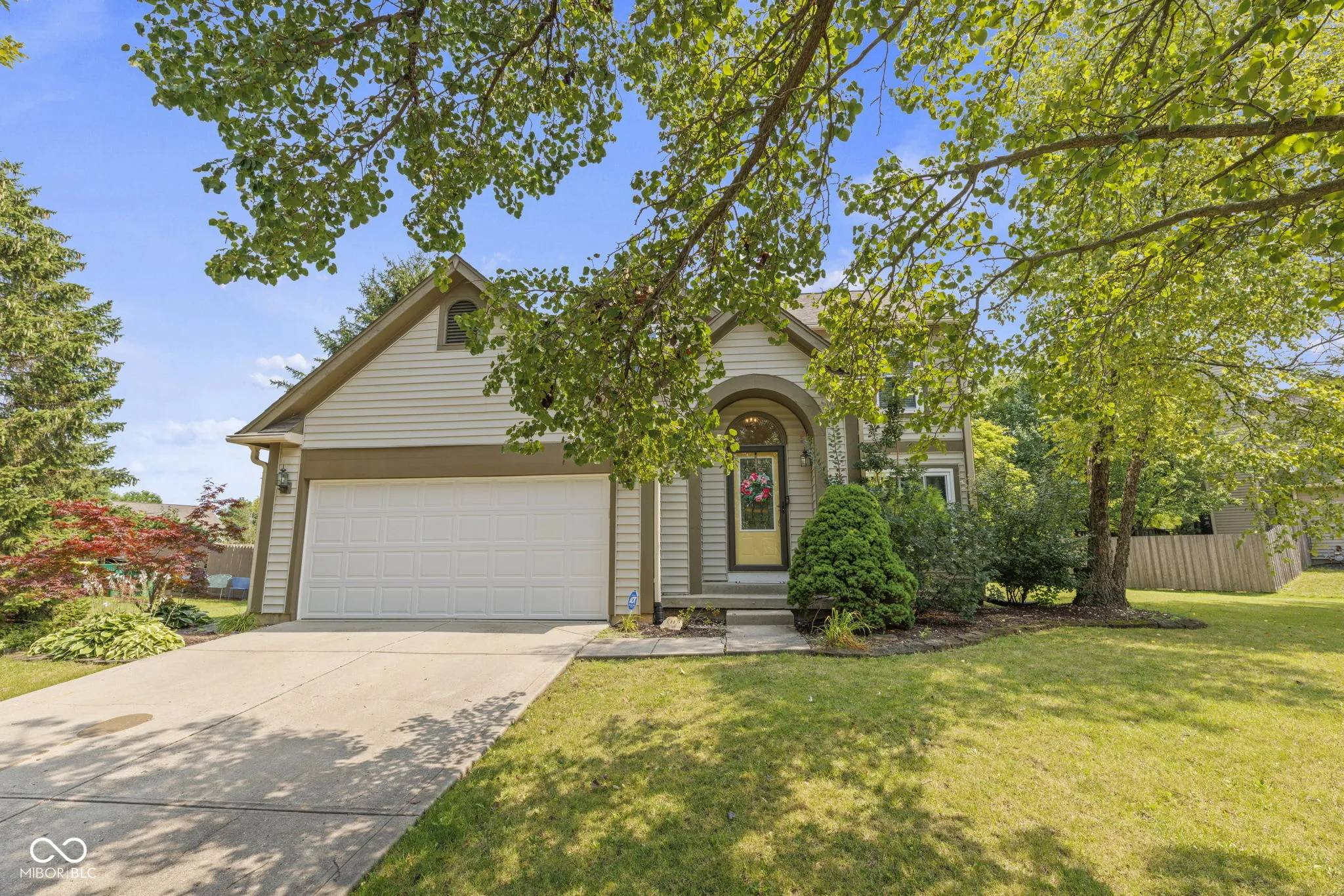 Welcome to this charming 4-bedroom, 2.5-bath home in Bridlewood (Carmel). Situated on a private cul-de-sac lot, enjoy a spacious deck, shed, and mature trees in the backyard. The updated kitchen features stainless steel appliances and white cabinets, while the two living areas are perfect for entertaining. The main bedroom offers a cathedral ceiling, en-suite bath with double sinks, and a walk-in closet. Recent updates include fresh paint, newer carpet (2022), HVAC system (2019), newer windows, new kitchen refrigerator & stove , and new gutters (2023). This home is both stylish and functional. It is located near shopping, parks, and schools, it’s a great find!