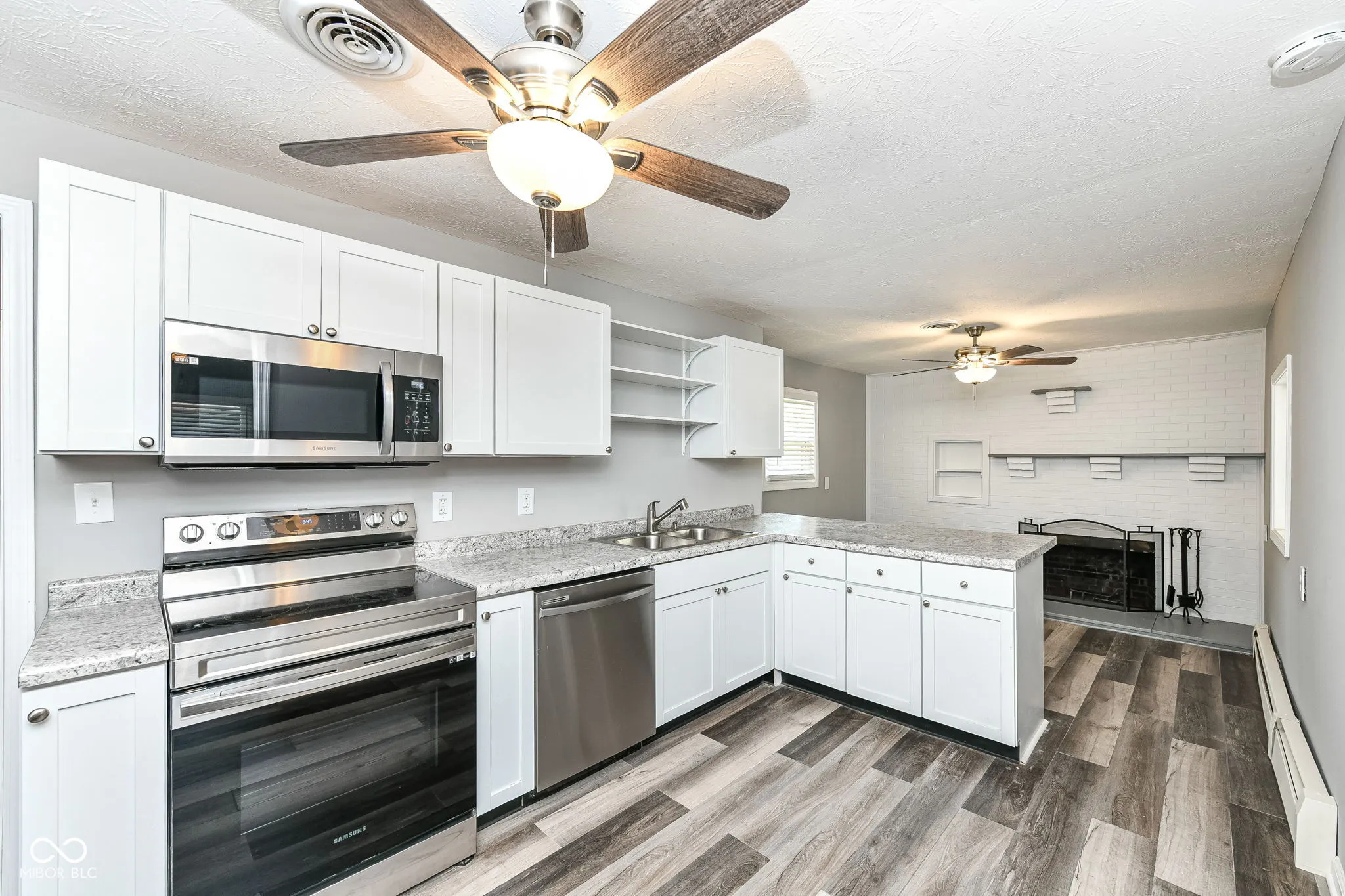 Newly Updated & Modernized English Tudor style home that features 3 bedrooms/2 full baths, large finished walk out basement + 1 car attached garage & 1 car detached garage all located on large corner lot. Main level includes refinished hardwood and vinyl planking flooring throughout, freshly painted, new blinds on all of the widows, spacious living room with stone gas fireplace, eat in kitchen with all new white cabinets, countertop with breakfast bar, SS appliances stay, hearth room with 2nd fireplace and built in bookshelves, separate formal dining room, 2 bedrooms, 1 full remodeled bath PLUS year round sun room for relaxing or entertaining. Full finished walkout basement includes HUGE 3rd bedroom, full bath w/shower, laundry room/workshop/storage, plus bonus area for office or game table. Ideal Location. Only 1 block to Beech Grove library & 3 blocks walking distance to nostalgic Main Street restaurants. This home has all of the bells and whistles and will exceed all of your expectations. Home will not last long! Schedule your showing today!