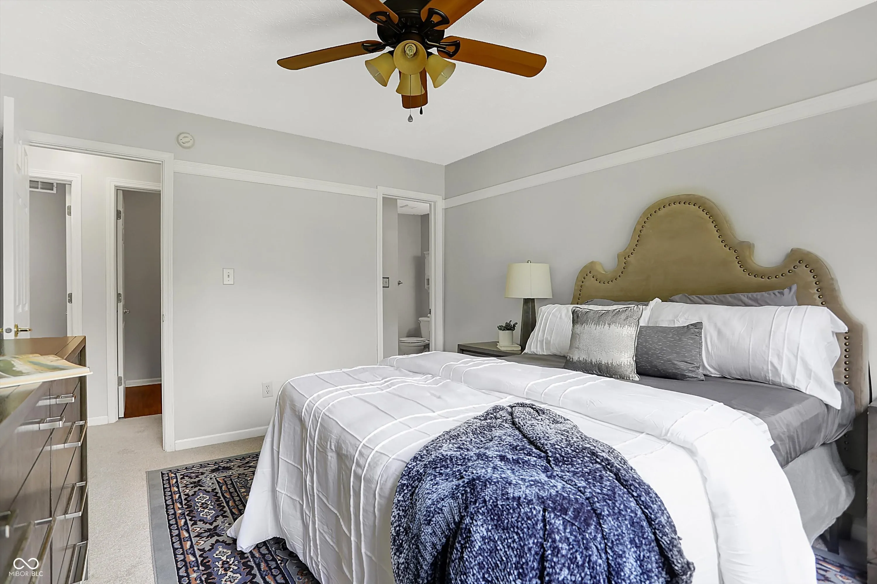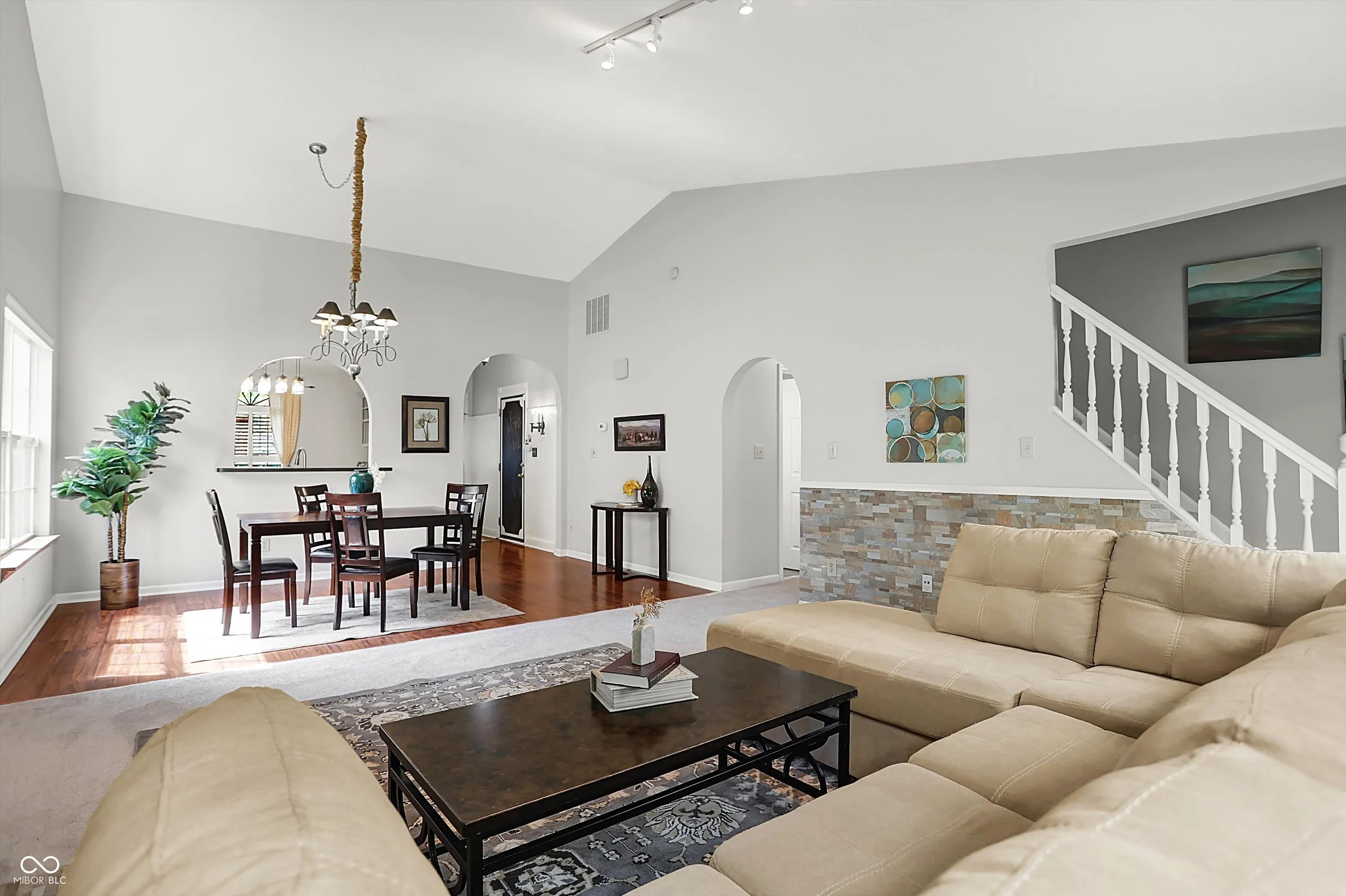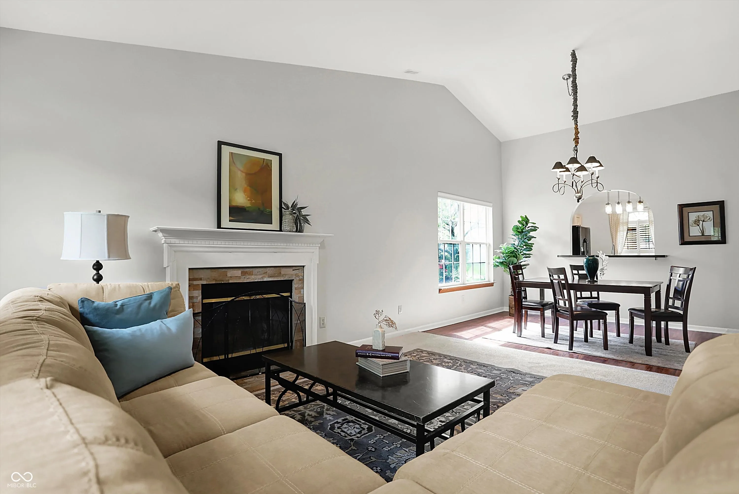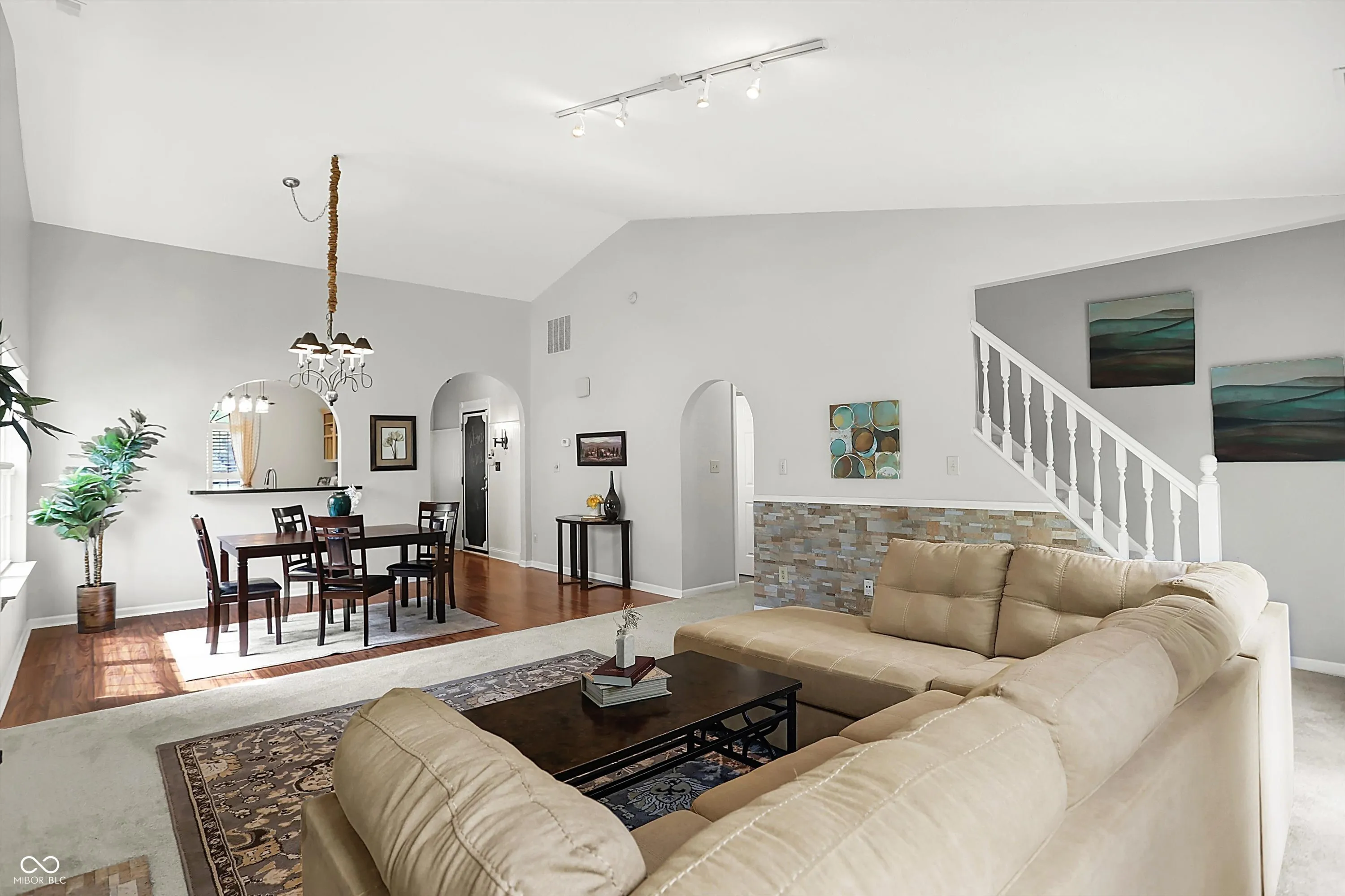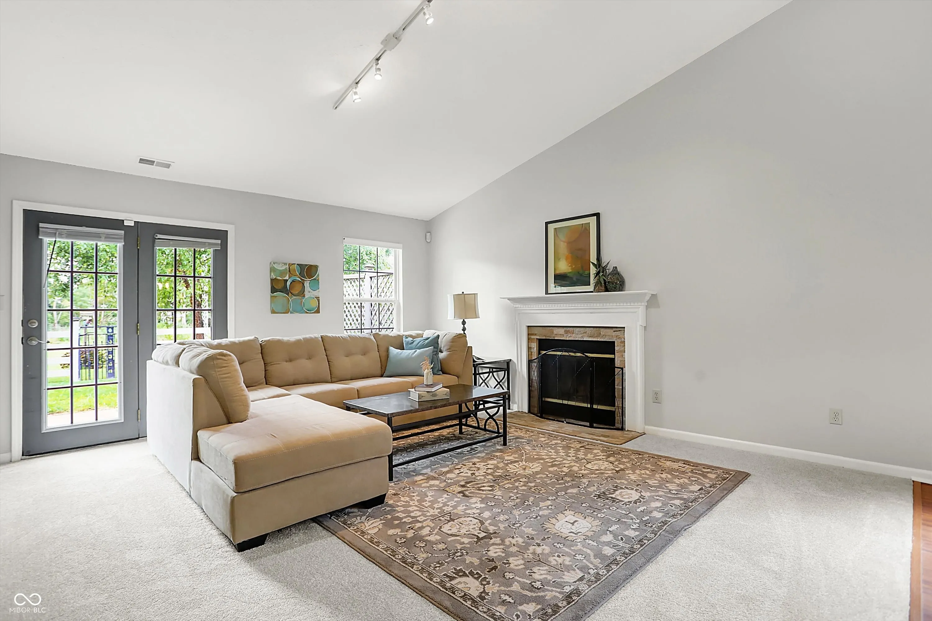 Charming Zionsville 3 bedroom/2.5 Ba w/ primary on Main level. The open floor plan boasts large Great room w/ Cathedral ceiling and stone fireplace. Atrium doors lead to a cozy fenced backyard which overlooks peaceful green space. Upper level bedrooms and hall bath provide privacy and a split floor plan. Eat-in kitchen has a pass thru to a separate dining area. Recently painted and new carpet on Main level and stairs. On a quiet street in popular Royal Run which offers many neighborhood amenities and is adjacent to Anson for shopping, dining and numerous conveniences.