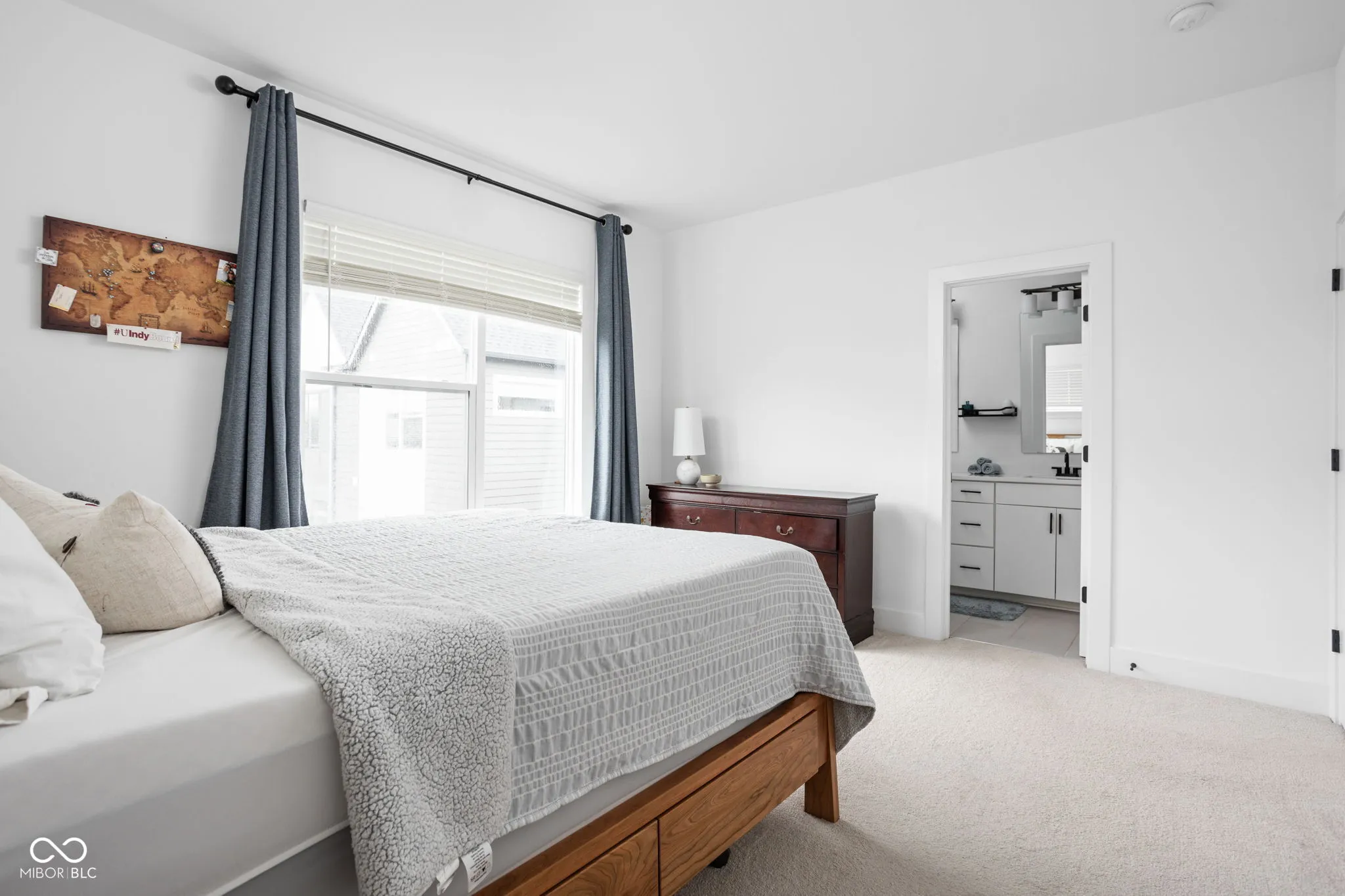 Sleek and sophisticated urban living at its finest in this low maintenance 3 bedroom 2 and a half bath townhouse located in the heartbeat of downtown Indy — Mass Avenue, The Bottleworks, Circle City Industrial Complex and the Monon Trail! Built in 2021 this corner unit will impress you immediately with windows on three of the four walls. The first level offers a bedroom or office/flex room. The open concept second level has a kitchen with quartz countertops, stainless steel appliances and a center island with seating as well as a large family room, a half bath, and a balcony. The third level has the primary bedroom and bathroom with dual vanity sinks a large shower and dual walk-in closets. This level also has a guest bedroom and an additional full bathroom as well as a laundry area. The large two car garage on the first level is another very special amenity. All in all, this townhouse is a magical combination of location and style.