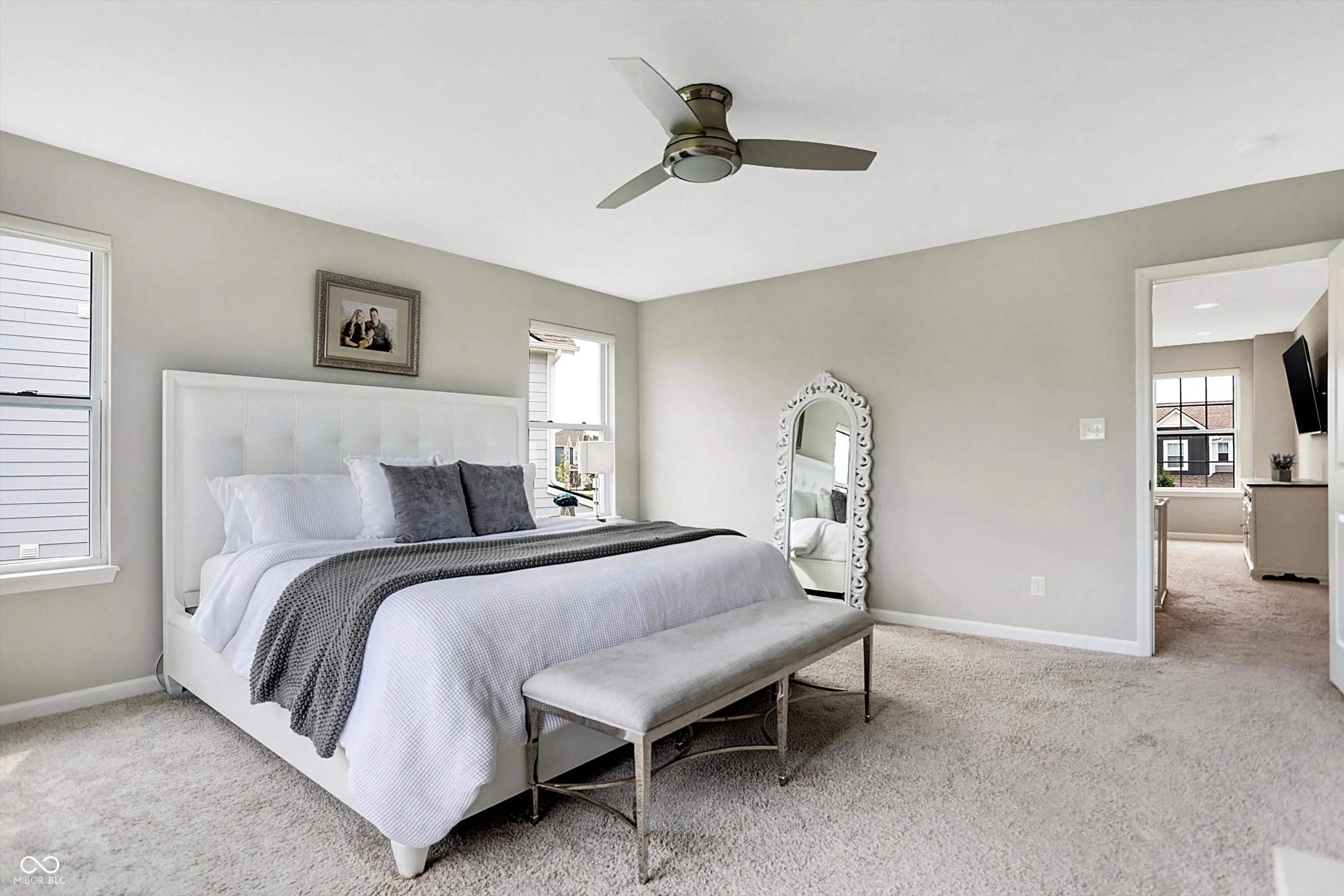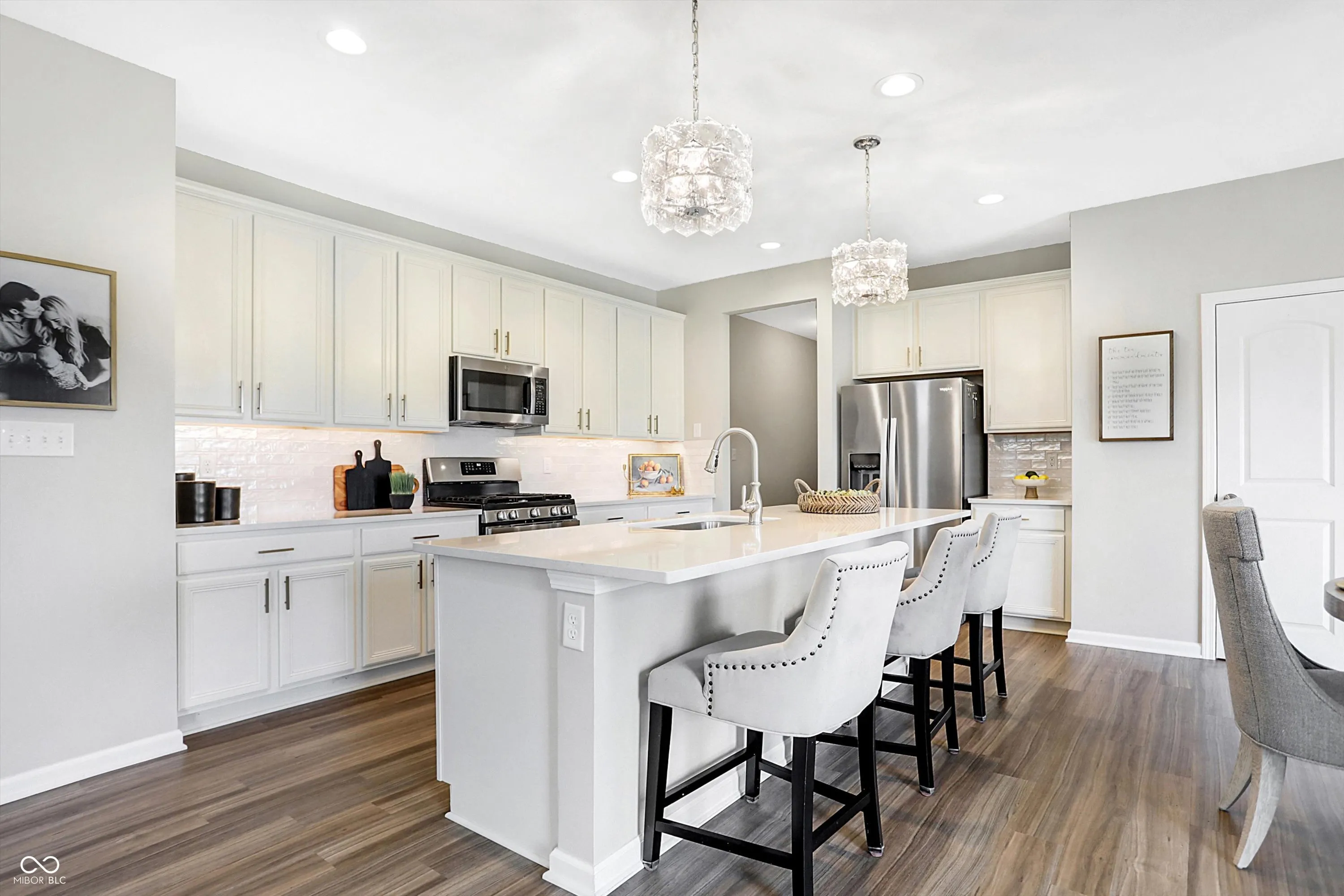 Don’t let your eyes fool you – this is NOT a model home, but it might as well be! Welcome to your like-new dream home without the hassles of building! This pristine 4-bedroom, 2.5-bath home in desirable Scofield Farms, with nearly 3,000 sq ft and a 3-car garage, shows like a model AND offers the ultimate move-in ready experience. Custom blinds? Check! Fully fenced backyard? Check! Lush, established grass? Check! And all the additional bells and whistles of interior upgrades! Nestled on one of the best lots in the neighborhood, enjoy the privacy of NO REAR NEIGHBORS and a peaceful view on your near-quarter acre lot. The covered veranda and concrete slab extension give plenty of options for premium outdoor living! This showstopper features a chef’s paradise of a kitchen, adorned with luxurious 3cm quartz countertops, an oversized island with barstool seating, upgraded cabinetry with soft-close doors and dovetail drawers, and a 5-burner gas cooktop! The open concept seamlessly connects the kitchen to the breakfast room and family room, highlighted by a gas fireplace. The main level is elegantly designed with LVP flooring, a separate office with French doors, and an extra den/library perfect for a second office or playroom. Custom built-ins enhance the mudroom, as well as a built-in glass cabinet adjacent to the sliding glass door. Upstairs, retreat to your primary suite, bathed in natural light, complete with an upgraded walk-in shower tiled to the ceiling, double vanity with quartz countertops, and a spacious closet. The convenient layout features an upstairs laundry adjacent to the bathroom for easy access. The generous loft is ideal for family movie nights and the three other bedrooms are nice and spacious with large closets, providing plenty of storage. This home is the perfect blend of luxury, convenience, newness, and ready for you to move in and start creating memories. Don’t miss this opportunity to own a stunner in sought-after Westfield!