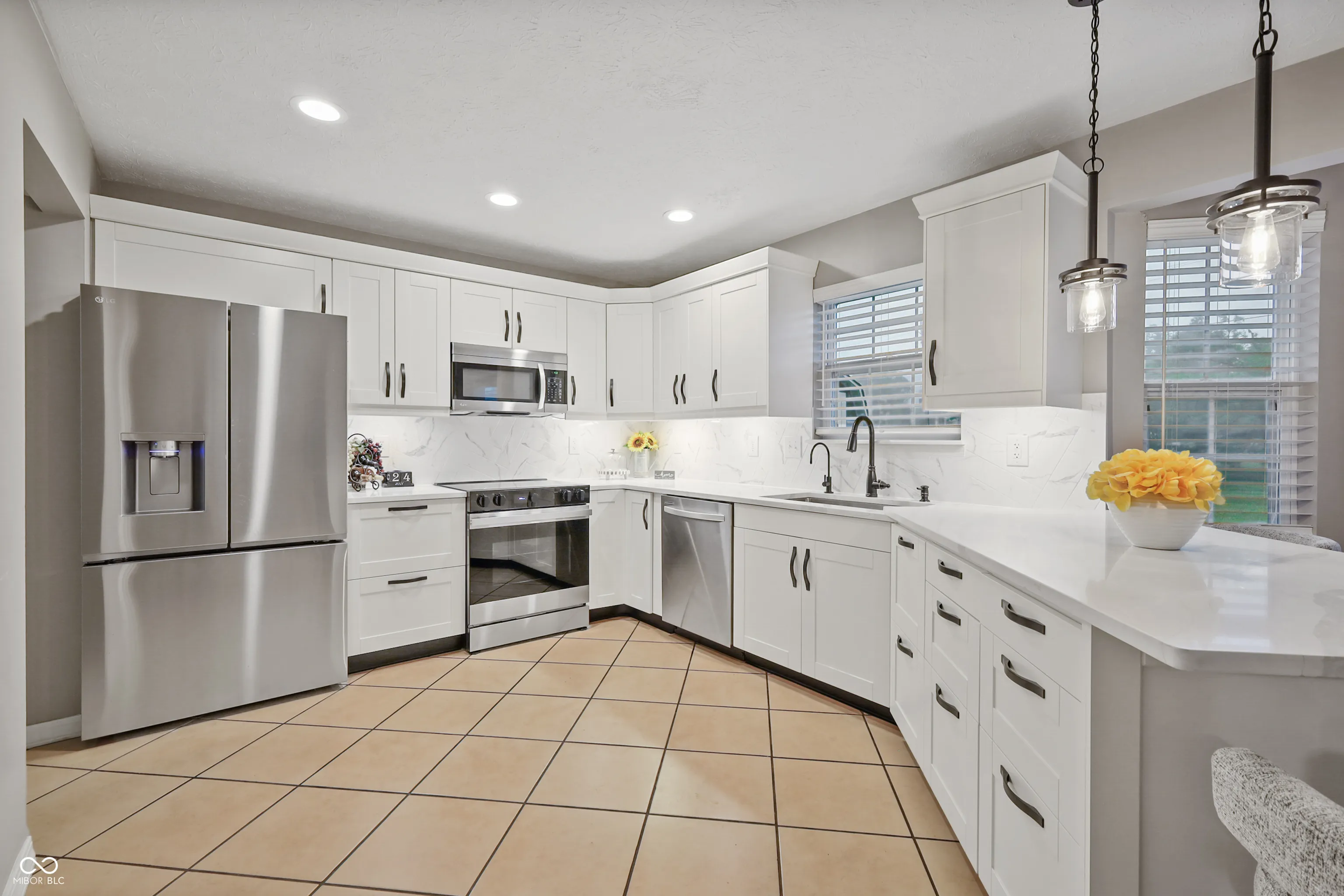 This remodeled 3 BR 2 1/2 BA 2 car finished garage is one to see. The kitchen has been completely renovated with custom cabinets, and quartz countertops with an island. Stainless Steel appliances. The stove is also an air fryer. The family room is spacious with a gas fireplace. It also has a large dining room with Trace ceilings. The 2 & 3rd bedrooms upstairs are carpeted with plenty of space. The primary has carpet as well. The bathroom has been beautifully updated with tile flooring. And a beautiful quartz double sink. You will fall in love with the dual-headed tiled shower. It is completely enclosed to keep the steam in. The 2nd full bath has also been remodeled. It has tiled flooring & the tub is also completely enclosed. The 2 car garage is finished. Patio out back for family gatherings.