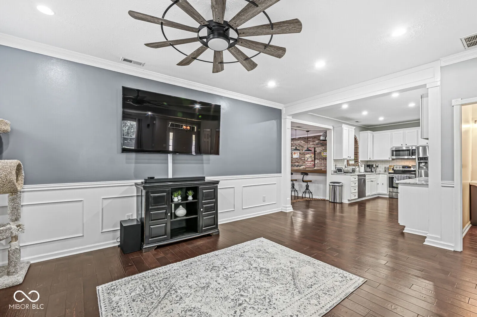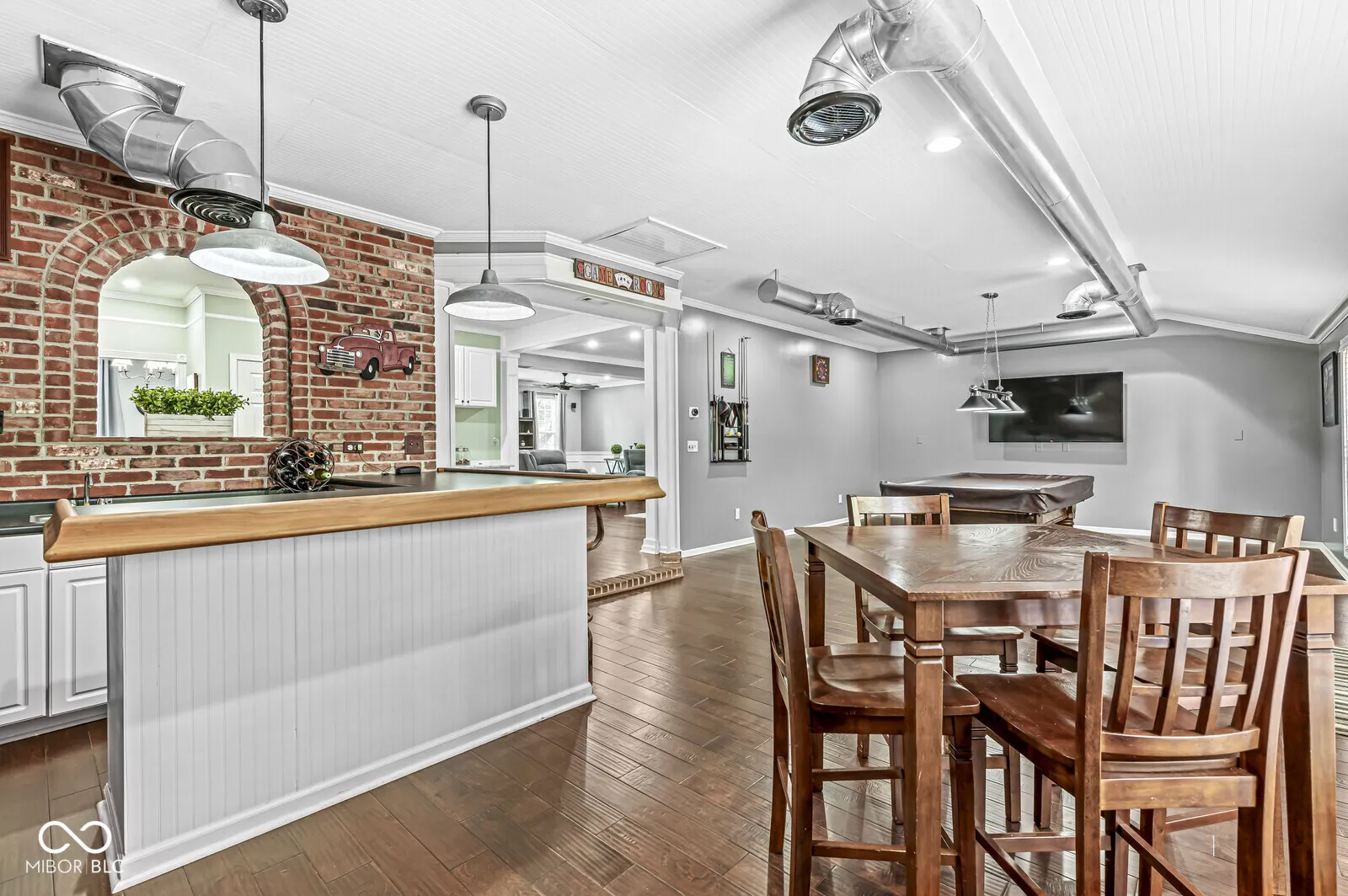 Welcome to this beautiful two story 4 bedroom, 2 full bathroom, and 1 half bathroom located in wonderful Ashton! Large living room with hardwood flooring open to the breakfast room with a fireplace! Formal dining room with an electric fireplace and hardwood flooring! The kitchen is absolutely beautiful with granite counter tops, large pantry, with all stainless steel appliances included! The bonus/recreation room is absolutely awesome with a modern brick wall, exposed duct work, a wet bar with a wine cooler included! The primary bedroom is huge, primary bathroom boasts a double vanity with a custom stand up shower, and a huge walk in closet! The other bedrooms are sizable with ample storage space as well. The laundry room is located upstairs with the washer and dryer included! Out back is an oversized deck overlooking mature trees with a fully fenced in backyard! 3 car garage with service door! Oversized driveway! Basketball goal included! Avon Community School system! Don’t miss this wonderful opportunity to call this your new home! Be sure to check out the 3D interactive virtual tour!