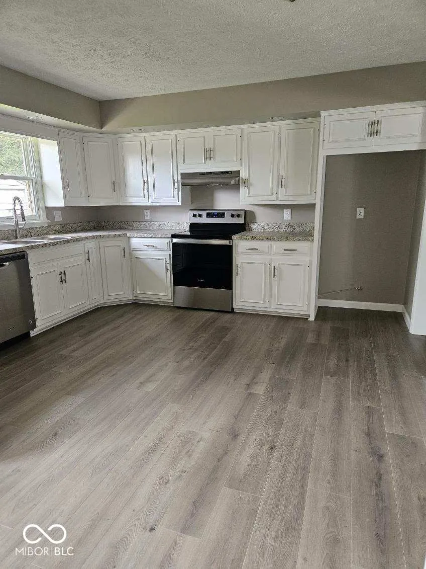 Beautifully updated 3 bedroom, 2 bath brick ranch! This home checks all the boxes. Open floor plan in the main living areas. Brand new amenities include: Fresh paint, laminate hardwood flooring in main living areas, Stainmaster carpet in bedrooms, stainless steel kitchen appliances, primary bedroom shower, double vanity, barn door, sinks, toilets, lighting, ceiling fans, faucets, handles & more! Roof and mechanicals are newer. Two closets (one walk-in) in primary bdrm. Nearly 1/2 acre lot with fenced back yard. Oversized 2 car garage (500+ sf) with extra concrete driveway parking.
