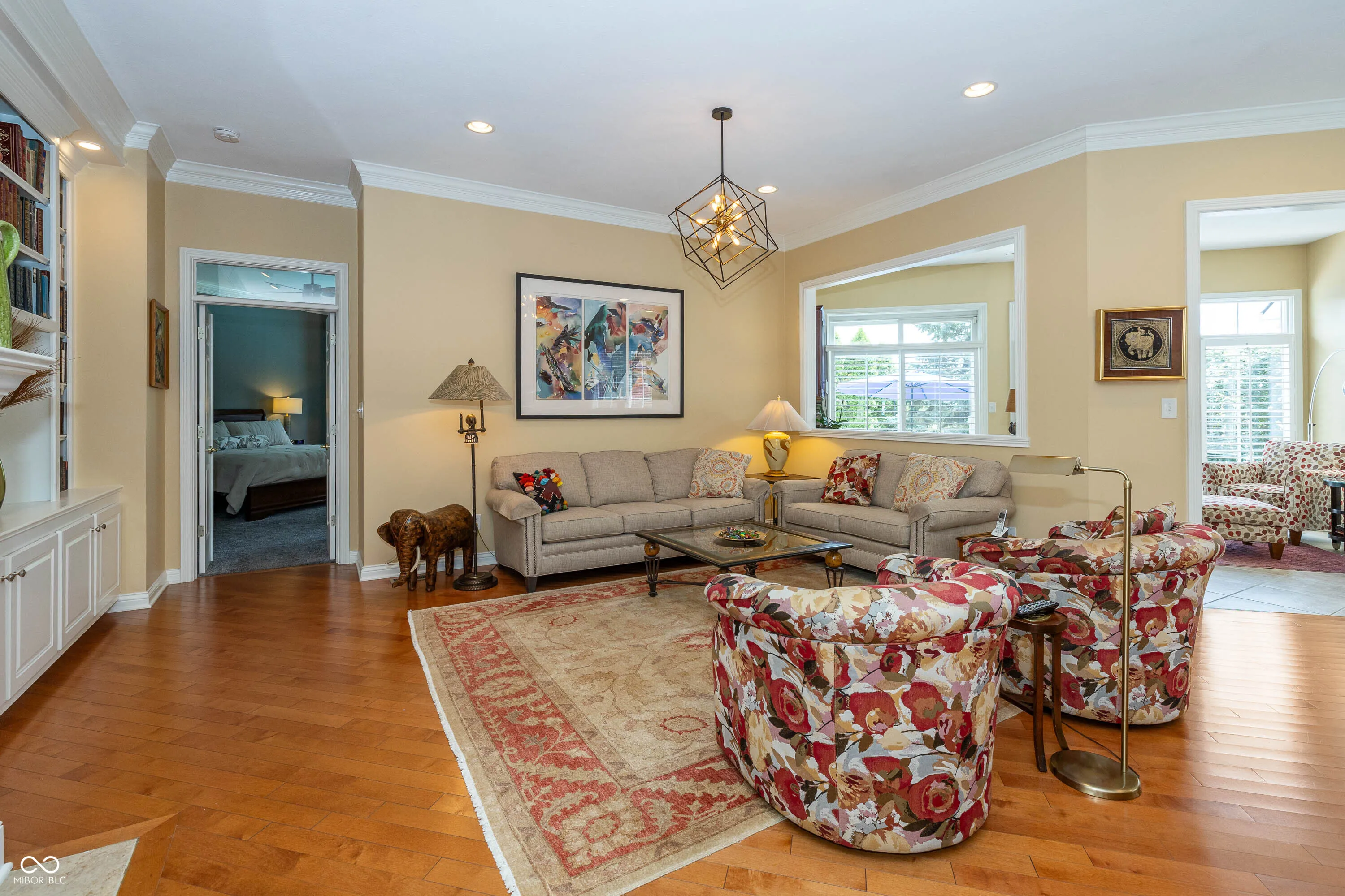 Stunning 3 BR,3 full BA + Office Home offers beauty, tranquility, and privacy, low maintenance living w/ lawn care & snow removal by HOA, on cul-de-sac. Immaculate, updates/upgrades & extras, intentional & carefully created interior living spaces, open concept flr plan, high clgs, upgraded custom lighting, GR w/gas Fireplace & Blt-Ins, gourmet KT w/quartz cntrs & islnd w/bar seating, DR, Office w/Blt-Ins. Primary BR on main w/ luxurious Walk-In Shower, garden Tub, dbl vanities, Walk-In Closet, 2nd BR, Full BA & Laundry on main. Upstairs w/ 3rd BR, Full BA, FR/Bonus Rm, WI unfin Attic w/flrg area for xtra storage. Sunroom with custom wet bar overlooks private yet inviting outdoor spaces + pool to relax, refresh & enjoy.