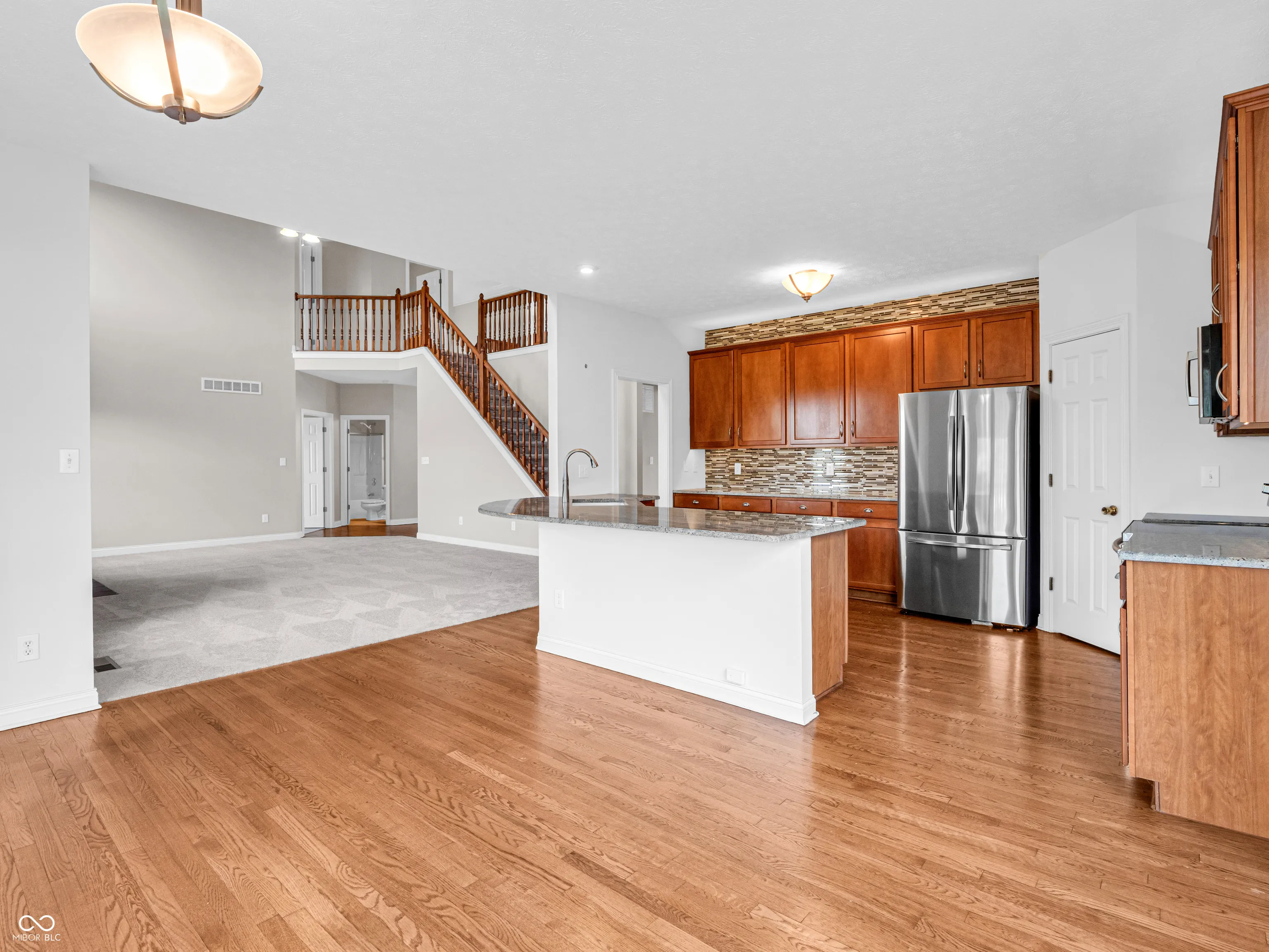 Exceptional 5 bed, 4 full bath home in sought after Hayden Run community in west Carmel! Open high ceiling foyer leads you to spacious dining & living rm, grand two story family rm w/ cozy fp overlooks open kitchen w/ granite countertop, SS appliances, 42″ upgraded cabinets, WI pantry, hardwood flooring, main level bedroom w/ full bath; Dual sided stairs to upstairs, large master suite has tray ceiling, huge bathroom w/ double sink, garden tub, separate shower & 2 large WIC, 3 additional good sized beds, hall bath w/ double sink; Finished basement has huge play area meets all your entertainment needs, a wet bar & full bath! Side load 3 car garage; Private, quiet backyard has beautiful view of trees, grass & pond, great lot! Well maintained home w/ brand new carpet(m/u), Washer & dryer 2018, Oven/range/microwave 2022, Refrigerator 2022, Basement refrigerator 2023, Water softener 2020, Sump pump 2021. Home close to parks, shops, highway & everything, great Carmel Clay Schools, excellent opportunity, must see!