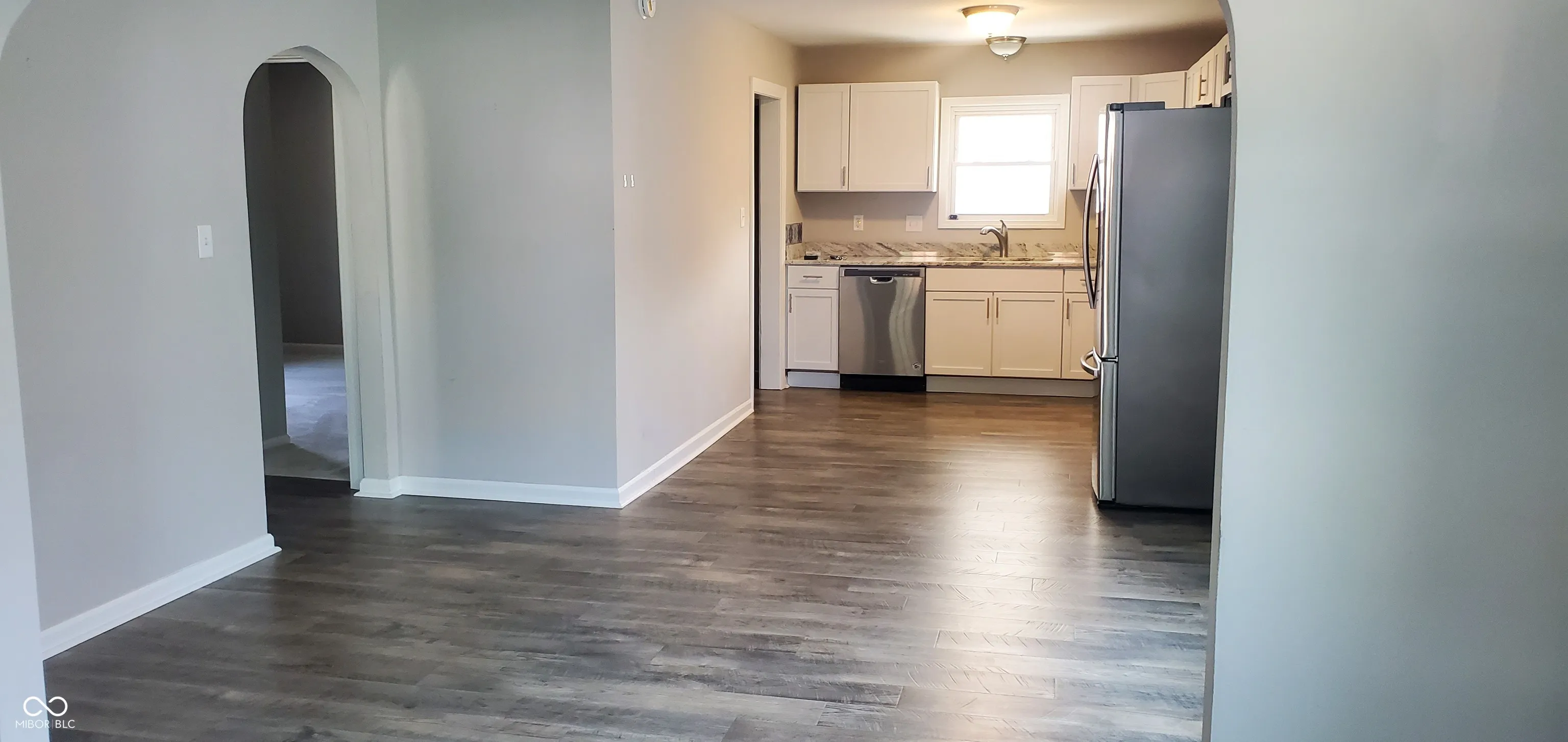 Cute as a button! 2 bedroom 1 bath ranch in Beech Grove with full basement and 2 car garage! Walk in and you will instantly know this is the ONE! Enjoy cooking meals in the updated kitchen with shaker style cabinets, stainless steel appliances, quartz counter tops and high quality laminated floors. Notice the neutral paint colors and the high quality laminate floors in the roomy family room and formal dining room areas to spend time with family/friends. Primary bedroom has so many windows to let in the natural light and plenty of space for your clothes in the walk-in closet. 2nd bedroom has stairway access to the upstairs unfinished attic that has a ton of potential. The basement has a 30X11 large, finished, recreation/bonus room. Room for movies, games, pool table, toys, crafts, and/or 2nd living area! Use your imagination. Fall in love with the exceptionally large covered back porch. Enjoy sipping coffee or enjoying your favorite drink on a nice morning or evening. Other updates include poured concrete driveway, vinyl windows, kitchen, bath, and more. By the way, all the appliances stay including the washer and dryer. Close to shopping, restaurants, schools, parks, interstates and a short distance to the quaint downtown Beech Grove area and not much further to all the amenities that downtown Indianapolis has to offer. Say “Yes!”