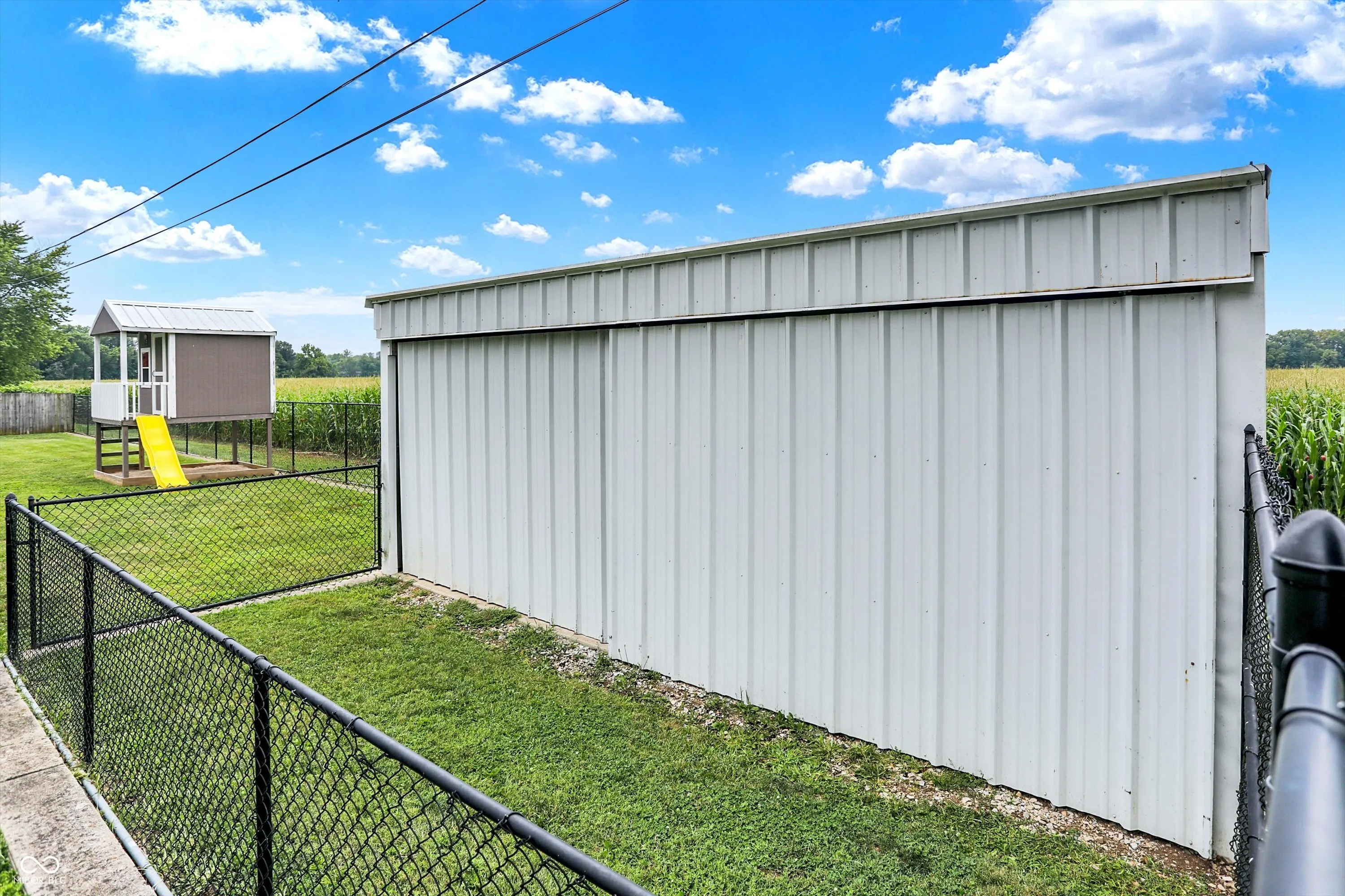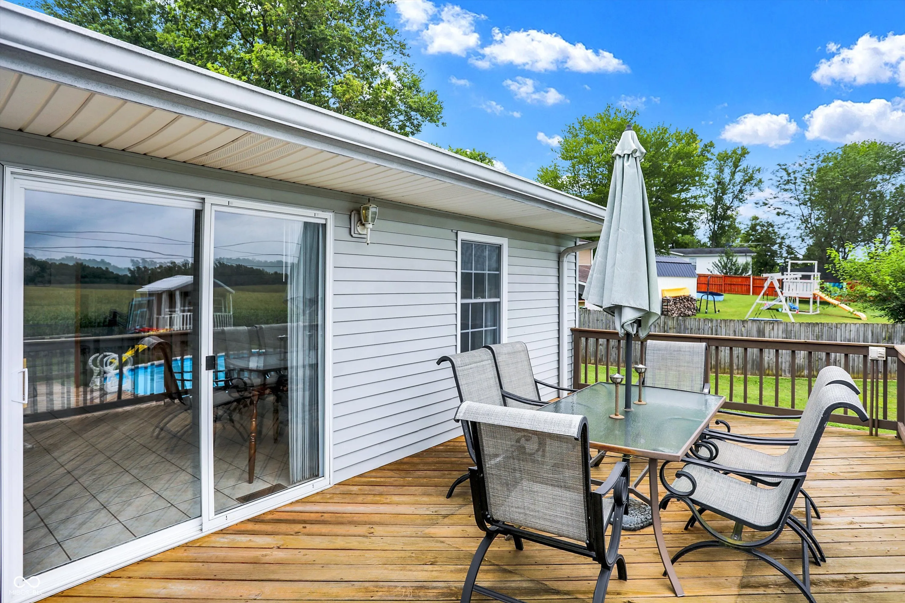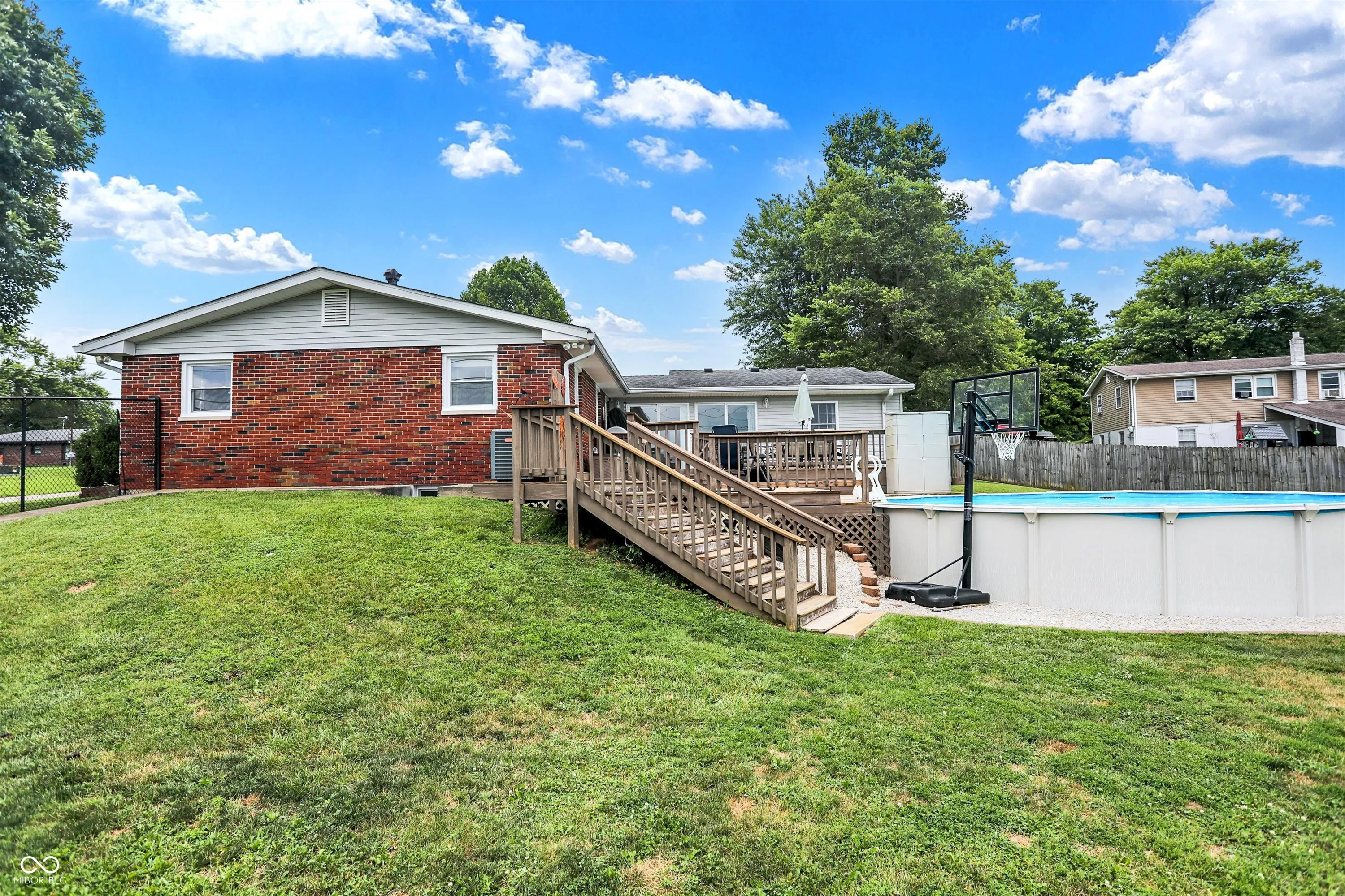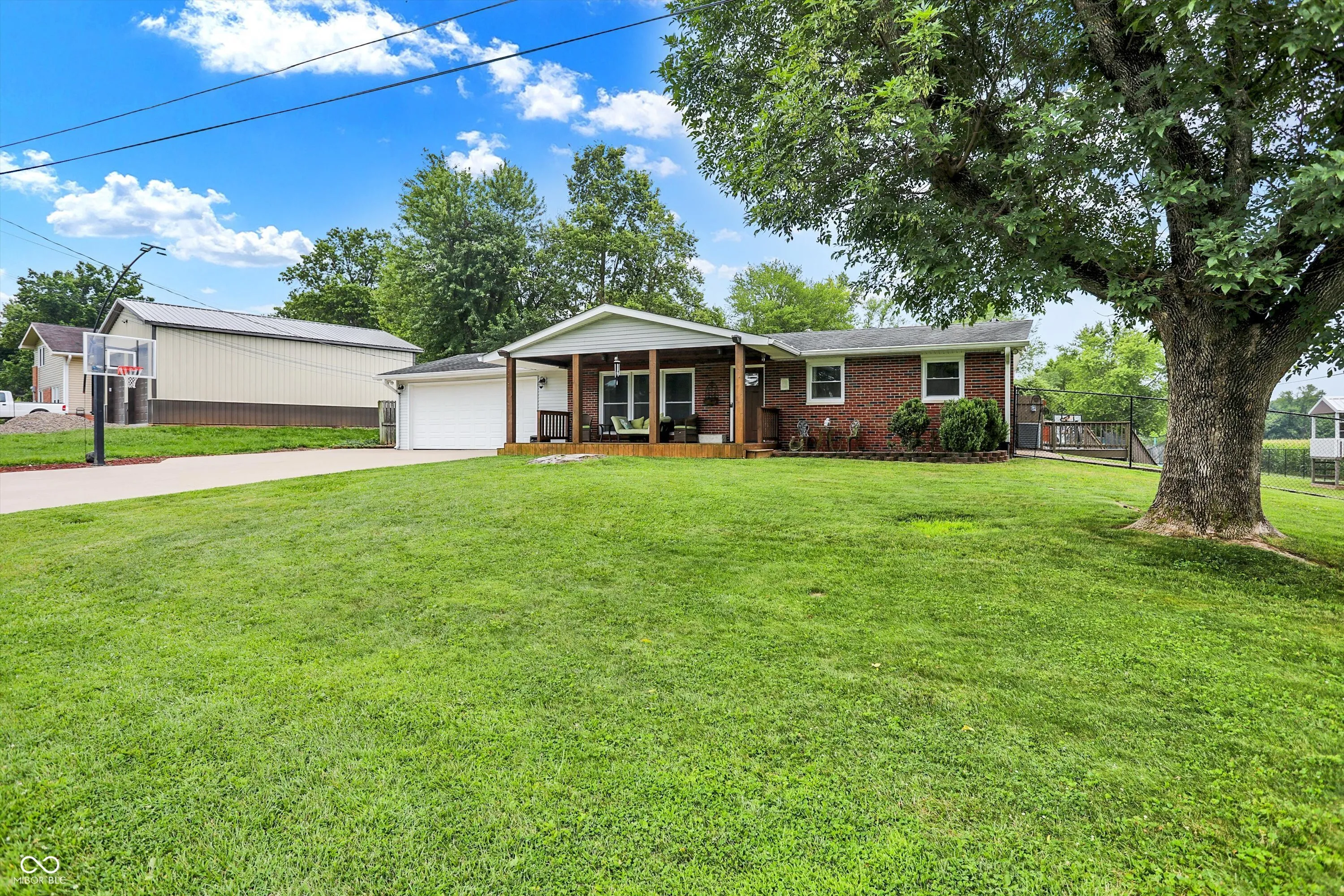 Beautifully updated 4-bedroom, 2.5-bath home featuring a modern kitchen with stainless steel appliances and a spacious dining room. Enjoy the convenience of a large attached 2-car garage, as well as an 18×20 detached garage with electricity, a concrete floor and paved driveway. The property also boasts a charming wooden porch with a ceiling fan, a fully fenced backyard, an above-ground pool, a sizable 12×24 metal storage barn with a concrete floor, and a treehouse. The basement offers a large great room and a convenient half bath. Basketball goal does not remain.