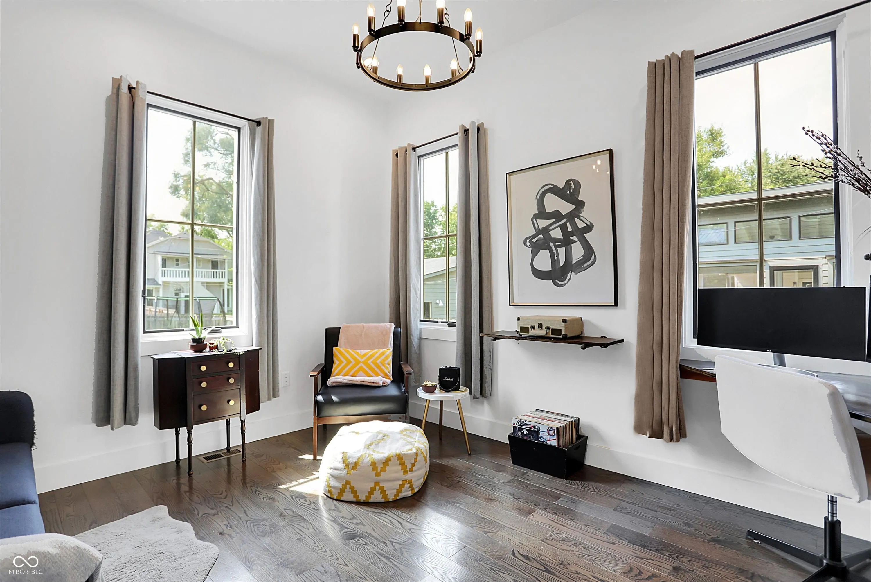 Luxury living awaits in Springdale on the NEAR Eastside! With over 3,000 square feet, this modern masterpiece offers a remarkable living experience. The large wrap-around porch welcomes you into a home designed with both comfort and style in mind. The open concept kitchen, living, and dining room create a seamless flow for entertaining and spending quality time. The impressive luxury kitchen features top-of-the-line Bertazzoni appliances, a large kitchen island, and exquisite cabinetry. Imported backsplash, stone countertops and statement lighting add a touch of elegance. Solid oak floors exude warmth and sophistication. The gas fireplace with its feature wall provides a cozy ambiance on chilly evenings. With 10-foot ceilings on both the main and upper levels, the space feels open and inviting. The primary suite is a true sanctuary, boasting an ensuite with a custom tiled shower, walk-in closet, and a large soaking tub for ultimate relaxation. A convenient main floor mudroom/laundry room and private office add to the home’s functionality. The basement provides additional space to spread out, plus the 4th bedroom and ensuite. High efficiency windows allow natural light to flood the home, offering a bright and airy ambiance. Step outside to enjoy the large, fully fenced front and back yard, spanning a 0.15-acre lot. This outdoor space is a rarity this close to Downtown! Multiple outdoor entertaining areas, including a fire pit and deck, provide the perfect space to gather and unwind. Green thumbs will appreciate the raised garden beds. Situated in the tight-knit community of Springdale on the Near Eastside, you’ll enjoy a serene setting while still being close to downtown Indy and all its amenities. Discover the lifestyle you’ve been dreaming of!