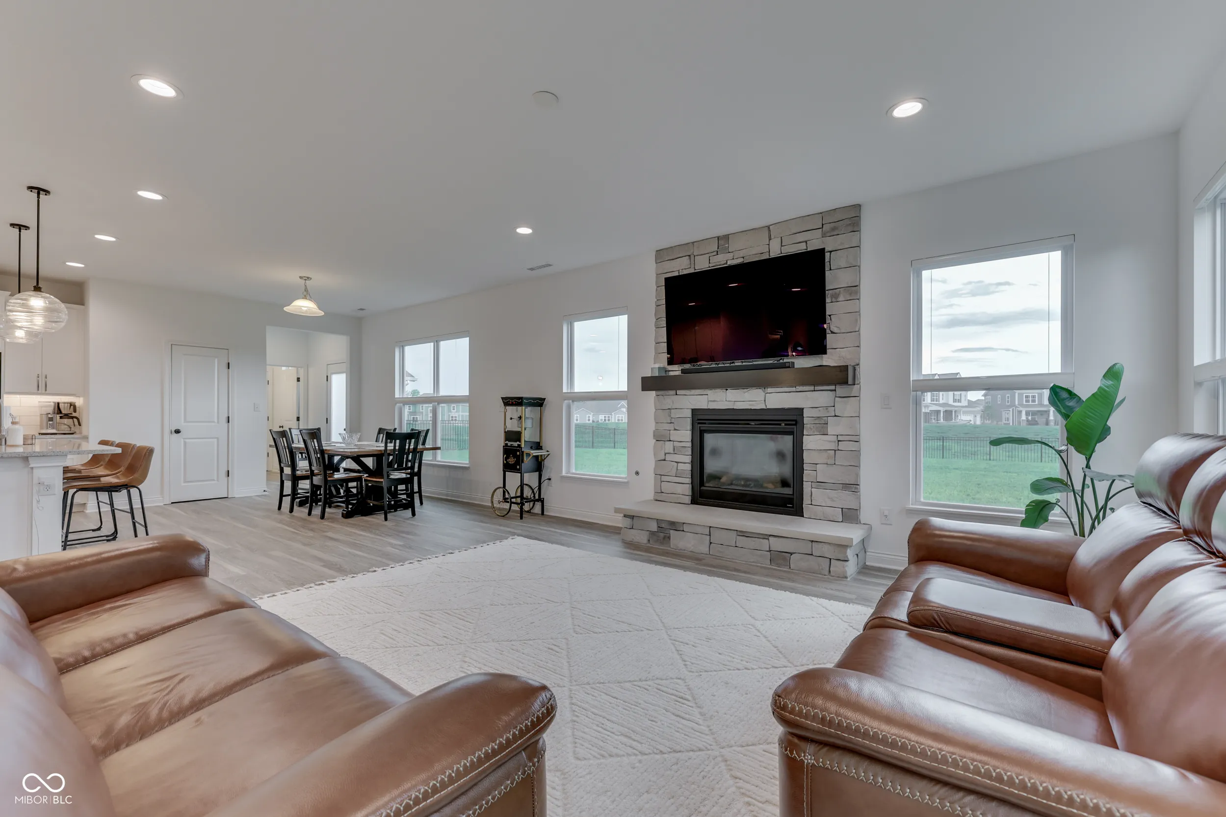 Save with a 1 point permanent rate buydown offered by the seller. Want to be a part of the fastest-growing area in Indiana? This just under 3000 Sq/ft home in the highly sought-after Saddle Club South in Bargersville is for you. This stunning property, built in 2023, boasts 4 bedrooms and 2.5 baths, including a guest bedroom equipped with a convenient Murphy bed. The main level features Luxury Vinyl Plank flooring along with both an office that has glass French doors & a separate playroom. The beautifully designed gourmet kitchen includes stainless steel appliances, quartz countertops, highlighted by the gorgeous under cabinet lighting, double pantries, one of which is a walk-in & a large island that doubles as a breakfast bar. Upstairs, you will find a spacious loft and an updated laundry room that has cabinets, a folding counter and a laundry sink. The primary bath has a stunning ceramic tiled shower and a gorgeous free standing soaking tub. The family room is enhanced with additional electrical outlets on the floor and features a beautiful gas brick fireplace and hearth. Custom window treatments throughout. Never run out of hot soft water with the Tankless Gas Water Heater and Water Softener. Enjoy the massive backyard surrounded by a black aluminum fence. Exterior soffit outlets and Gas line for your outdoor grill added for convenience. The home is wired for WAP. A spacious 668 square-foot 3-car garage provides ample storage and parking space. Community amenities include a pool, and conveniently close to the awesome Kephart Park which has a splash pad and a playground for the kiddos & Pickleball courts for the entire family. Located within the prestigious Center Grove School Corporation, this home offers everything you need for comfortable and stylish living. Don’t miss out on the opportunity to make this exceptional property your own. Contact us today to schedule a viewing!