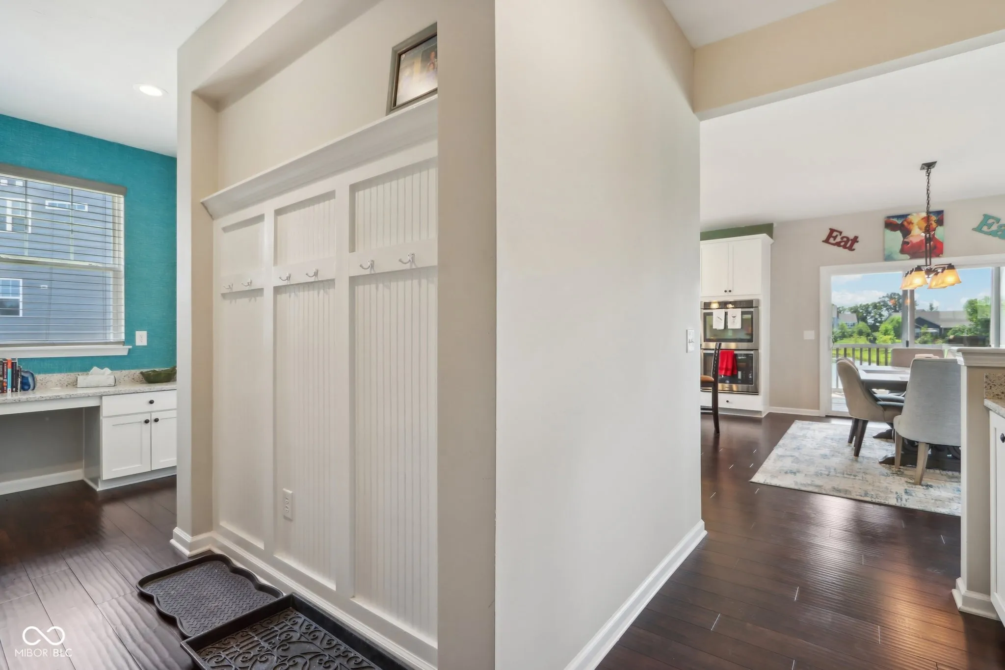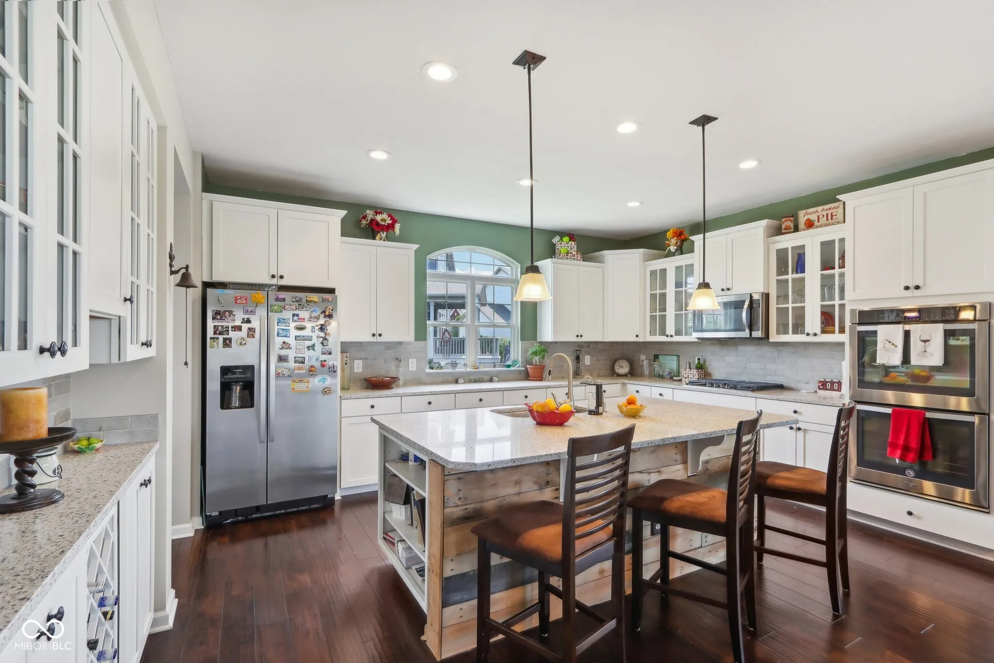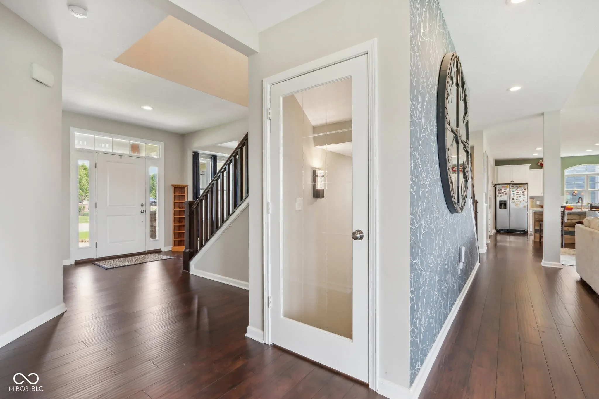 Sought after spacious brick home in Westfields popular Springmill Park! Home is nestled on a pond for serene views. This home has everything you could ask for! Great curb appeal shows pride of ownership that you will find through out. Covered porch leads to open foyer, stunning dark floors through out the main living areas. Two story great room with soaring ceilings, gas fireplace and tons of natural light. Solar shades along back windows for privacy. Eat in kitchen features, center island with shiplap, granite counters, tile backsplash, white glass front cabinets double oven, cooktop, dishwasher and microwave. Main floor bedroom, main floor bath has been updated to a full bath with walk in shower, tile walls and shiplap to complete the look! Sunroom/office is bright and airy! Rear mudroom space with custom boot bench and storage galore, perfect drop zone for a busy household. Formal dining room with tray ceiling could be second office or living room. Owners suite with tray ceiling and plenty of space for sitting area. Owners bath with separate sinks, tile floors, water closet, Walk in tile shower with convenient bench and soaker tub. Bedroom two and three have Jack n Jill bath. All 4 bedrooms are spacious. Laundry upstairs for added convenience, custom built in cabinet and laundry sink stay. Finished basement features can lights, theatre area, work out room and tons of storage. Screened in porch overlooking the lush backyard and pond. Home has irrigation front and back.
