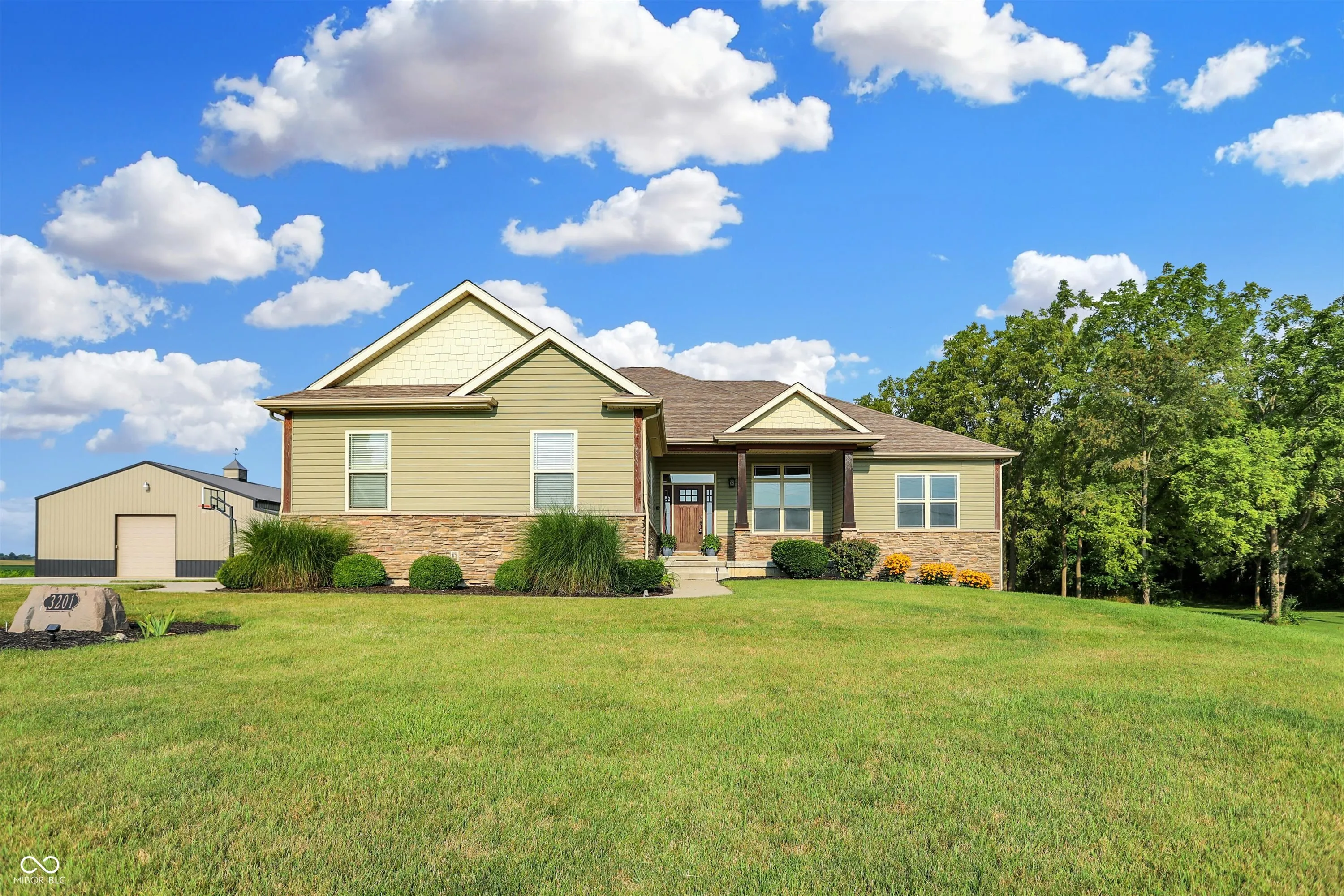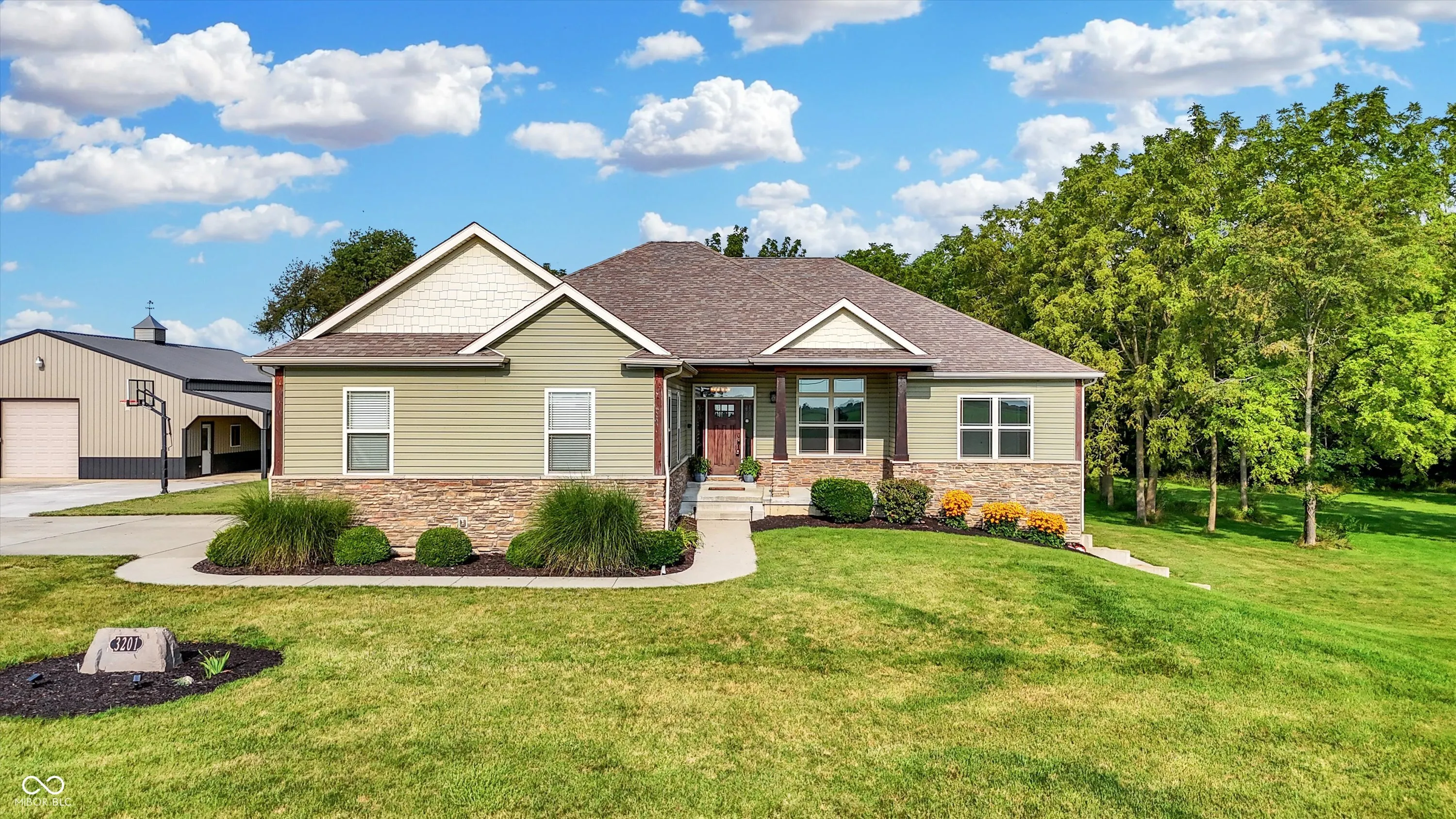 Discover the perfect blend of country charm and modern convenience in this stunning 5 bedroom custom ranch home situated on two acres. This home features a walkout basement and a versatile pole barn, offering endless possibilities for comfortable living and entertaining. Step inside to find new carpet and fresh paint throughout, creating a welcoming and updated atmosphere. The heart of the home is the beautiful kitchen, boasting a large island, custom cabinets, and sleek stainless steel appliances, making it a chef’s dream. The master suite is a true oasis, featuring a walk-in shower, a large tub, and a custom walk-in closet designed for optimal storage and organization. The walkout basement enhances the living space with a spacious family room, two additional bedrooms, and a full bathroom, providing plenty of room for family and guests. The property also includes a pole barn with a finished apartment, complete with a bedroom, full bathroom, kitchenette, and a covered porch, perfect for extended family or rental income. Embrace the tranquility of country living while enjoying the luxurious amenities of this exceptional home.