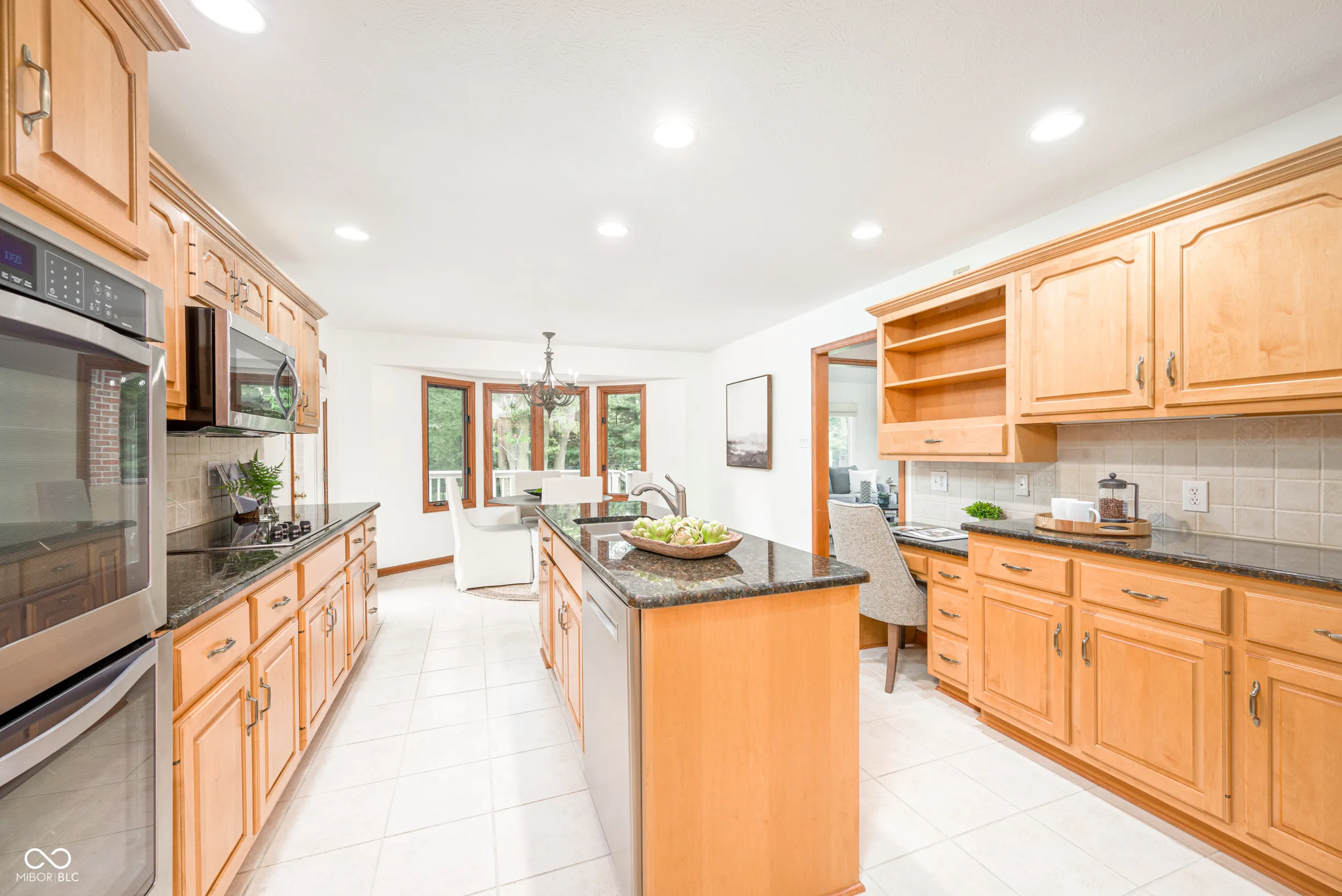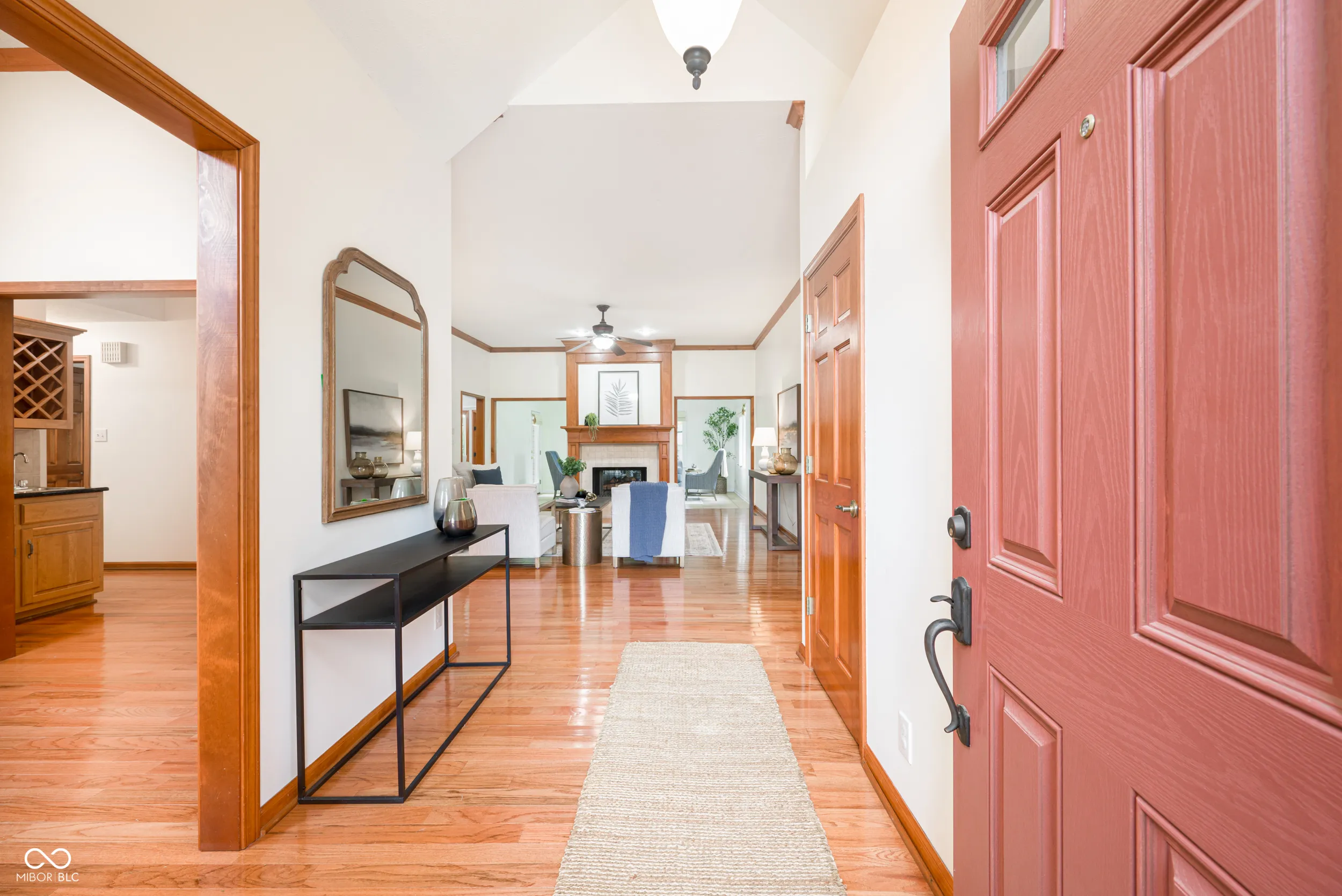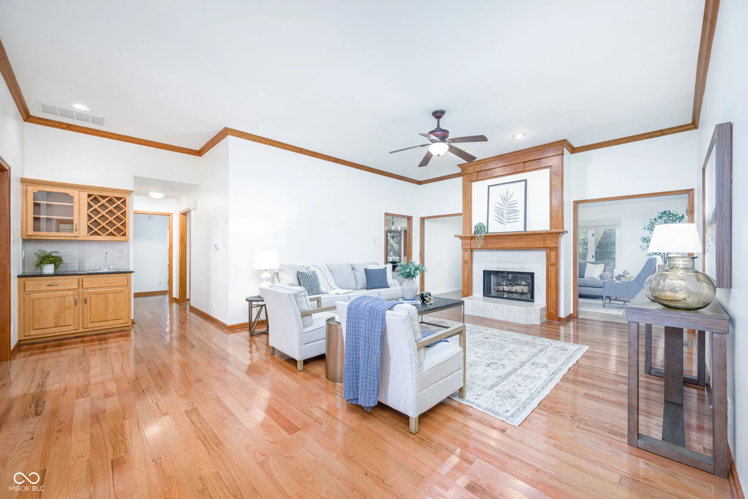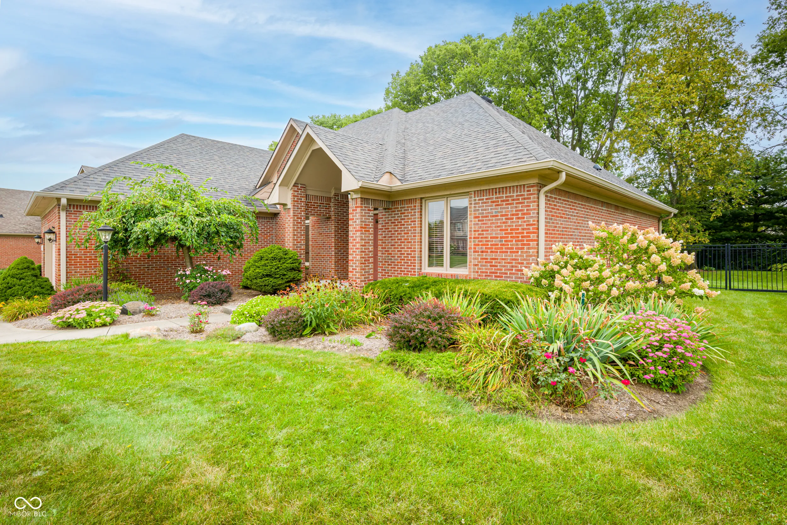 Enjoy this wonderfully maintained, all brick custom ranch home in Brittany Chase. Light dazzles off the hardwood floors upon entry and illuminates the 10 ft. ceilings. A two-sided gas fireplace creates a warm gathering spot whether in the great room or the sunroom that overlooks the serene backyard. The eat-in kitchen has bay windows to encompass your dining table. Plenty of cabinets and counter space for all your cooking and kitchen accessories. Easily accessible, the formal dining room could also be used as an in-home office/flex room. The hardwood floors are repeated in the bedrooms, including the primary with its generous walk-in closet and an ensuite bathroom with dual sinks, jetted tub and standing shower. On the opposite side of the house, the two good sized secondary bedrooms (one with a seated bay window) share a hall bathroom. Outside, a fully fenced backyard with mature trees provides privacy and ample shade where needed. The large deck is perfect for outdoor dinners with family and friends or basking in the Indiana sunshine. Neighborhood amenities include a pool.
