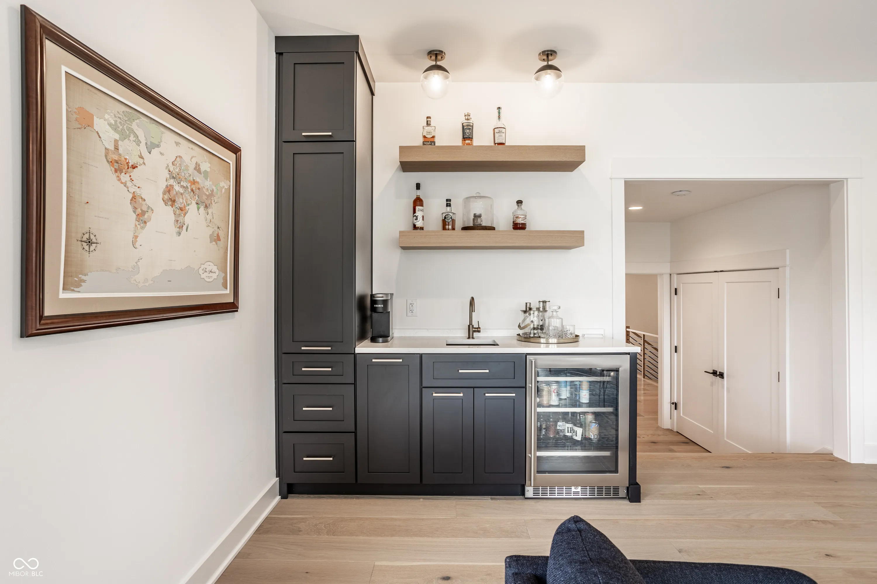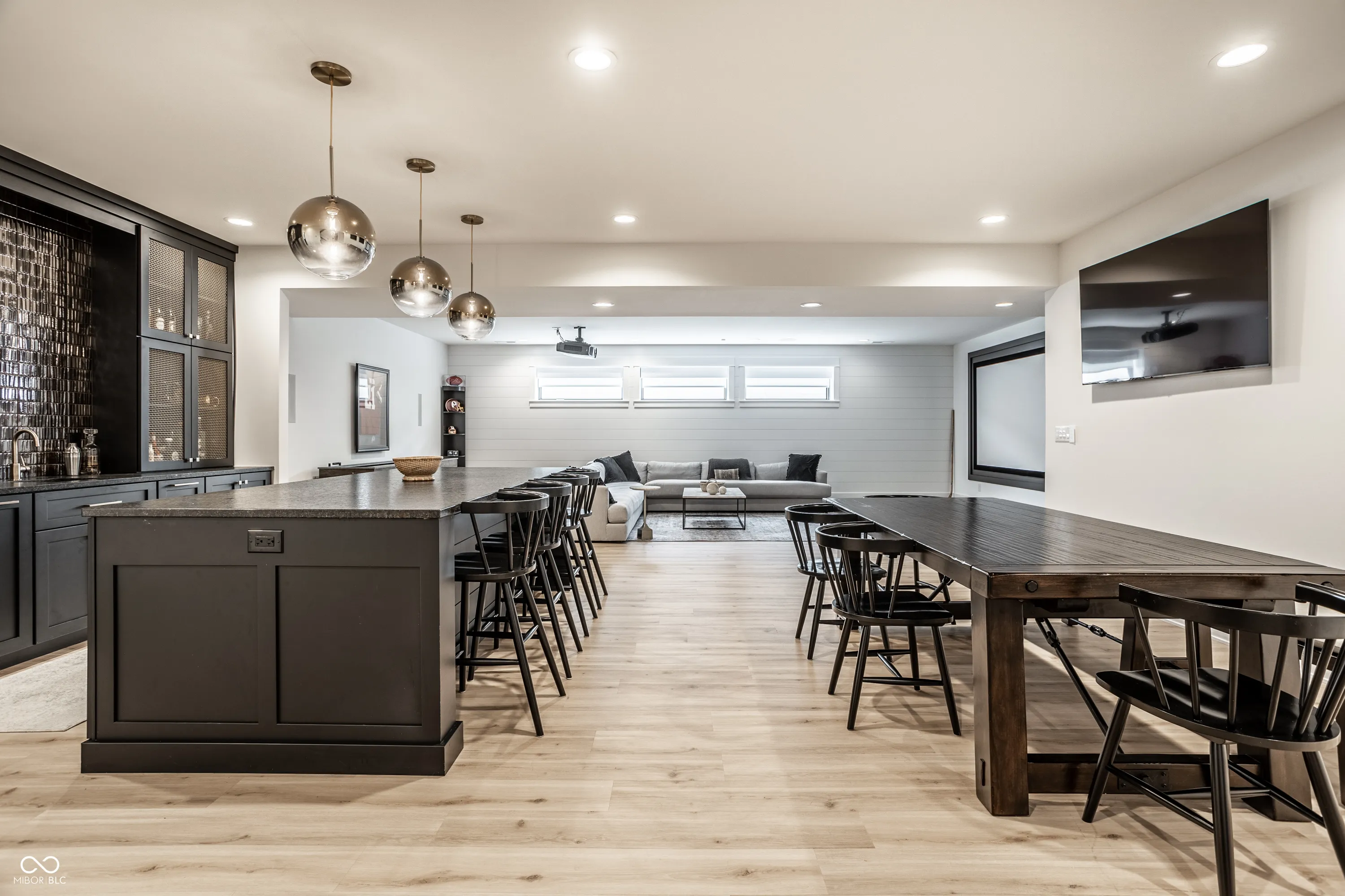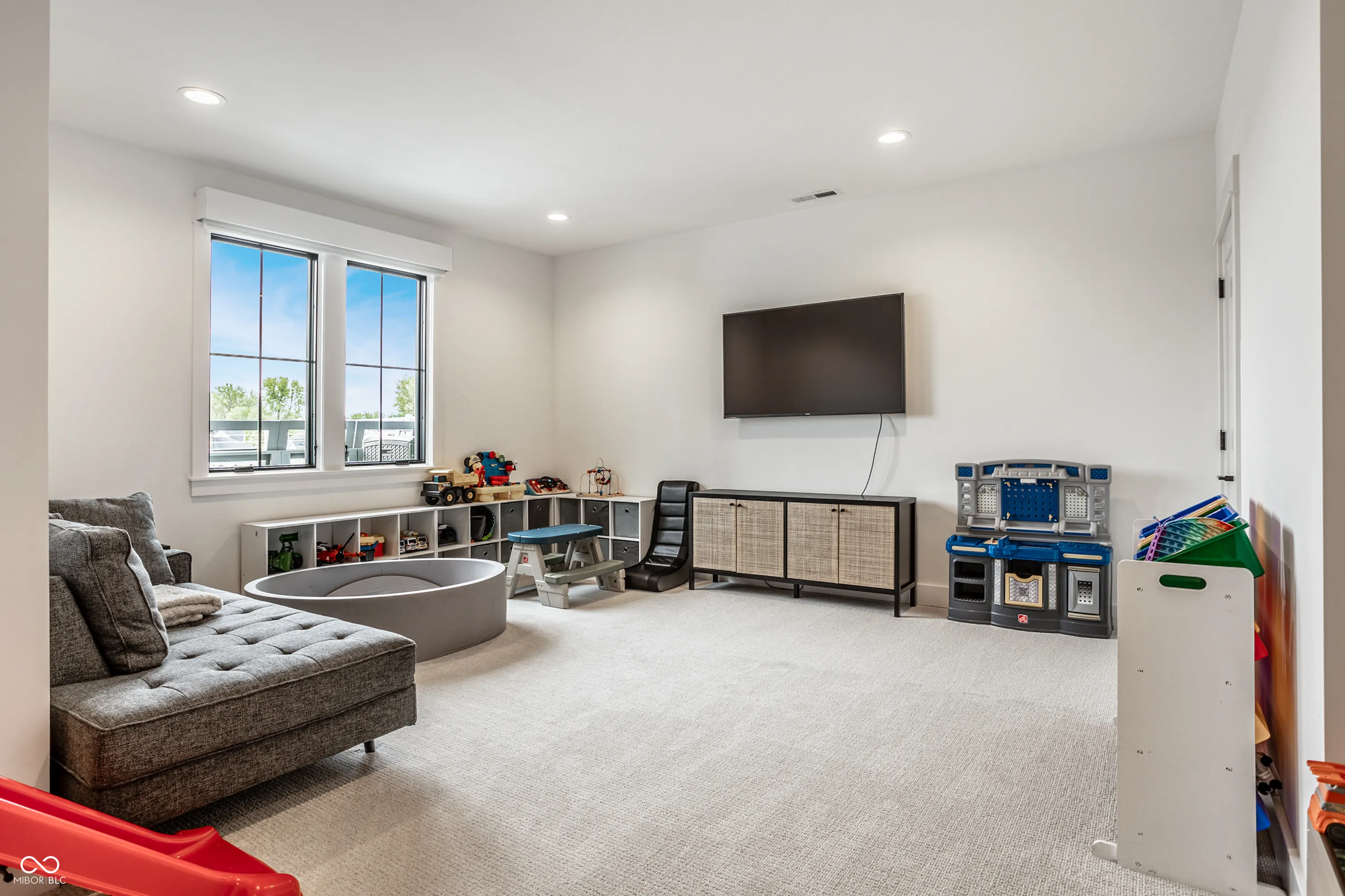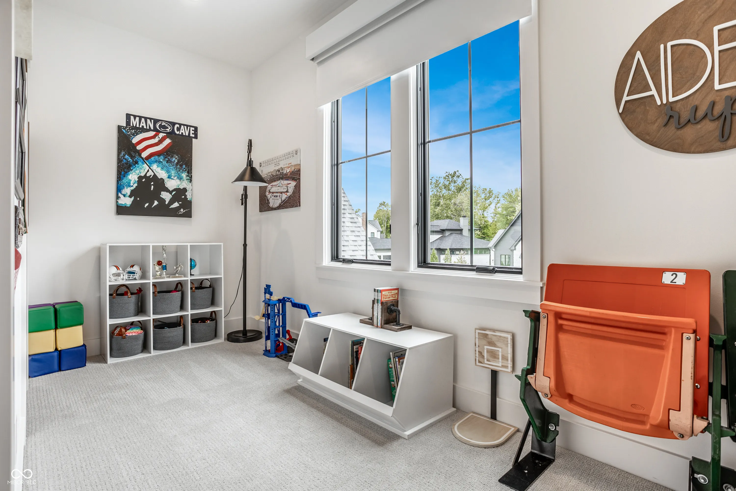 Nestled within the prestigious Holliday Farms of Zionsville, this exquisite custom home by renowned builder Kent Shaffer Homes awaits. The open-concept living spaces feature panoramic views of the second hole through expansive floor-to-ceiling windows. The great room, designed with a fireplace, built-ins, and soaring ceilings adorned with wooden beams, exudes charm and sophistication. Connected seamlessly to the kitchen, a culinary haven awaits with quartz countertops, a quartz backsplash, and a custom range hood, perfect for any cooking enthusiast. The magnificent main level primary suite, complete with a tray ceiling and beautiful beams, features a spacious walk-in closet and a spa-like bath. Ascending to the upper level reveals an expansive media room with vaulted ceilings and custom built-in desks, a wet bar, three bedrooms, two full baths, and a large balcony overlooking the second hole and a serene pond. Additionally, the upper level boasts two exquisite bonus rooms, thoughtfully finished by the seller. The impeccable lower level offers entertainment options, including a media room and a well-appointed wet bar, ideal for hosting guests. Additionally, the lower level features a bedroom, full bath, and an exercise room, offering versatility and functionality. Outside, the covered lanai with invisible screens beckons, providing a tranquil setting to admire the breathtaking views alongside an outdoor fireplace, completing this exceptional residence. This home epitomizes luxury living.