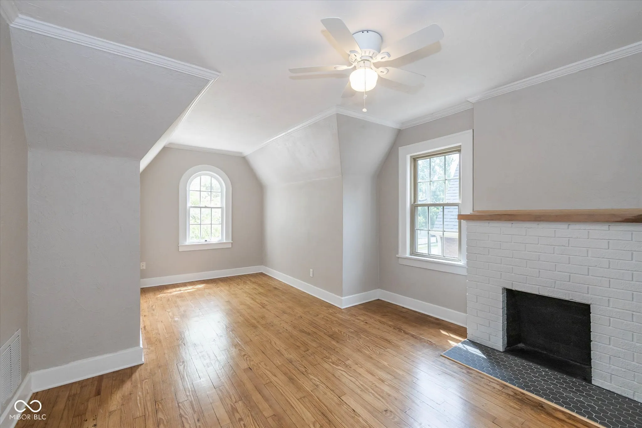 Amazing updated Tudor style home with hardwood floors throughout in Fortville!! Oversized Living room with fireplace and French doors opening to your porch and backyard. Plenty of room to host and entertain with your formal dining room and updated kitchen. Upstairs there are 3 bedrooms and a Full Bath. Upper level / attic has been fully finished to be either a bedroom or large bonus room along with a complete full bath. Basement contains large laundry area and plenty of room for storage. This home has not one but two garages – one large enough for your vehicles / adult toys and an entertainment area overlooking the fenced in backyard. Walking distance to downtown Fortville and tons of cute retail shops, coffee, and dining.