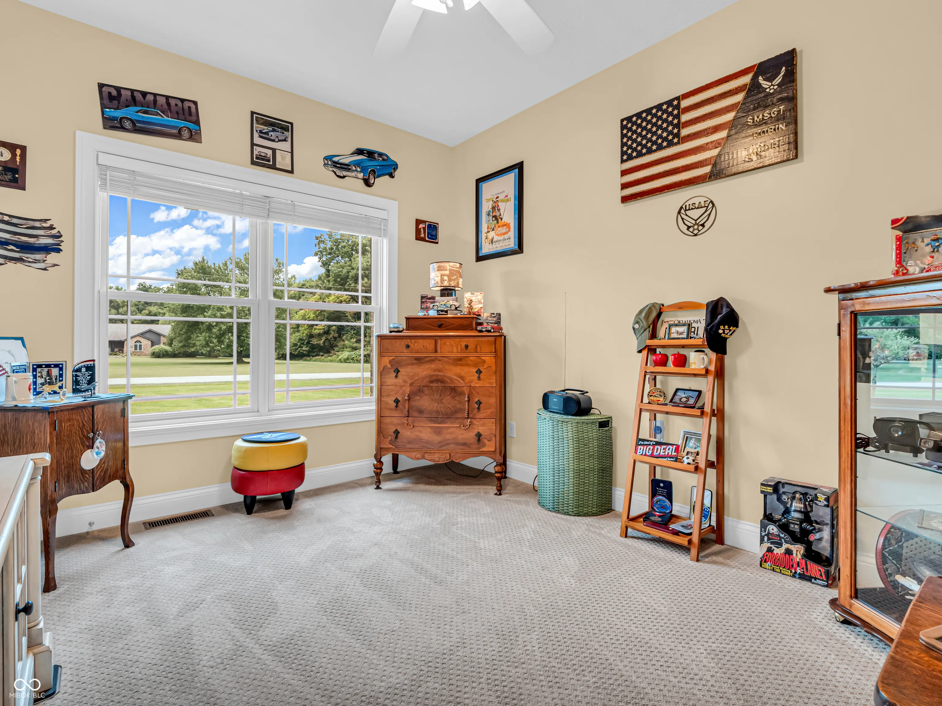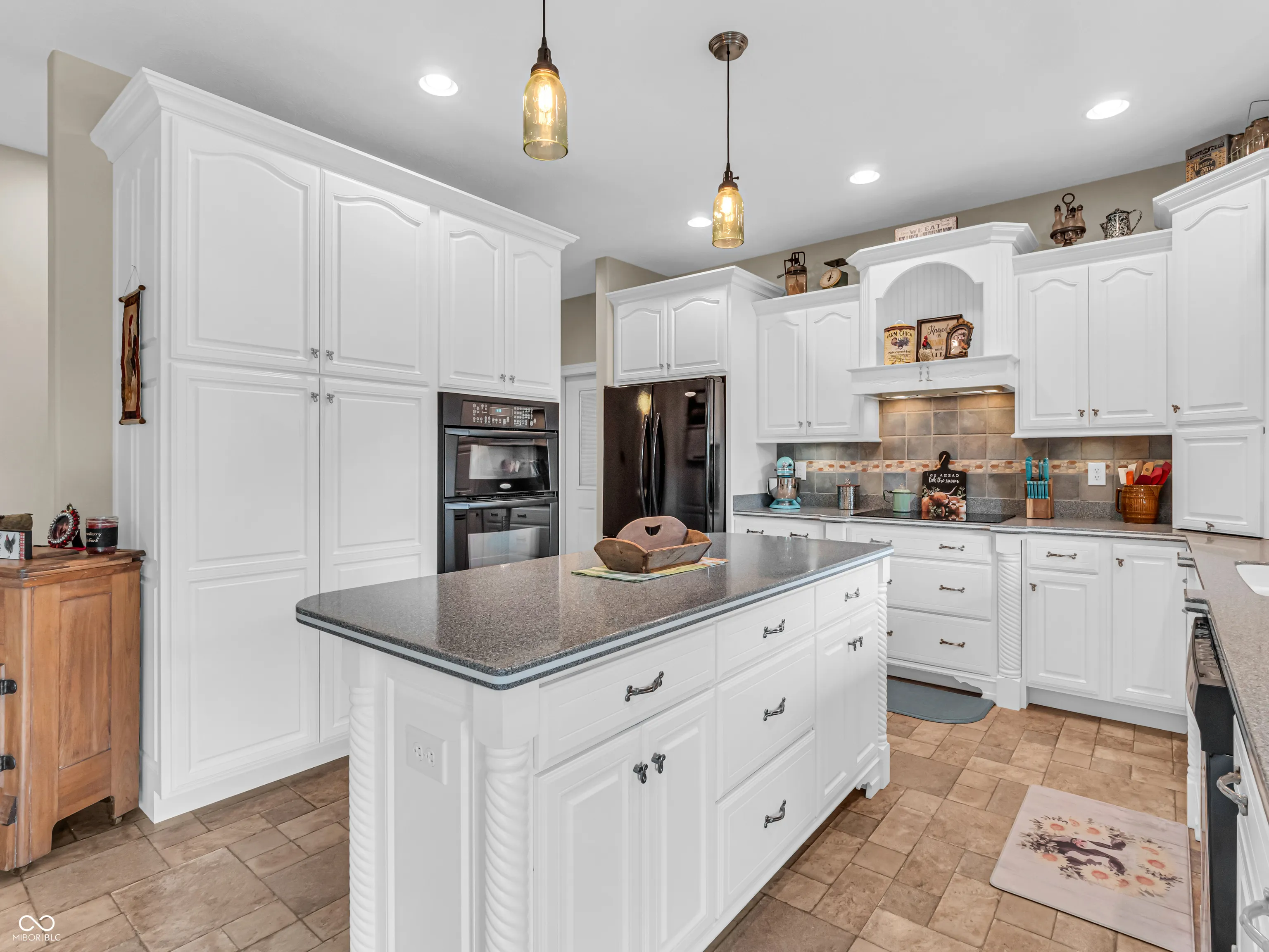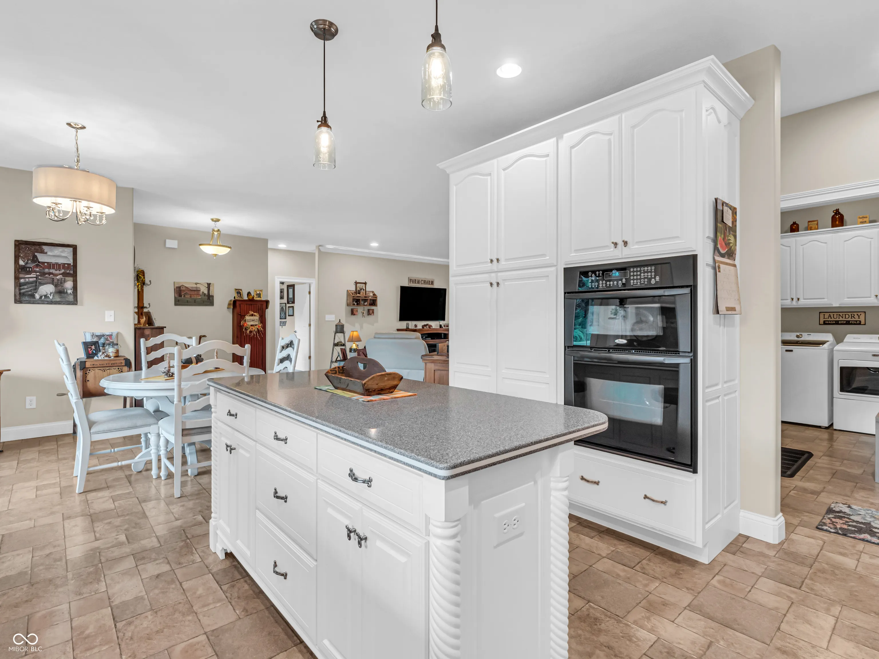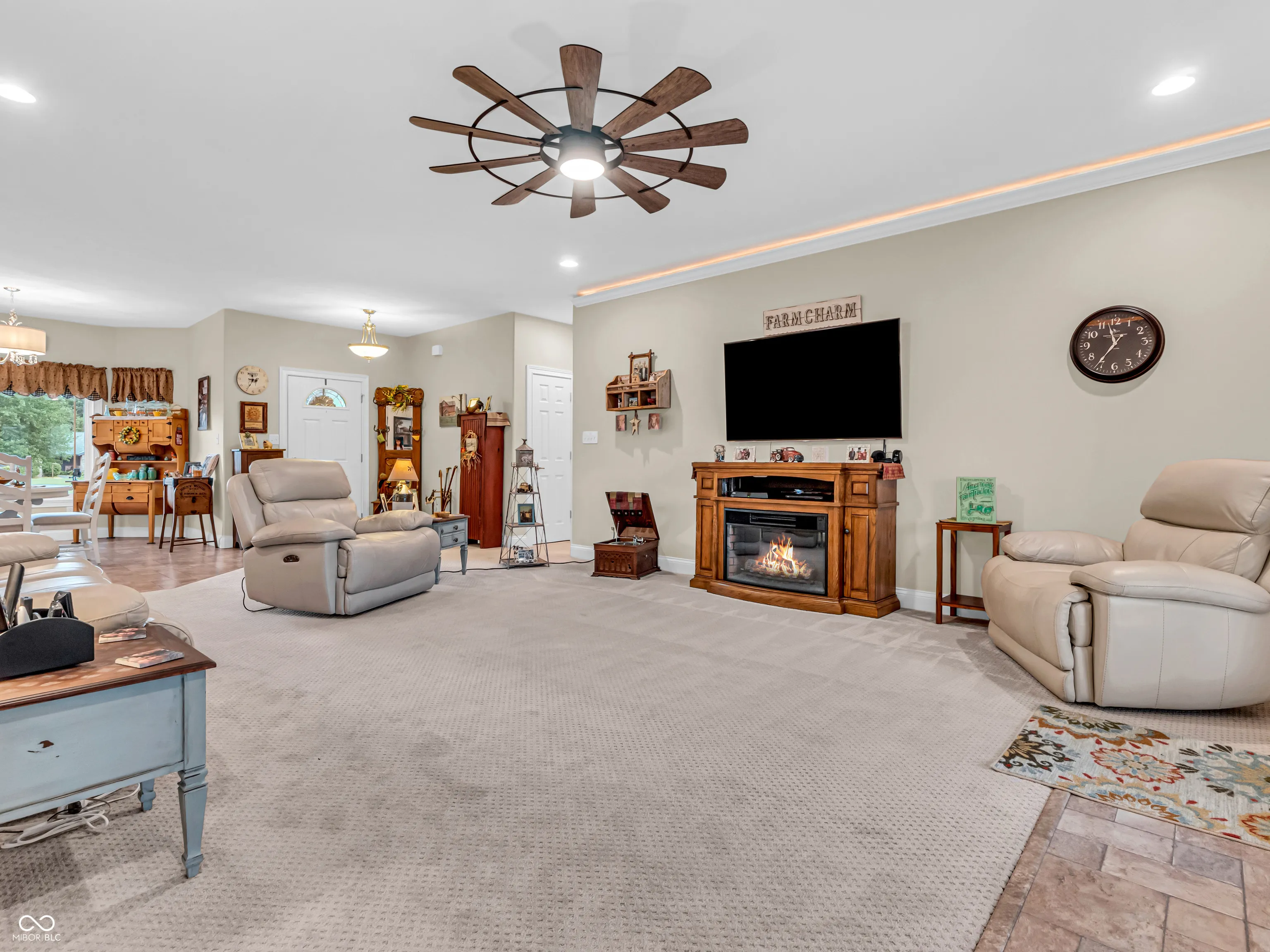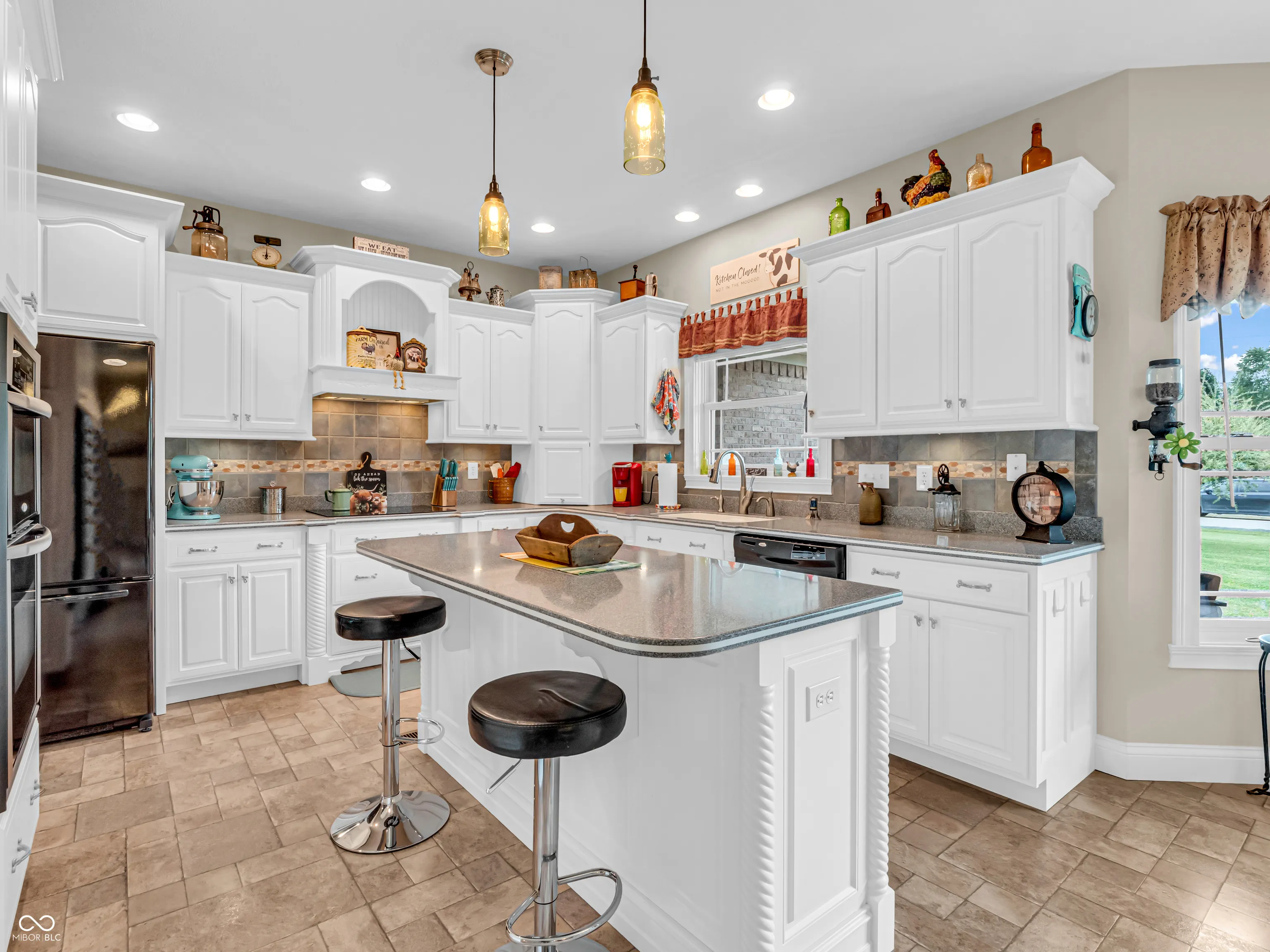 Amazing custom-built home on 2 acres that doesn’t come along often. This brick ranch with a full basement, 3-car attached garage and 3-car detached garage is a short walk to the DePauw Nature Park and surrounded by other high-end custom homes. The first floor features open-concept living with tall ceilings, 3 bedrooms, 2 1/2 baths, a dedicated office, walk-in pantry, laundry room, dining room with bay window, and white kitchen with custom cabinetry and upgrades. The primary suite has tray ceilings, a large walk-in closet and full bathroom with double sinks, jetted tub and shower stall. The kitchen includes all appliances, double oven, center island with bar seating, double sinks, range hood, and so much more. The full basement features three large rooms for gaming, movies and gatherings; as well as a large storage room with built-in shelving. A large finished attic above the garage gives you even more storage. Enjoy the fenced backyard with large gazebo and fire pit from the covered back patio. The brick 3-car detached garage is a dream for anyone wanting a workshop, studio or hobby space. The full concrete driveway includes a basketball court. High-speed internet available. This meticulously-maintained home is conveniently located close to town on paved roads, but has the quiet and nature of the countryside.