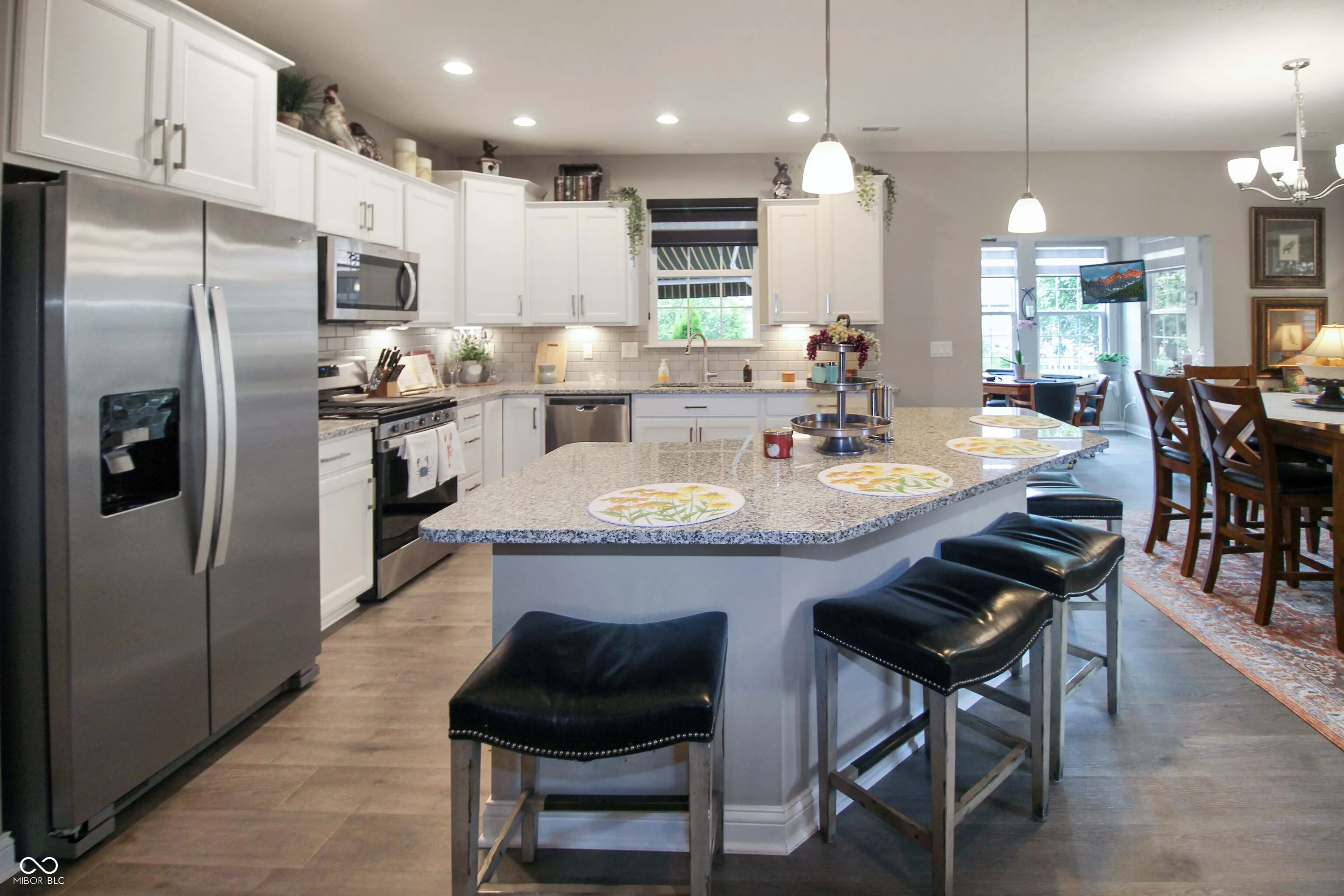 Discover your oasis in this inviting 2-bedroom, 2-bathroom maintenance free living patio home! Enjoy a spacious gourmet kitchen featuring sleek quartz counters, gas stove, stylish backsplash, large island w/ seating. Enjoy morning coffee in the breakfast nook or unwind in the serene sunroom. Well thought out storage solution with several custom closets. Primary Suite features double sinks, custom walk in closet, tile shower and overlooks the backyard. Split bedroom floor plan provides privacy for guests. Step outside to your private stamped concrete patio, complete with an automatic awning for shade on sunny days. Fire up the grill and savor outdoor dining in the tranquil tree-lined setting.