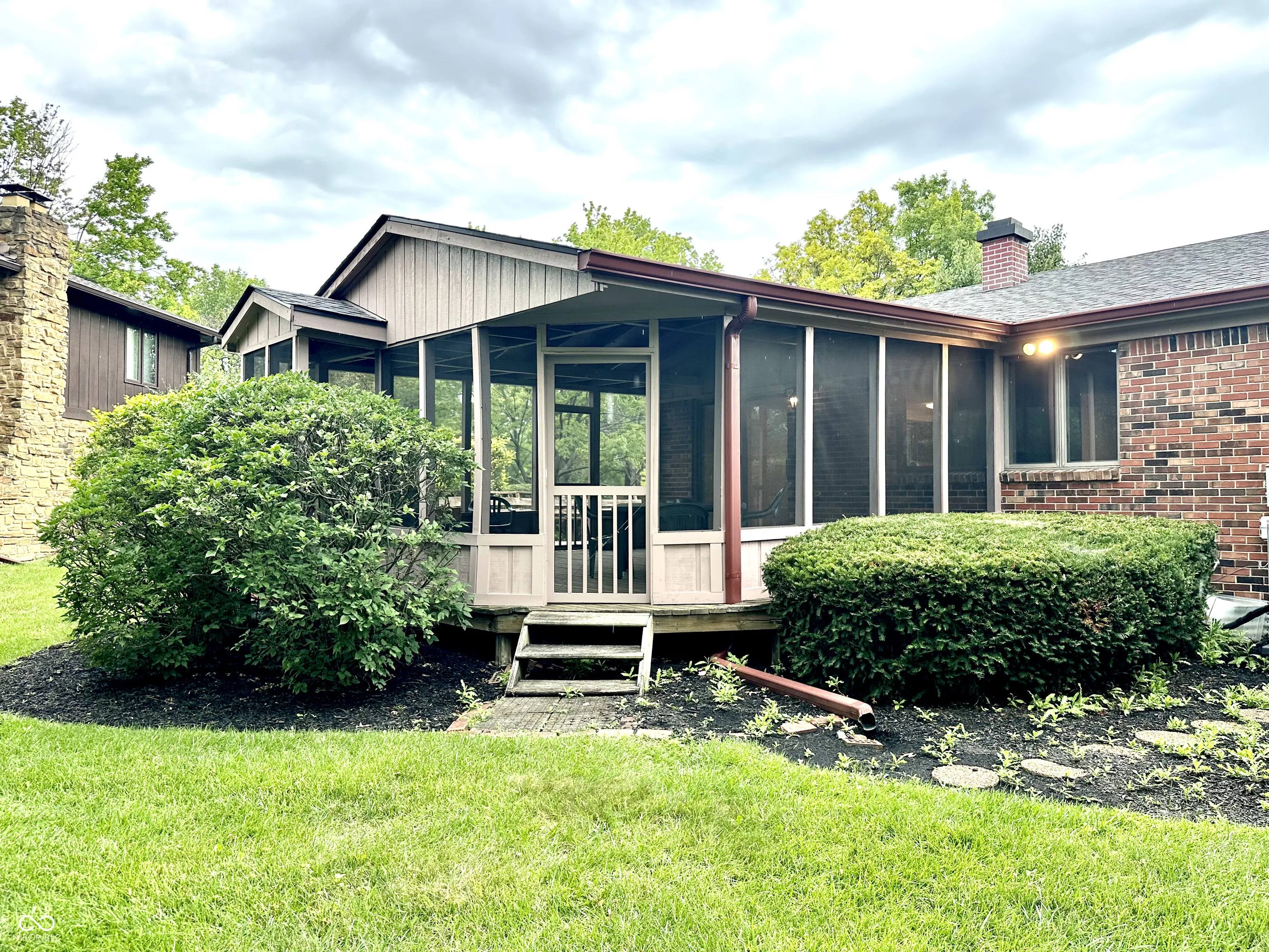 This charming Castleton Estates home boasts incredible curb appeal and features 3 bedrooms and 2.5 baths. The primary bedroom includes an ensuite bathroom, a dressing table area, and a spacious walk-in closet. The updated kitchen showcases beautiful solid wood cabinets. The large entry area, complete with a coat closet, flows into a great room that opens to the dining room, creating a circular floor plan leading to the kitchen. There is a convenient half bath off the garage entrance, and the main floor includes a laundry room. Enjoy relaxing on the expansive screen porch with vaulted ceiling, offering an additional outdoor dining area including an attached deck. Despite the proximity to neighboring homes, the property provides a sense of complete privacy. The large, deep, waterproofed full basement offers potential for conversion into additional living space.
