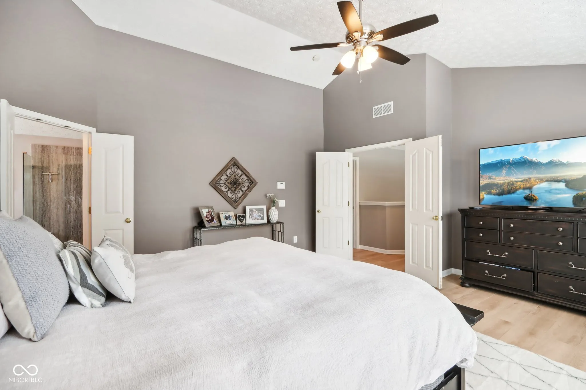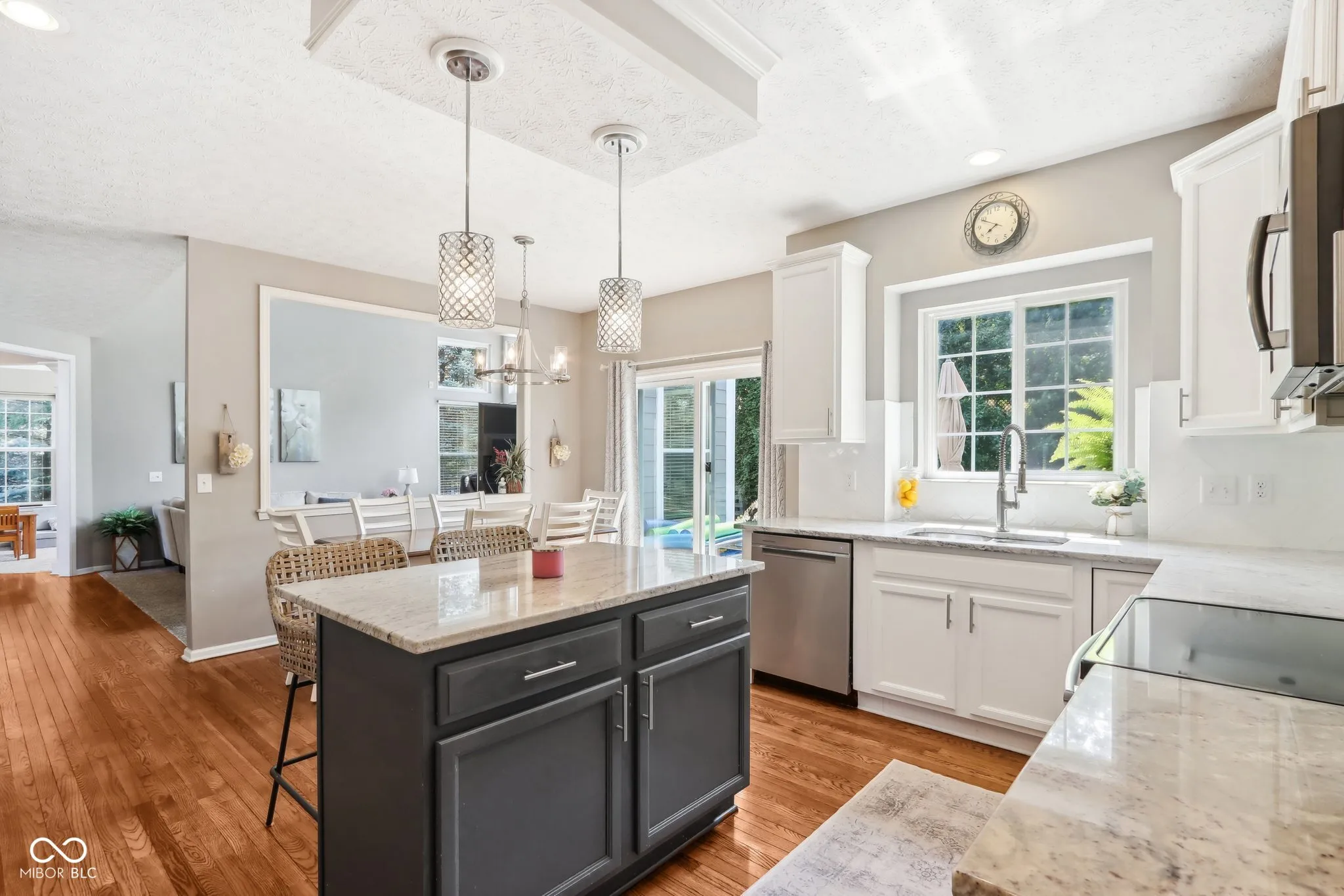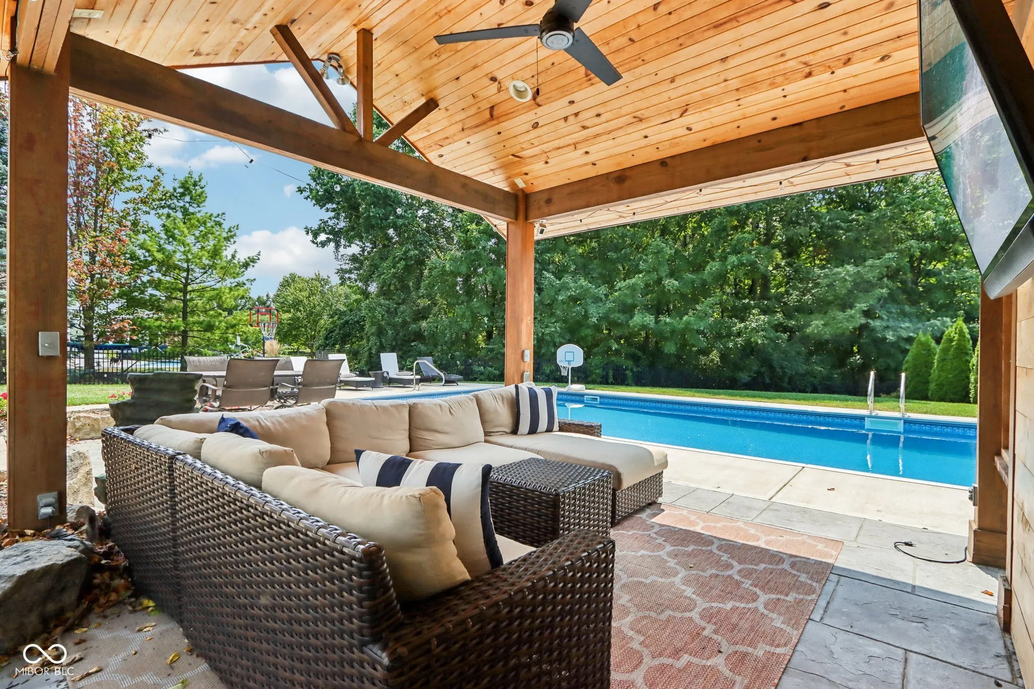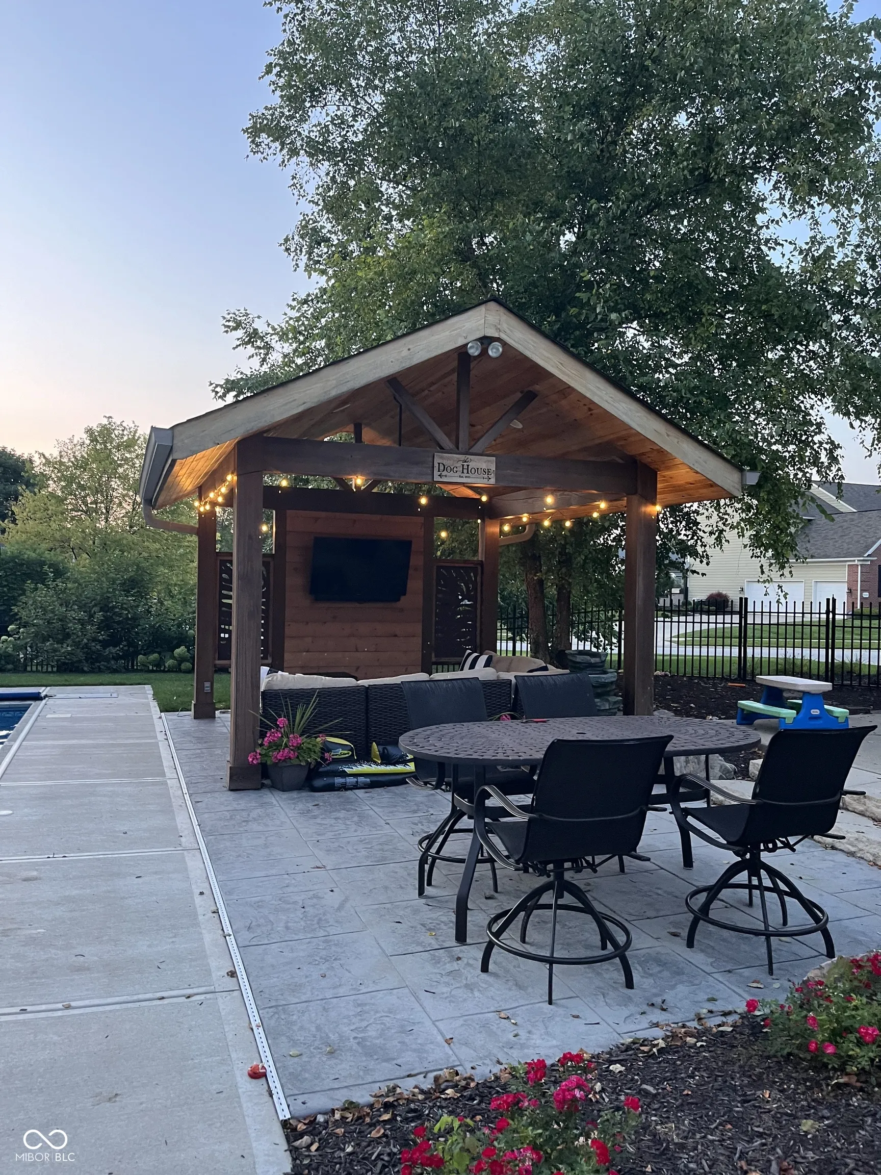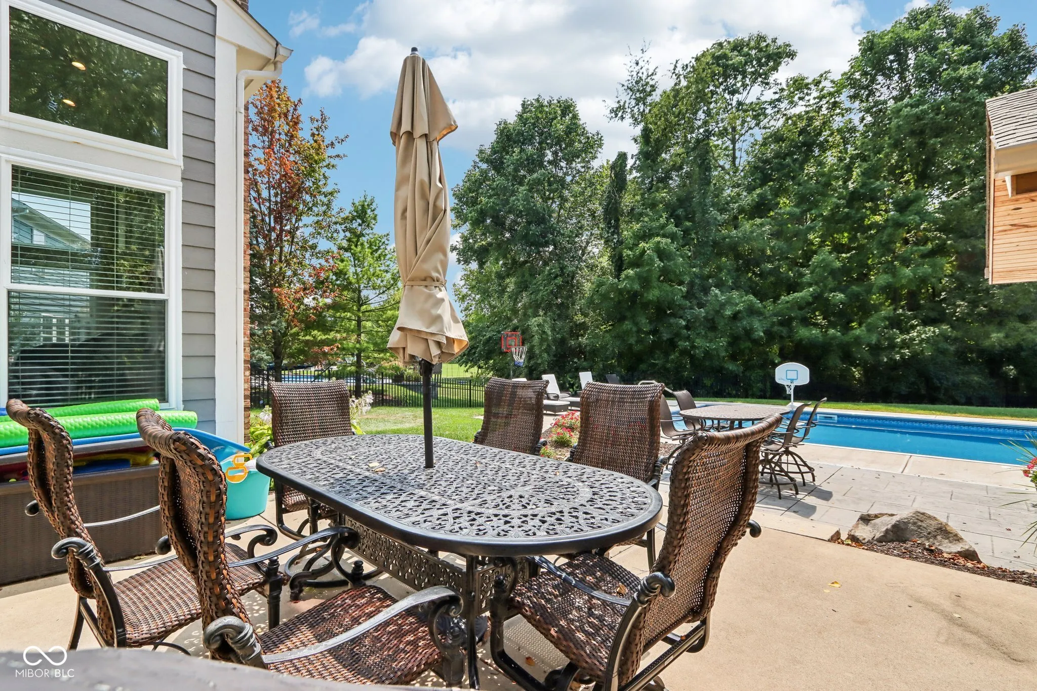 Welcome to this meticulously maintained 4-bedroom, 2.5-bathroom residence nestled in the Gray Eagle. As you enter, a stunning brick archway leads you to a grand 2-story foyer, showcasing elegant hardwood floors and classic wainscoting. The main level continues to impress with rich hardwoods extending through the hallway and into the bright, updated kitchen. Featuring a center island, SS appliances, quartz countertops and tile backsplash, this kitchen is perfect for both everyday living and entertaining. The vaulted great room, complete with a cozy fireplace, offers perfect views of the wooded backyard. Retreat to the expansive master suite, where vaulted ceilings and two walk-in closets provide ample space. The luxurious en-suite bathroom features tiled floors, a relaxing soaking tub, and stylish finishes. The finished basement adds versatile living space with a spacious family room, a bar area, and a large finished workshop. Step outside to discover your private oasis-a fenced backyard with a sparkling in-ground pool, perfect for summer fun. The pergola, equipped with electricity, offers a shaded retreat where you can unwind and enjoy the outdoors. Located in the perfect convenient Fishers location, this one won’t last long. Don’t miss your chance to experience this exceptional property!