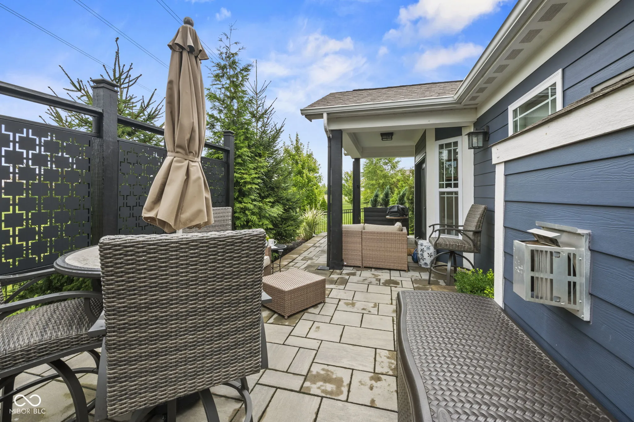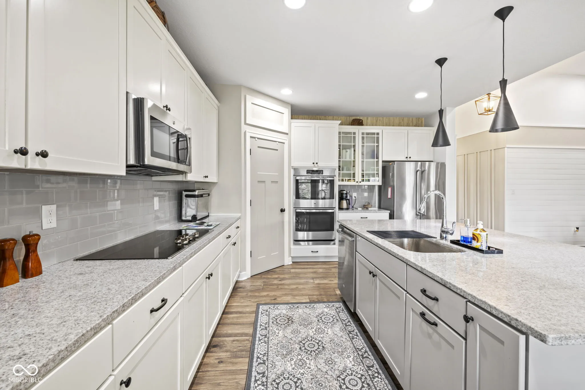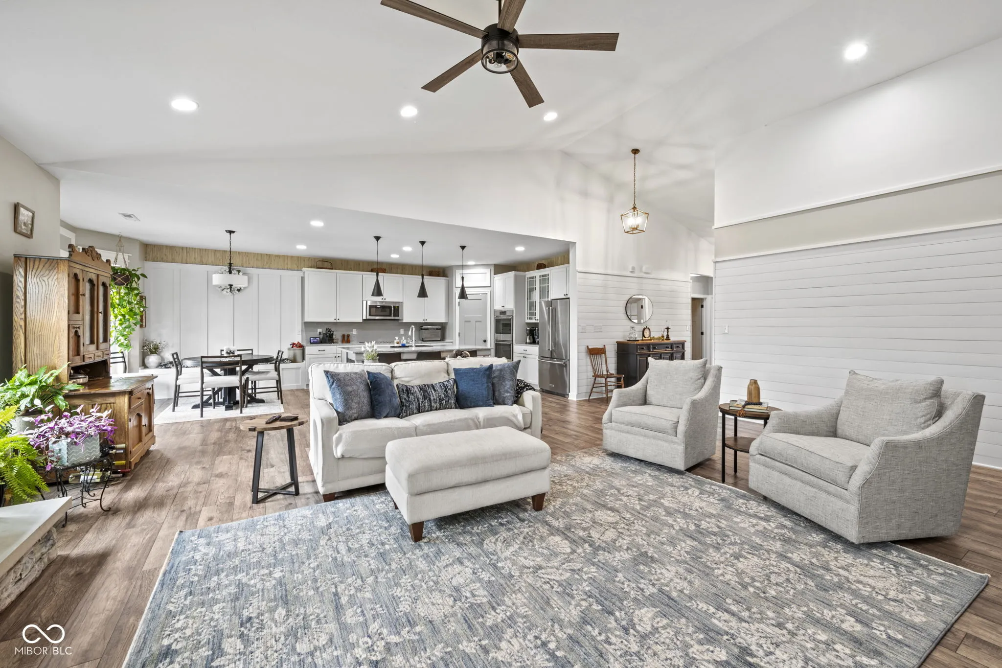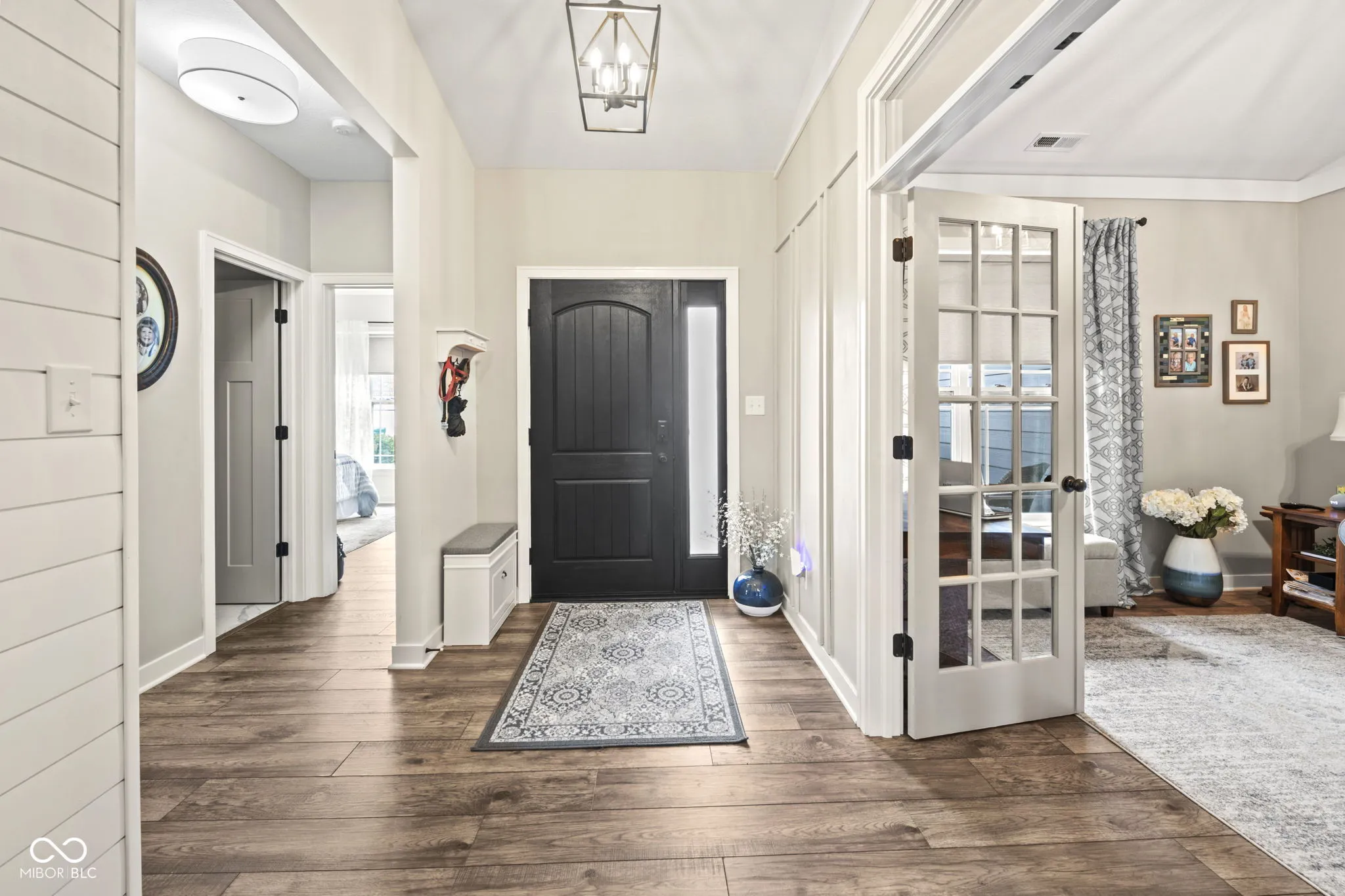 Welcome to this stunning ranch-style home in Zionsville! Prepare to be captivated by the exquisite hardwood floors and custom trim work throughout. The floor plan flows seamlessly from the entrance into each area. The great room features cathedral ceilings and a gas fireplace with a stone hearth and surround. The chef’s kitchen boasts an oversized quartz island/breakfast bar, a nook with a built-in bench, and all baths have been updated with ceramic tiles, cabinets, and countertops. The home includes three bedrooms plus a flex room with cathedral ceilings, glass French doors, and built-in cabinets. Welcome guests on the covered front porch, and enjoy the back paver porch and extended paver patio with decorative panels, perfect for both quiet time and entertaining. Professionally designed mature landscaping and hardscape create a picturesque setting year-round.