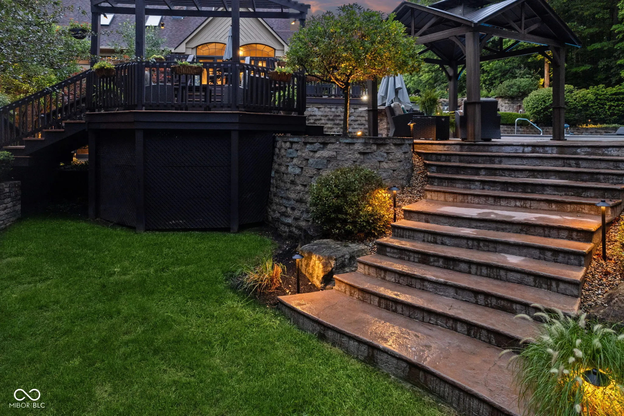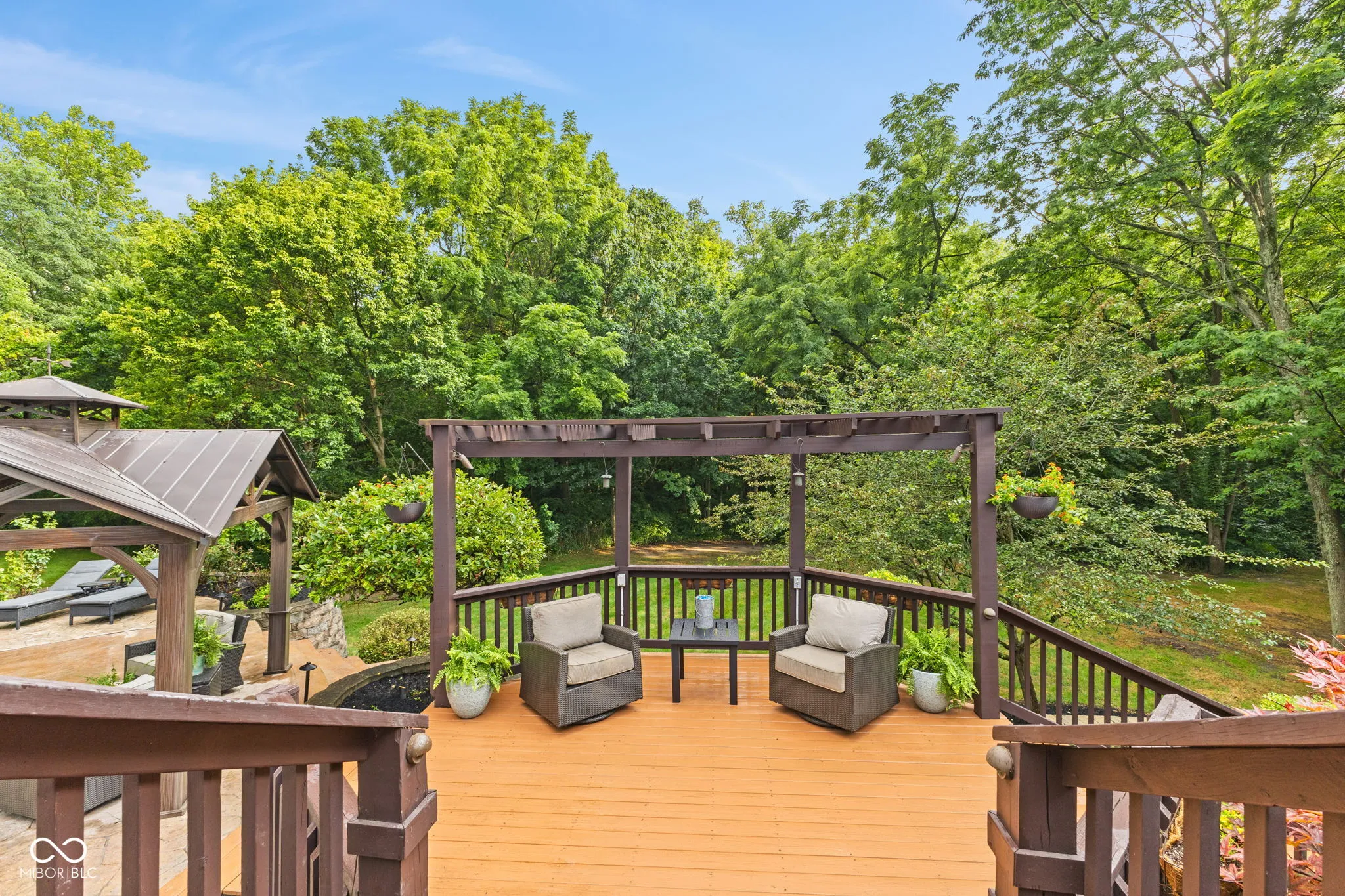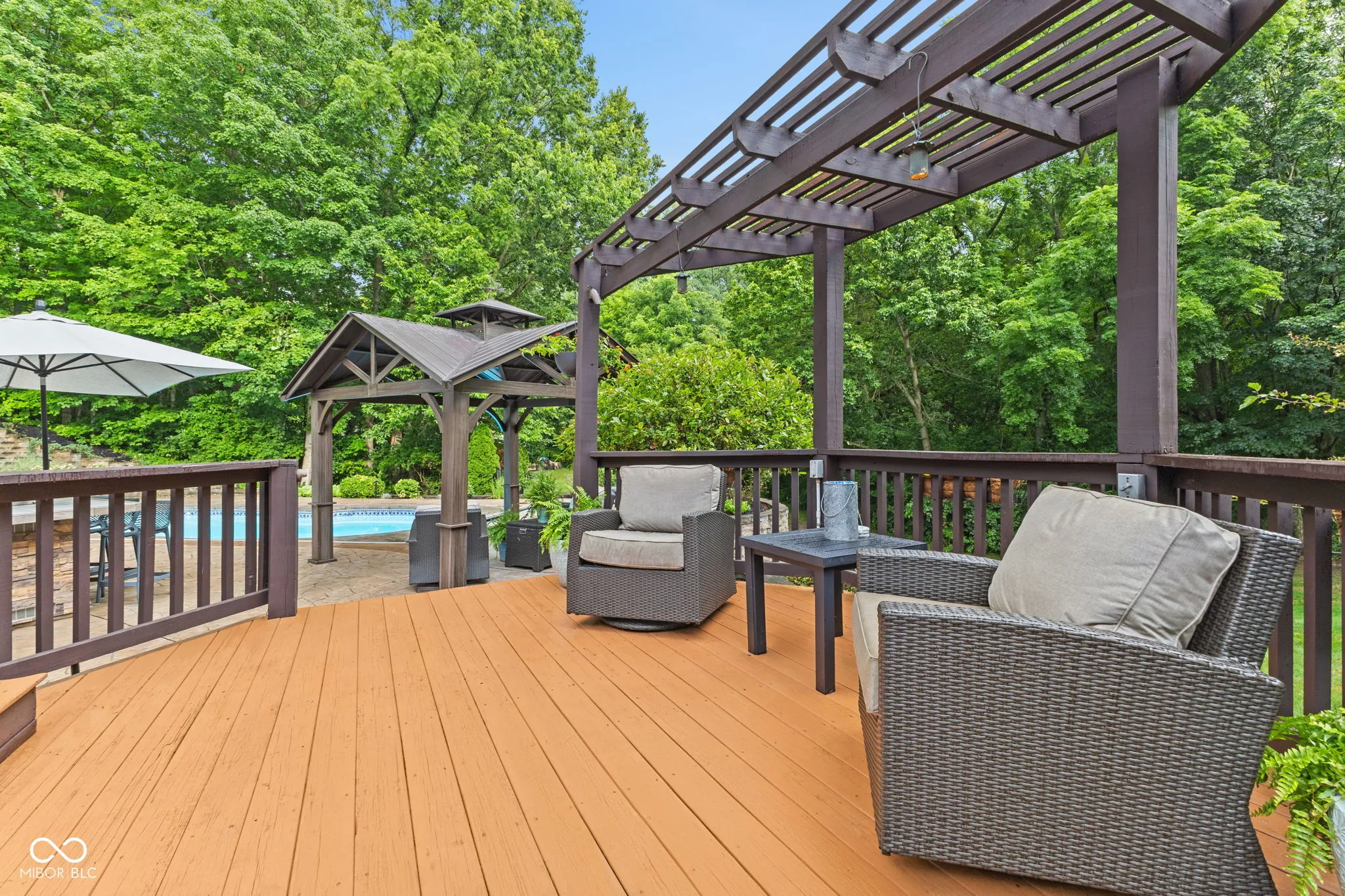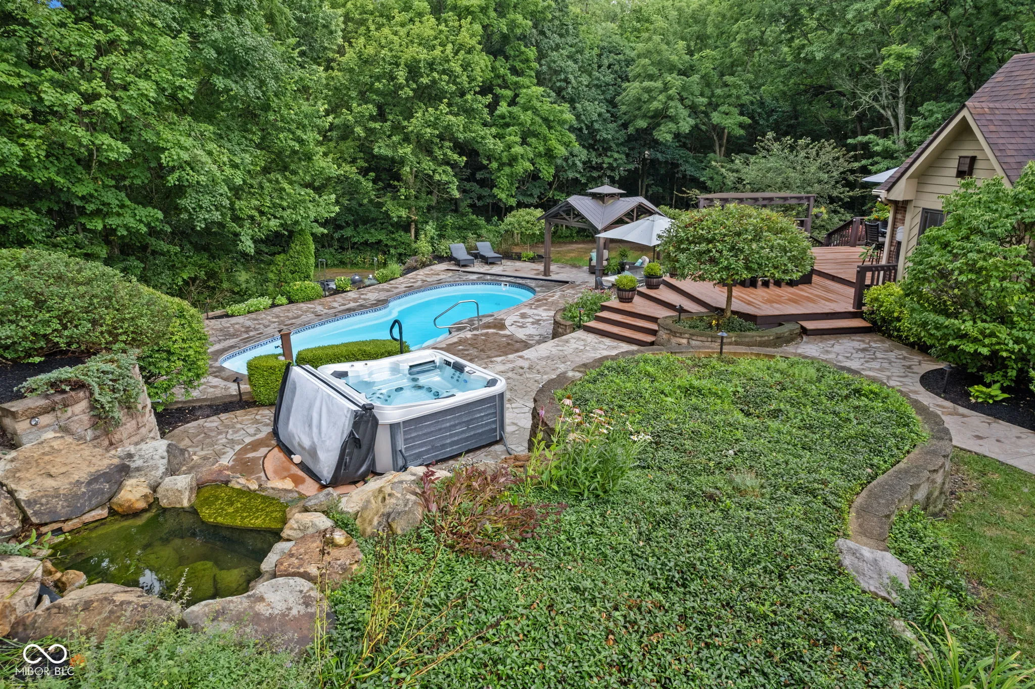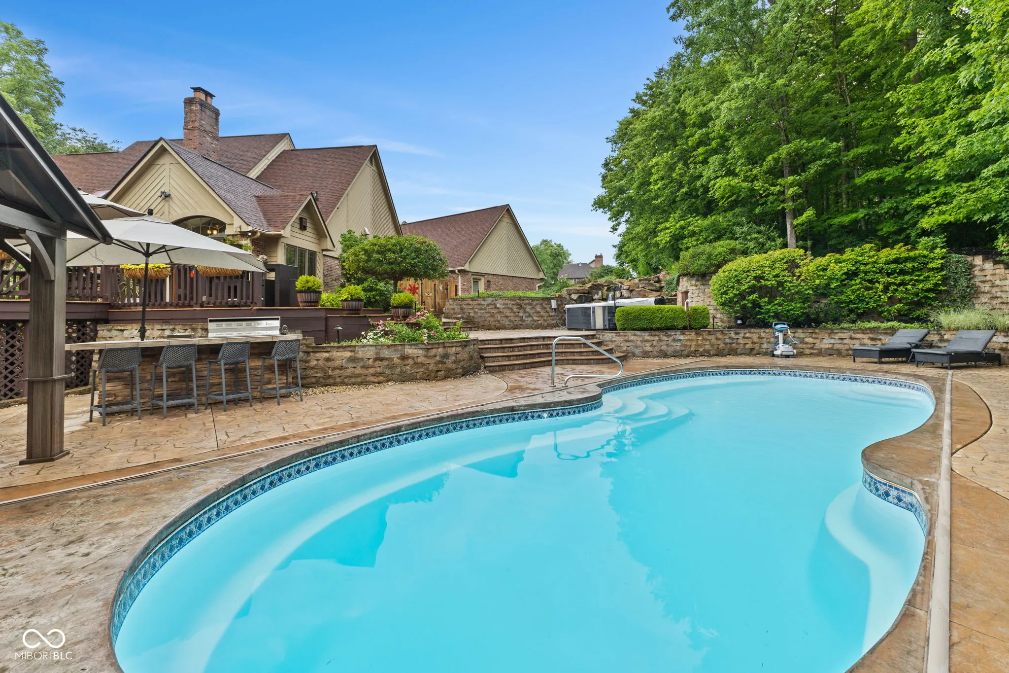 Live, entertain, work, play, relax and enjoy! This unique home offers it all with incredible indoor and outdoor living space! Offering many features, including multiple gas fireplaces, an in-ground pool, waterfall, outdoor spa, multi-level deck and quiet vignettes. Your property is nestled on a 2+ acre lot! The lot is wooded with a beautiful bubbling brook through the backyard. The primary suite on the main level offers a spa garden bath, walk-in closet, spacious walk-in tiled shower and double vanities. The guest quarters on the garden level include a private kitchen with a full bath, family room, full bar, bedroom, a 500 gallon saltwater fish tank and entertainment space. Also included is a laundry room and private entrance and exit for the guest suite. Loft overlooking the 2-story great room with 2 bedrooms, full bath and access to walk-in 900 sq ft attic. Spacious 3 car attached garage with new epoxy flooring. Whole home Generac generator for peace of mind. Home is conveniently located near Traders Point, Eagle Creek, Zionsville, shopping, restaurants and more! Within 1 mile of I-465 and 20 minutes to downtown Indianapolis. No HOA. This property has too many features to mention – don’t miss the attached photos and home features for more information! Don’t miss this rare opportunity to embrace this impressive and comfortable home!