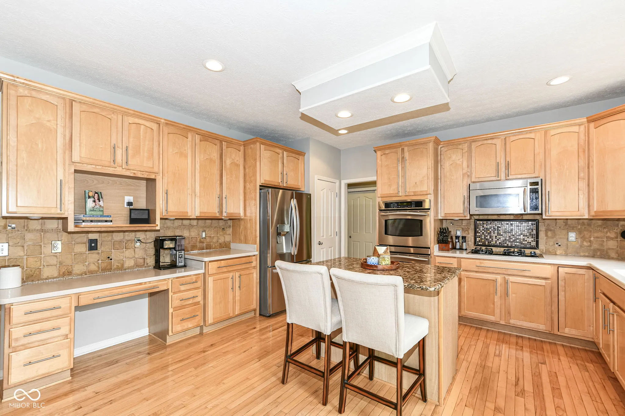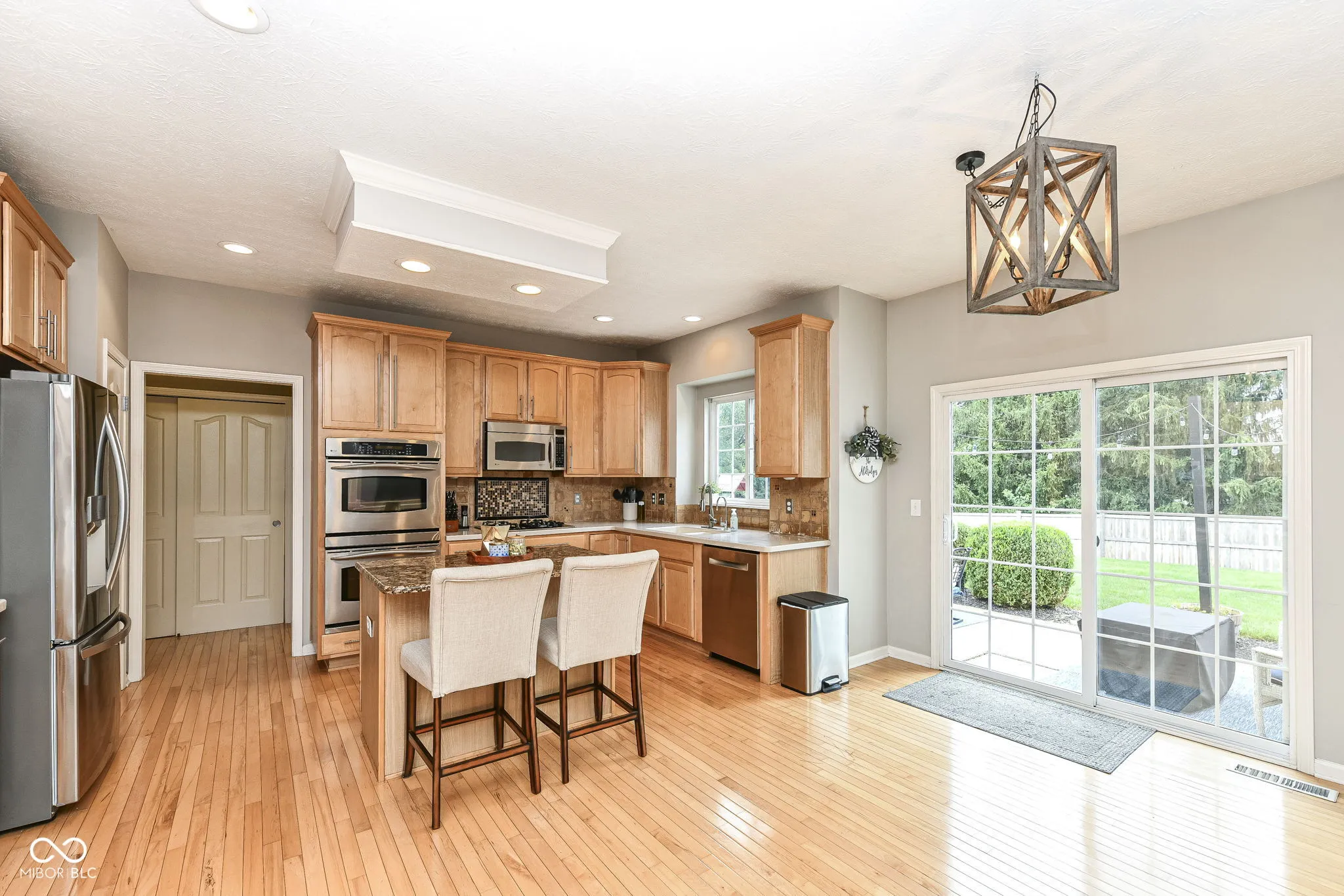 Beautiful floor plan with tons of large windows and natural light! Two-story entry with crown molding, hardwood floors on main level, dining rm, dedicated office w/french doors. Gorgeous two-story great rm with cathedral ceilings & fireplace. Open to the spacious kitchen w/gas cooktop, double ovens, 2022 Boesch Dishwasher, 2021 Refrigerator, granite island. Large master suite w/vaulted ceiling, 2 walk-in closets, tiled bath w/double vanity, separate jacuzzi tub & shower, walk-in closet. Brand NEW HVAC in 2023! Finished basement w/9′ ceiling & recessed lights has fun for everyone: theater area w/projector, projector screen and sound system. Bar w/fridge & kegerator, billiards rm and full bath! Pool table stays. Big, private backyard, patio, newer fence. 3-Car garage. Hook-ups available for hot tub. Roof 6 yrs old. Move-in ready!