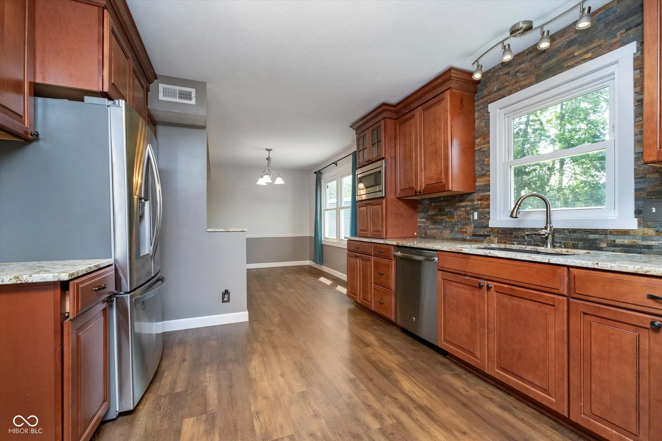 Welcome to this wonderfully laid out and spacious home in Misty Lake! Main level features a living room with lots of natural light, formal dining space that opens into the kitchen. Beautiful custom, soft close cabinets are accompanied by granite countertops. All stainless steel appliances included and a breakfast bar provides additional dining and work space. Enjoy the second living area with gas fireplace perfect for those cozy winter nights. Half bath, laundry closet, and large 2-car garage round out the main level features. Upstairs you will find 3 ample sized bedrooms, a spacious primary suite with custom walk-in closet, plus a second, fully updated bathroom. Last but certainly not least is the HUGE fenced in backyard! With privacy fencing on 2 sides backed up to the treeline (with a pond just beyond) this yard is truly a private oasis perfect for any outdoor activities you may need room for. Concrete patio provides the perfect space for grilling. Lovely, established neighborhood with mature trees and wonderful, long term neighbors. Ready for someone new to move in and make it their own! Roof, HVAC, water heater, and owned water softener all less than 10 years old. Dryer vent cleaned out in 2024. Air duct cleaning in 2022.