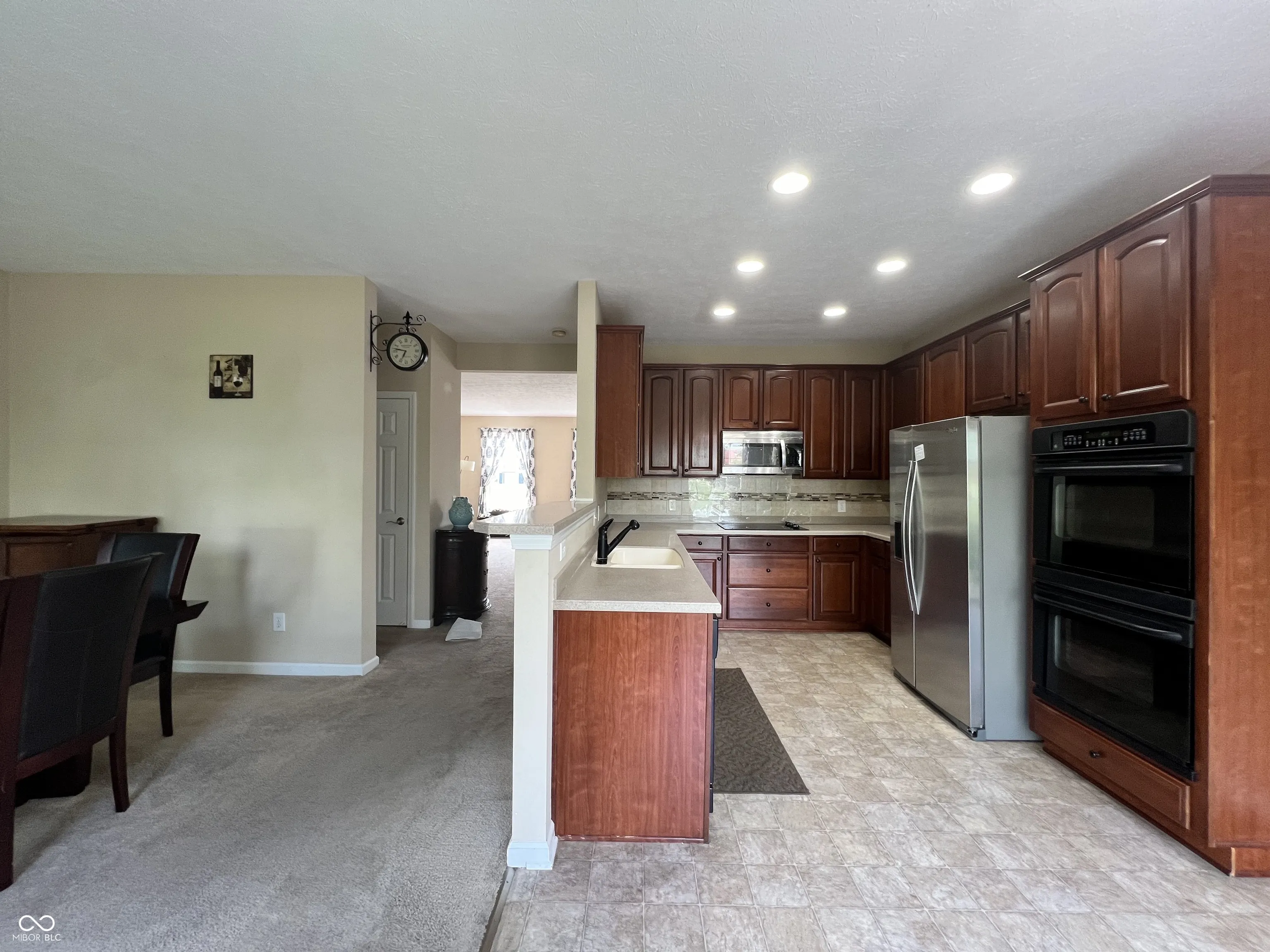 Ideally located between Castleton and Fishers, this 3-bedroom, 3.5-bath townhome offers three levels of spacious and stylish living with easy access to I-69 and nearby shopping. Inside, the home features elegant design elements, including expansive rooms, high ceilings, and contemporary finishes. On the second level, you’ll find a large main living area. The kitchen is perfect for entertaining, boasting ample storage, and built-in double ovens. This level also includes a dining room with a balcony overlooking the community greenspace. A convenient half bath is also on this floor. The third floor houses a well-placed laundry room (washer and dryer included) and two large bedroom suites, each with walk-in closets and private retreats. The third bedroom, located on the third floor, offers versatile usage as an extra bedroom, home office, or flexible space. With an attached 2-car garage with additional storage, this townhome in the tranquil Berkely Place community is an ideal choice for those seeking a blend of style, comfort, and convenience.