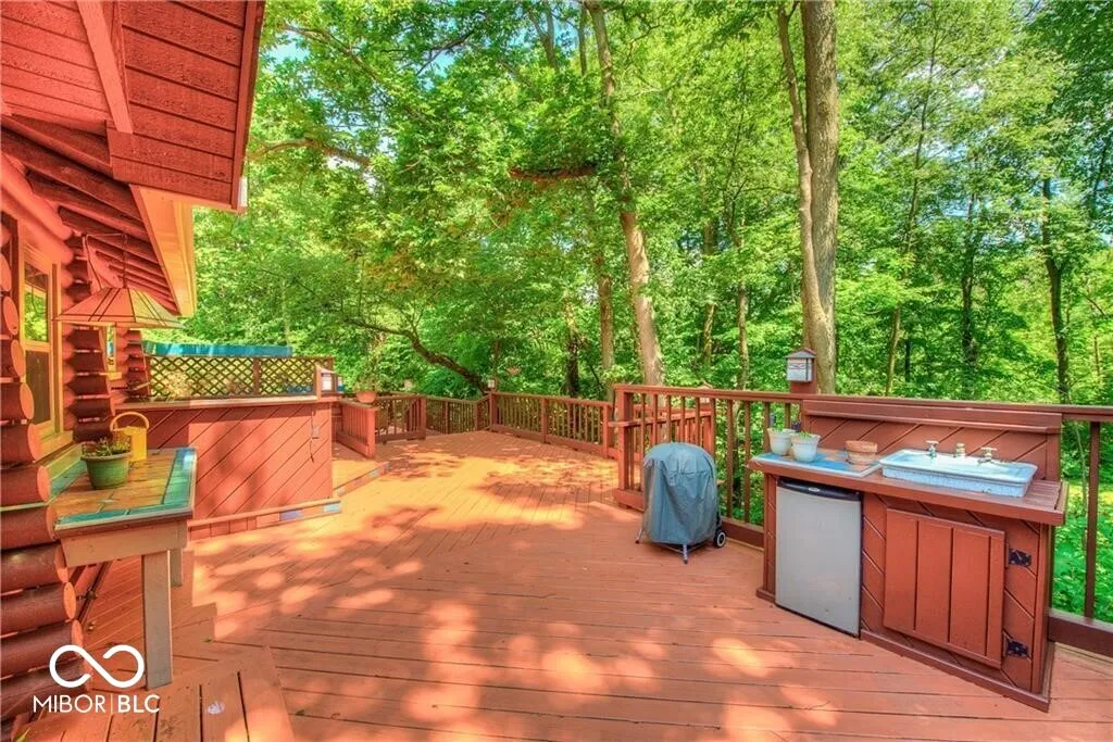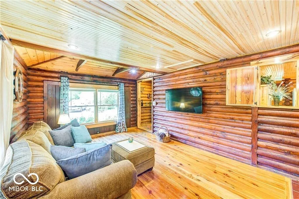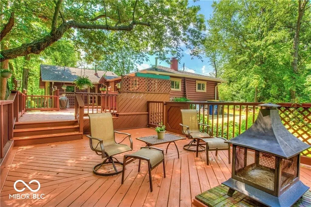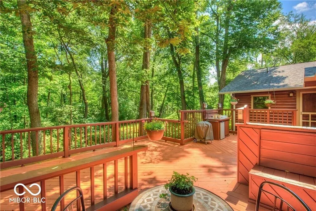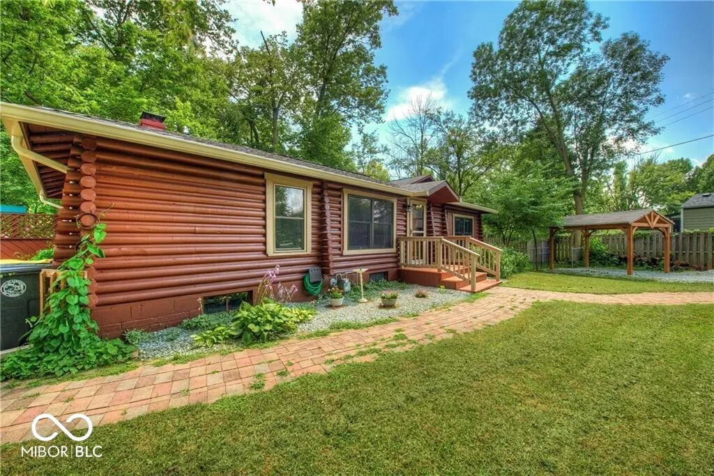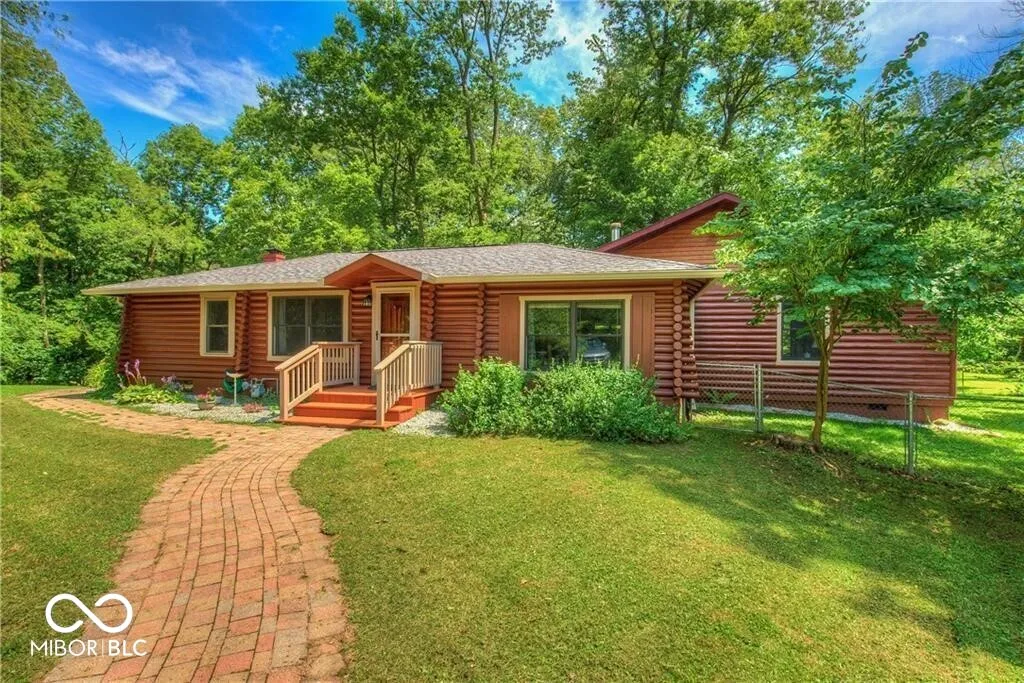 An absolute stunning, unique and rare find in Marion County! An authentic 1954 Log Cabin ranch pristinely nestled on 1.25 wooded acres with a lazy/meandering creek provides the perfect setting for peace and tranquility. Come see what nature has to offer-located less than 2 minutes from Ft Harrison State Park your multi-level deck offers backyard glimpses of the myriads of wildlife, freshness of greenery and a picture-perfect view of nature! Custom Crafted logs and Cedar siding enhances the privacy of rustic country living! Interior features include knotty pine craftmanship, generous kitchen with breakfast bar, all appliances, cabinets with deep drawers, vaulted ceilings, wood burning fireplace, and custom-built ins. The Primary Suite offers garden tub, stand up shower, huge walk-in closet and more built ins. The split floor plan offers two additional cabin bedrooms, office/den and plenty of natural light! This beauty has been updated to include 2 HVAC and H20 systems, 200-amp electrical service, Radon Mitigation and updated plumbing. No other property offers authentic “Rustic Cabin Living” with easier access to downtown Indy, I-465, Ft Harrison State Park, Lawrence Central/Belzer Middle School, parks/recreation, shopping & entertainment than this stunning, unique and rare find in Marion County! Come see what beautiful craftsmanship combined with peace, tranquility and a picture-perfect view of nature has to offer!