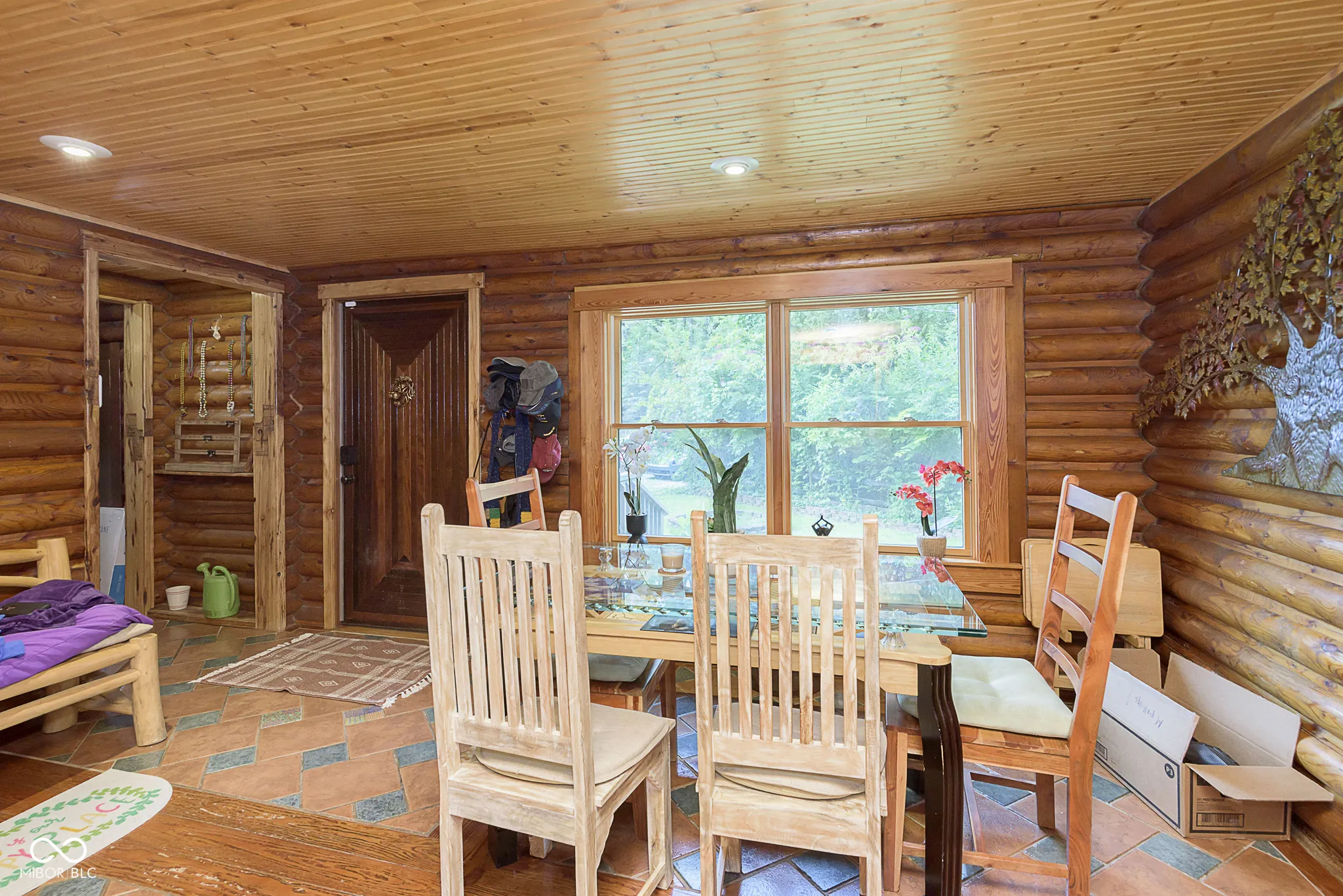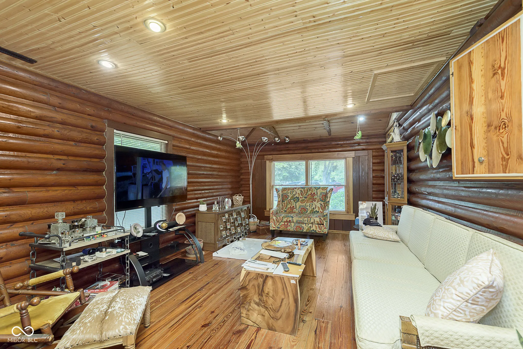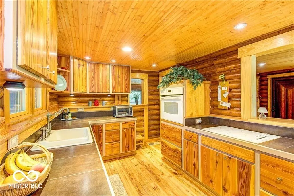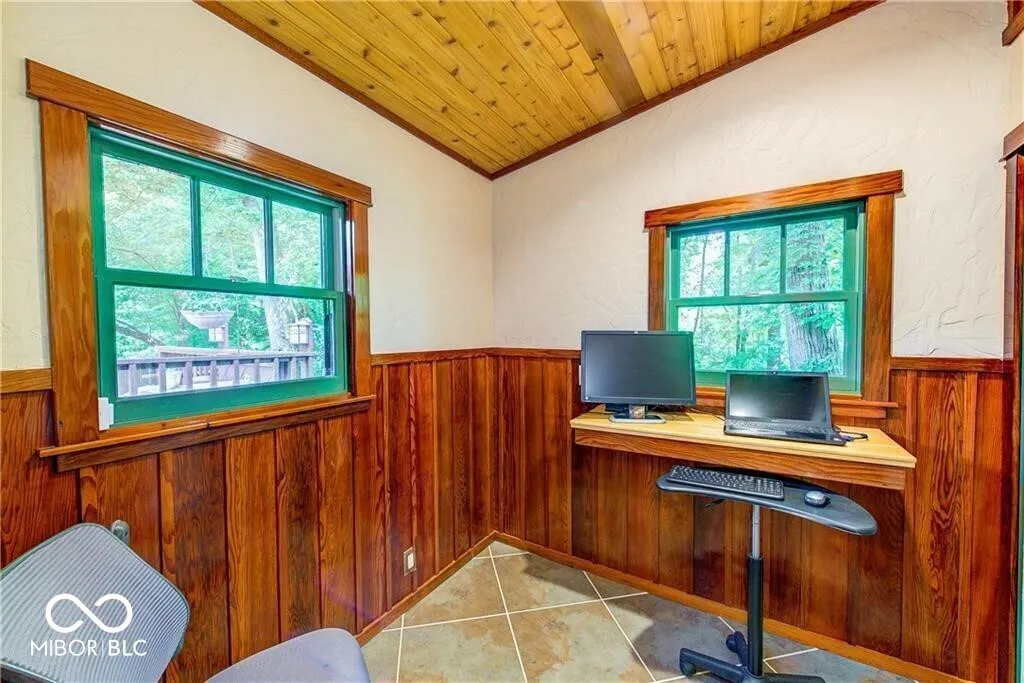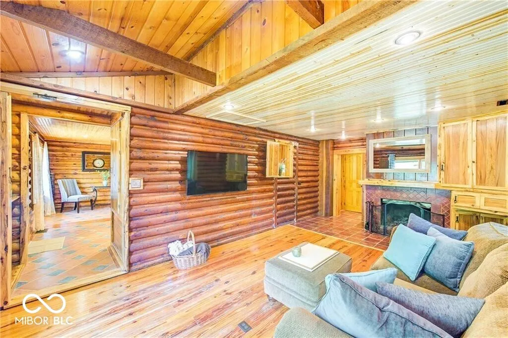 An absolute stunning, unique and rare find in Marion County! An authentic 1954 Log Cabin ranch pristinely nestled on 1.25 wooded acres with a lazy/meandering creek provides the perfect setting for peace and tranquility. Come see what nature has to offer-located less than 2 minutes from Ft Harrison State Park your multi-level deck offers backyard glimpses of the myriads of wildlife, freshness of greenery and a picture-perfect view of nature! Custom Crafted logs and Cedar siding enhances the privacy of rustic country living! Interior features include knotty pine craftmanship, generous kitchen with breakfast bar, all appliances, cabinets with deep drawers, vaulted ceilings, wood burning fireplace, and custom-built ins. The Primary Suite offers garden tub, stand up shower, huge walk-in closet and more built ins. The split floor plan offers two additional cabin bedrooms, office/den and plenty of natural light! This beauty has been updated to include 2 HVAC and H20 systems, 200-amp electrical service, Radon Mitigation and updated plumbing. No other property offers authentic “Rustic Cabin Living” with easier access to downtown Indy, I-465, Ft Harrison State Park, Lawrence Central/Belzer Middle School, parks/recreation, shopping & entertainment than this stunning, unique and rare find in Marion County! Come see what beautiful craftsmanship combined with peace, tranquility and a picture-perfect view of nature has to offer!