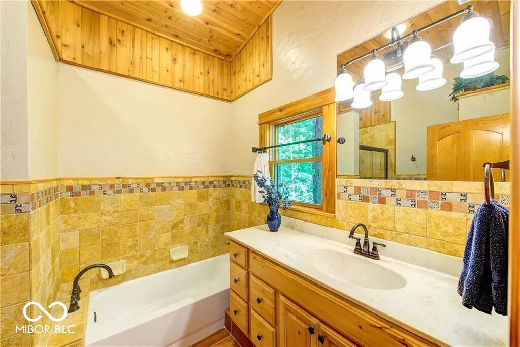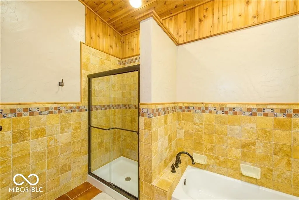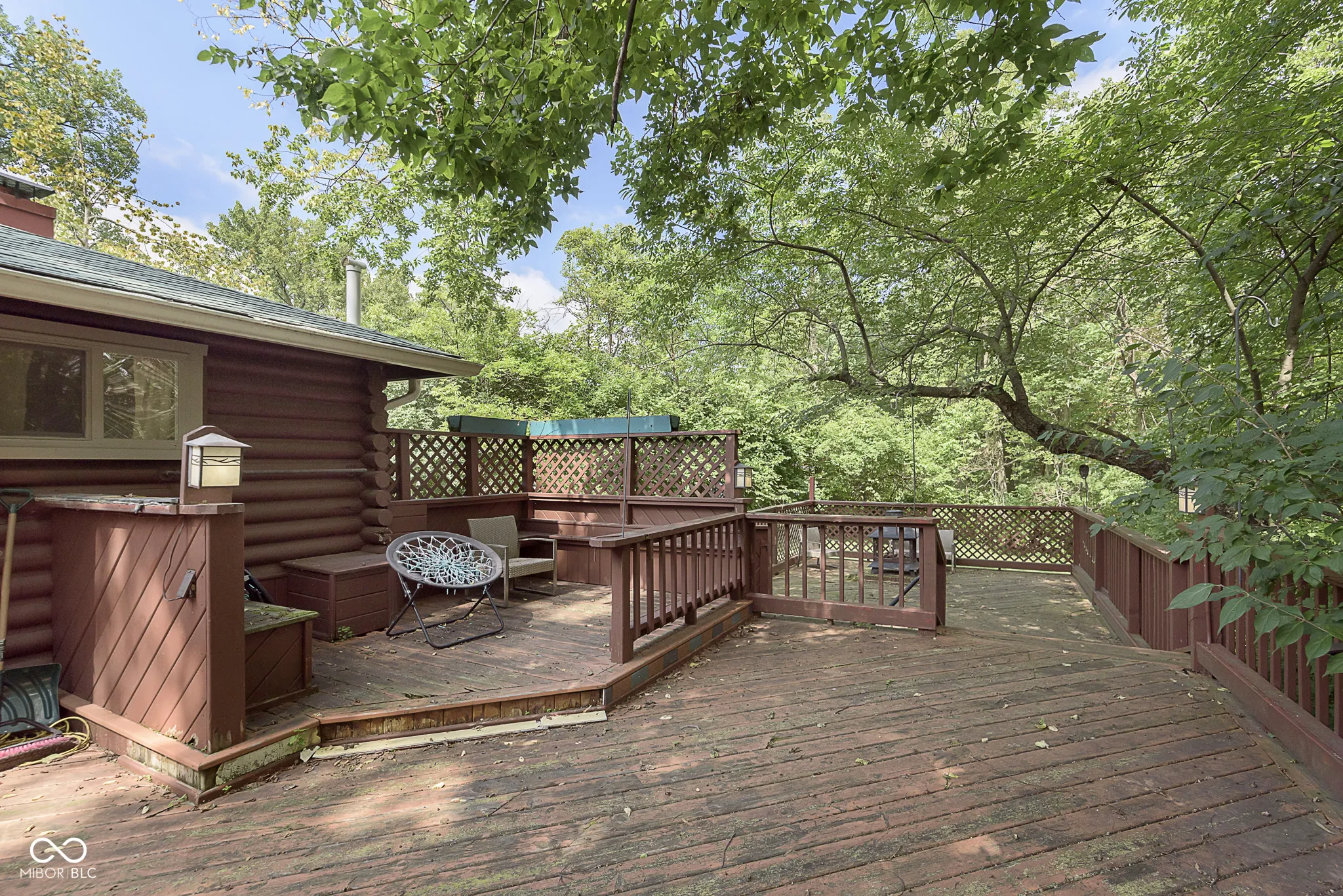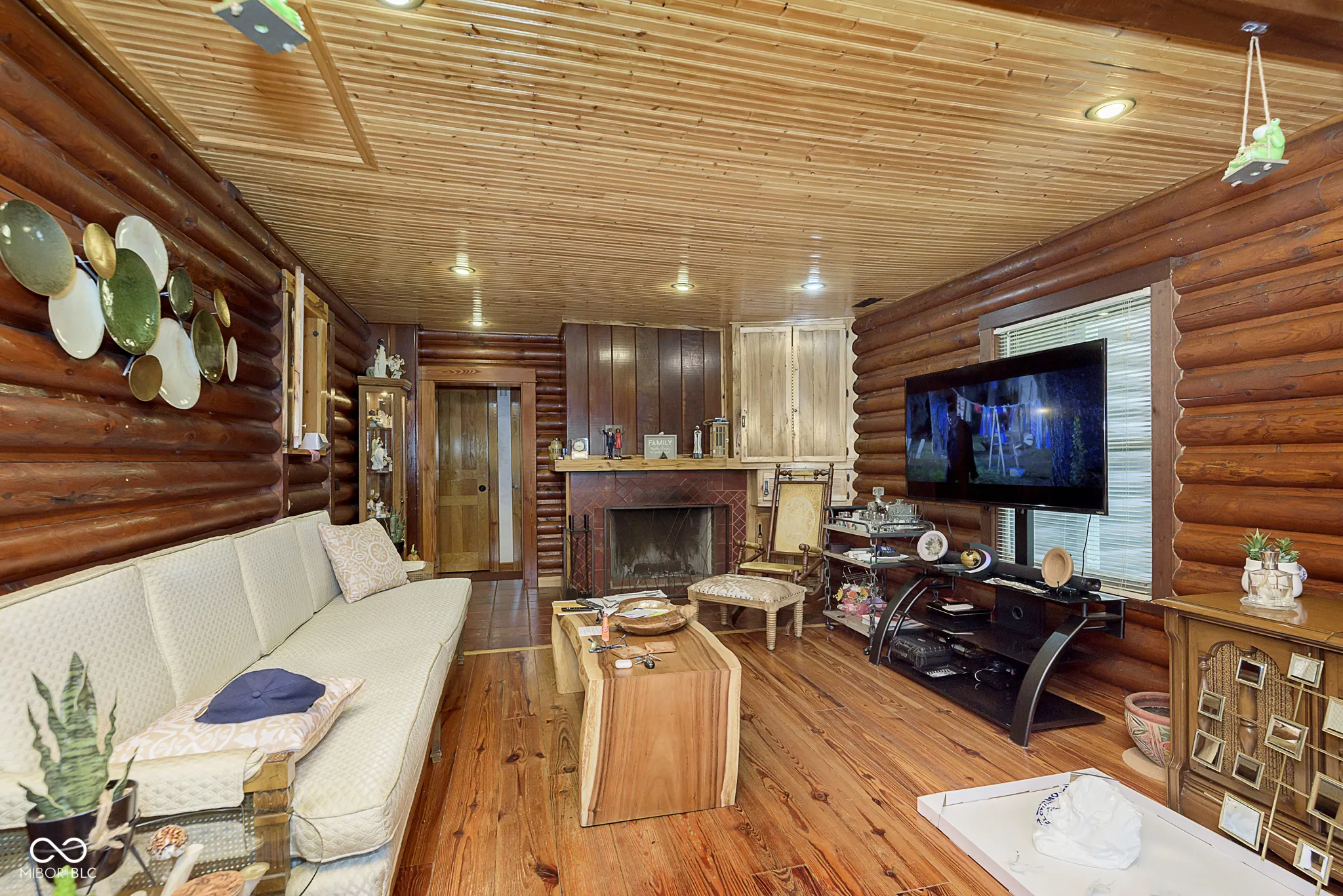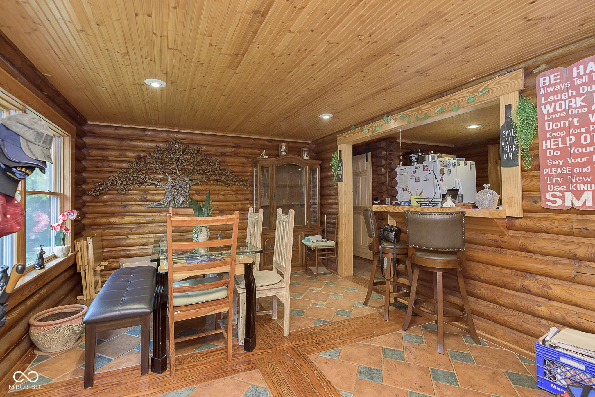 An absolute stunning, unique and rare find in Marion County! An authentic 1954 Log Cabin ranch pristinely nestled on 1.25 wooded acres with a lazy/meandering creek provides the perfect setting for peace and tranquility. Come see what nature has to offer-located less than 2 minutes from Ft Harrison State Park your multi-level deck offers backyard glimpses of the myriads of wildlife, freshness of greenery and a picture-perfect view of nature! Custom Crafted logs and Cedar siding enhances the privacy of rustic country living! Interior features include knotty pine craftmanship, generous kitchen with breakfast bar, all appliances, cabinets with deep drawers, vaulted ceilings, wood burning fireplace, and custom-built ins. The Primary Suite offers garden tub, stand up shower, huge walk-in closet and more built ins. The split floor plan offers two additional cabin bedrooms, office/den and plenty of natural light! This beauty has been updated to include 2 HVAC and H20 systems, 200-amp electrical service, Radon Mitigation and updated plumbing. No other property offers authentic “Rustic Cabin Living” with easier access to downtown Indy, I-465, Ft Harrison State Park, Lawrence Central/Belzer Middle School, parks/recreation, shopping & entertainment than this stunning, unique and rare find in Marion County! Come see what beautiful craftsmanship combined with peace, tranquility and a picture-perfect view of nature has to offer!