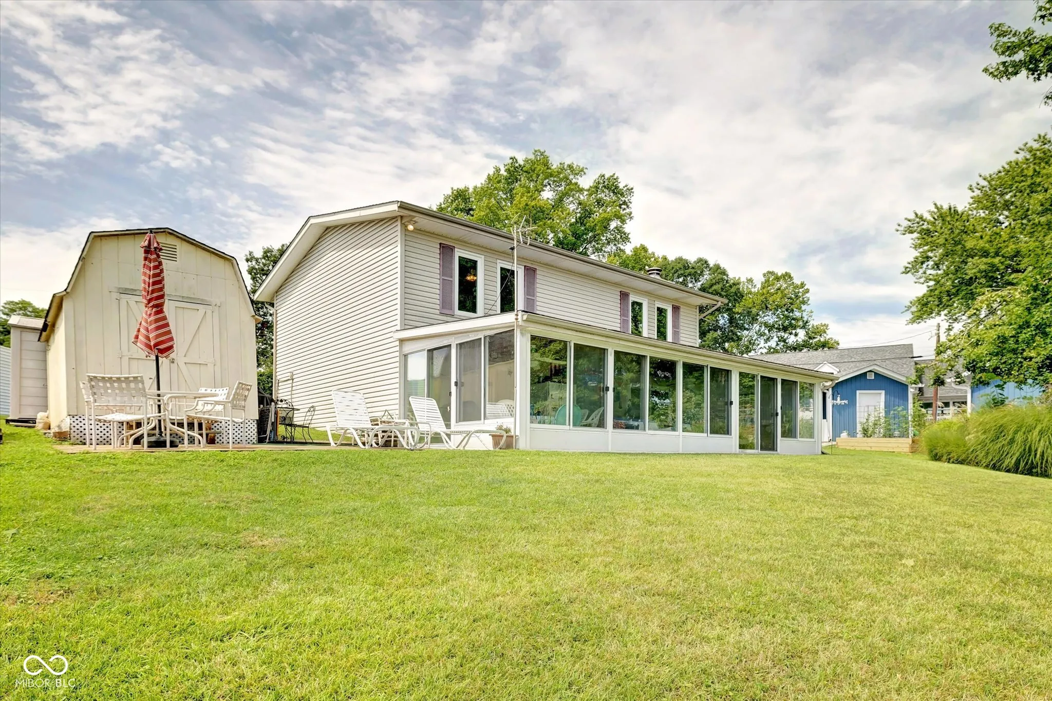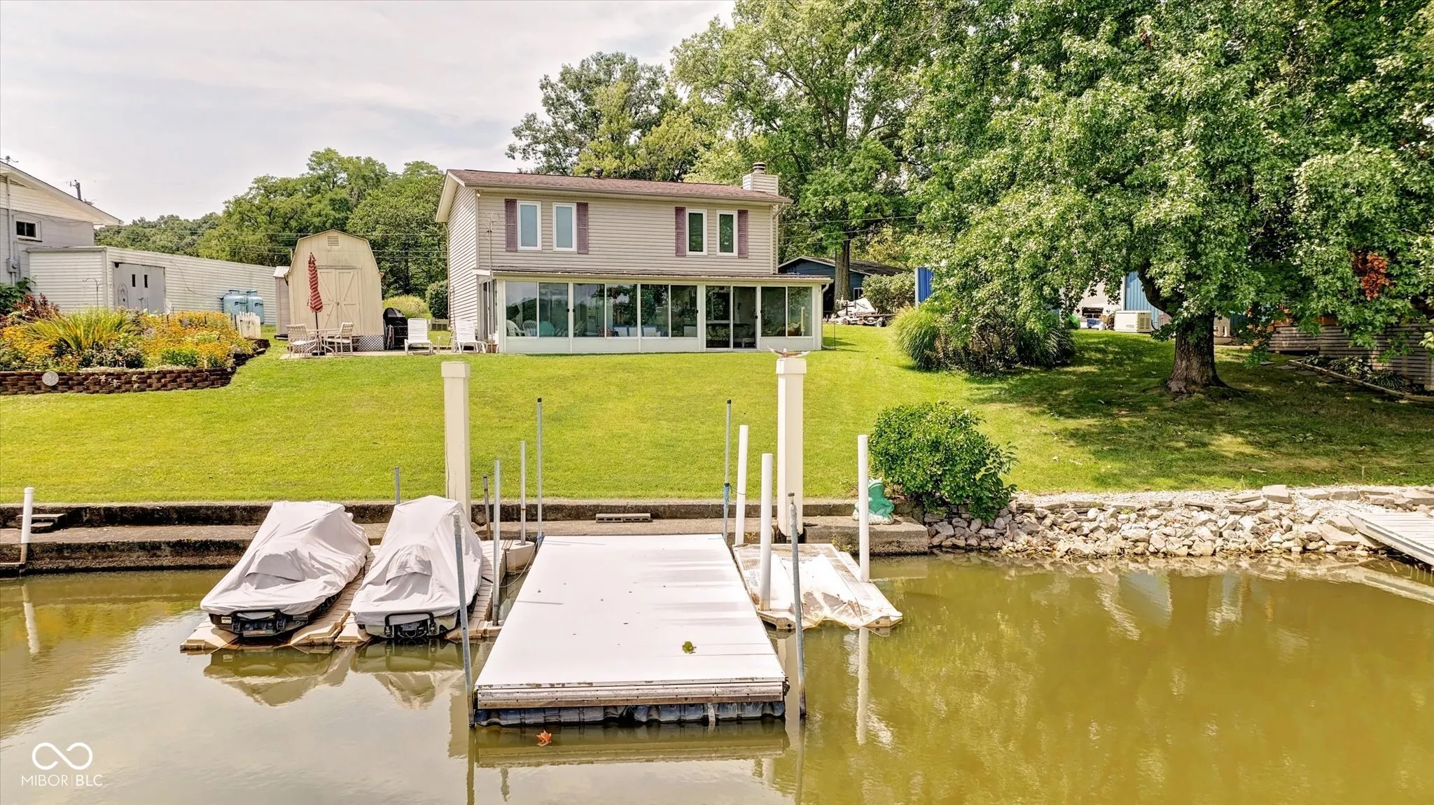 Walk right out to the water from this 3 bed/2bath lake home. Your property runs right down to the water and your 2 docks. Two of the upstairs bedrooms have lake views. 2 sheds to store all your lake toys. Large kitchen with a bar, and a dining space. Enjoy the glassed enclosed patio or the side sun patio.