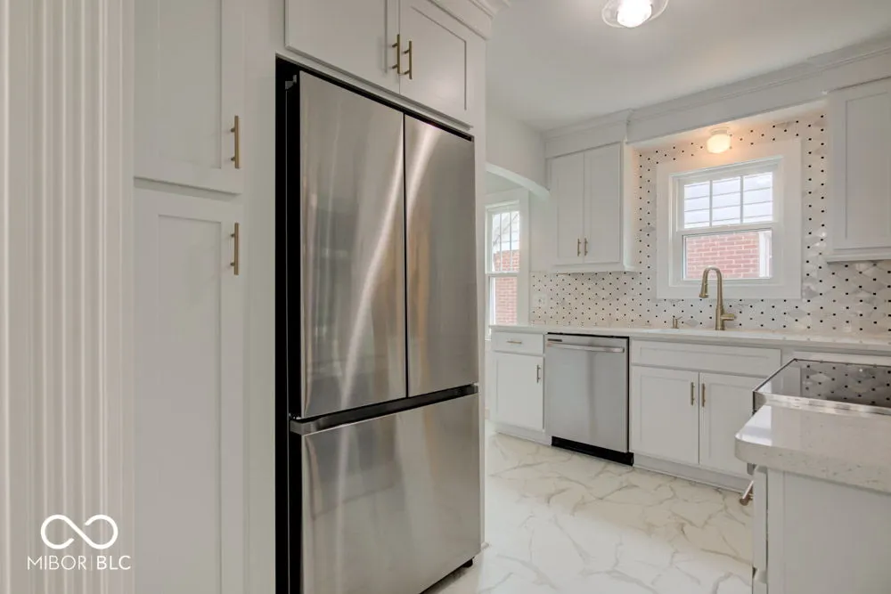 Must see stunning brick Justus built home in Irvington. This home has undergone a highly detailed remodel with special attention given to preserve the original vintage charm. Improvements include a redesigned kitchen with high-end cabinets, marble backsplash, quartz countertops, all new Samsung stainless steel appliances, original built-ins, and LPV flooring. The house boasts refinished original hardwood floors throughout. The living room is a showstopper with an electric heating fireplace and wall sconces that add elegance and ambience. Master bedroom features Wainscoting walls. Bathroom has been renovated to create a light and airy space. Most light fixtures are vintage art deco. Upgrades have been made to electrical, plumbing, and gas lines. All new energy efficient windows upstairs and new glass block windows in the basement. Clean 2 car detached garage with opener. Walking distance to Ellenberger Park and the historic Steer-In. Close proximity to downtown Irvington.