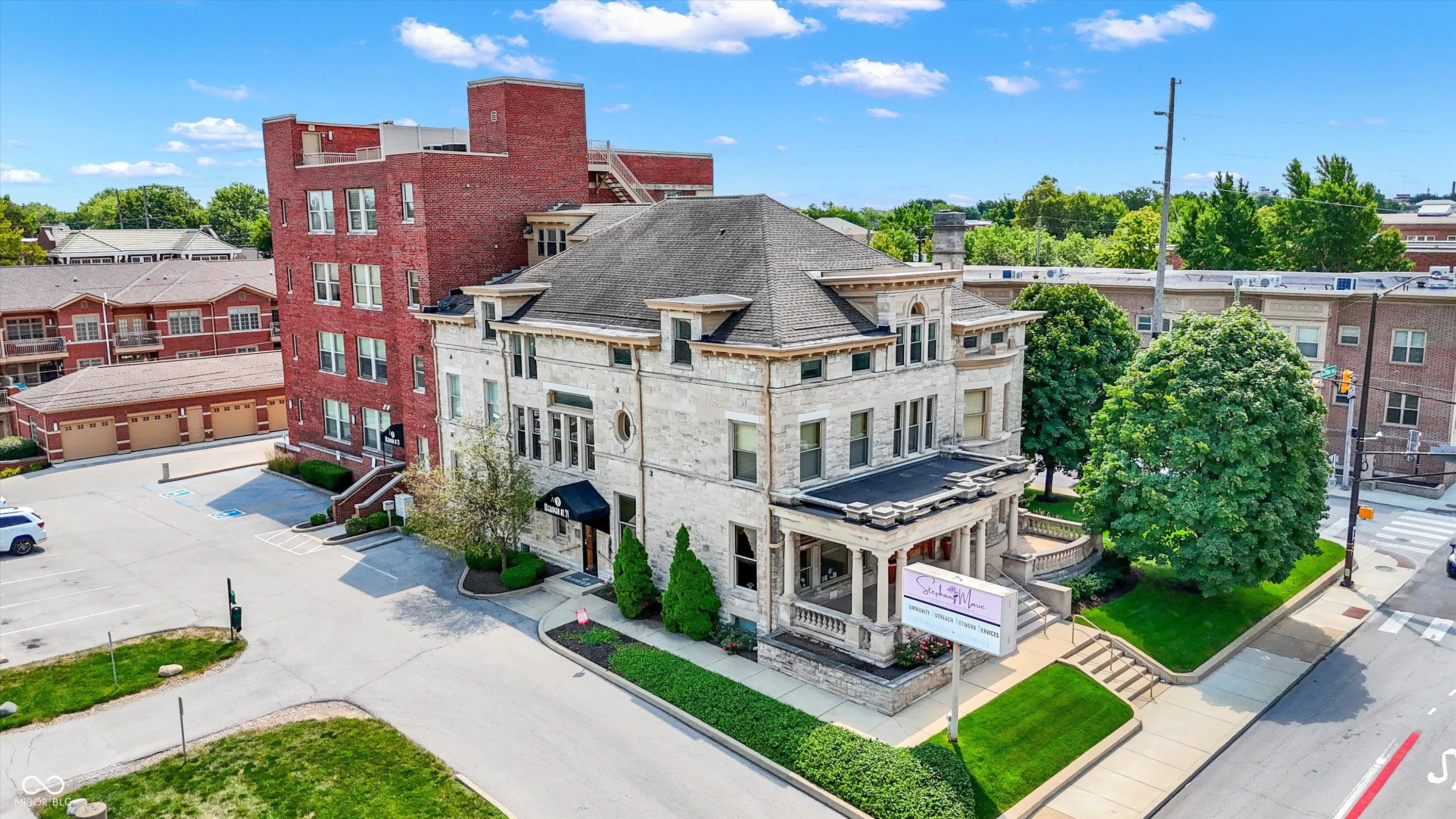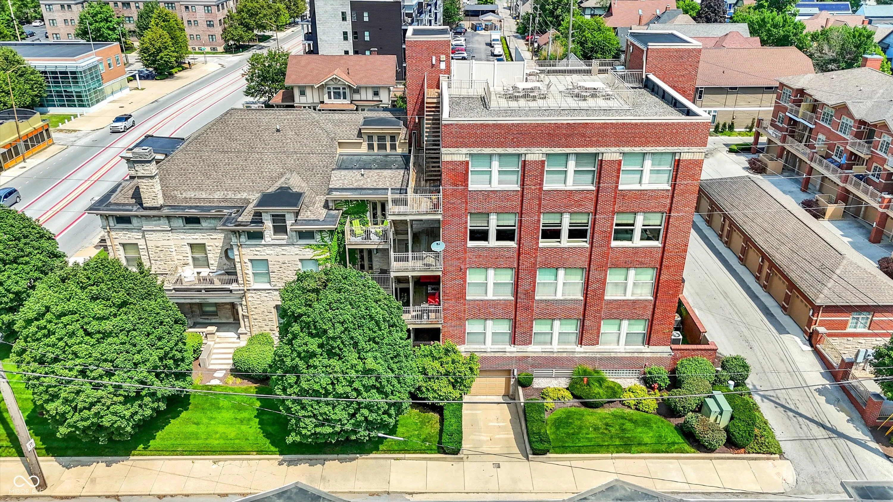 Looking for something different? Something unique? Discover the grandeur of this historic Herron Morton gem in downtown Indianapolis! This former ballroom, once part of the iconic Rink Mansion, has been tastefully transformed into a stunning 2-bedroom, 2.5-bathroom condo spanning 3,128 square feet. With its structural beamed ceilings, wood floors, and a cozy gas fireplace, this place exudes character and charm. The updated kitchen opens up to the main living space, providing the perfect setting for entertaining guests. Unwind in the lofted den or take in the stunning views of downtown Indy from your private balcony or the shared rooftop deck. The primary ensuite offers ultimate relaxation with its separate tub and shower, double sinks, and a spacious walk-in closet. You’ll have ample space for your vehicles and belongings with the large two-car garage and separate storage room. A stroll to the very popular 22nd St corridor and close to IU Health, Ezkenazi and Salesforce. Close to the best of downtown. Don’t miss out on this truly remarkable piece of Indy history!