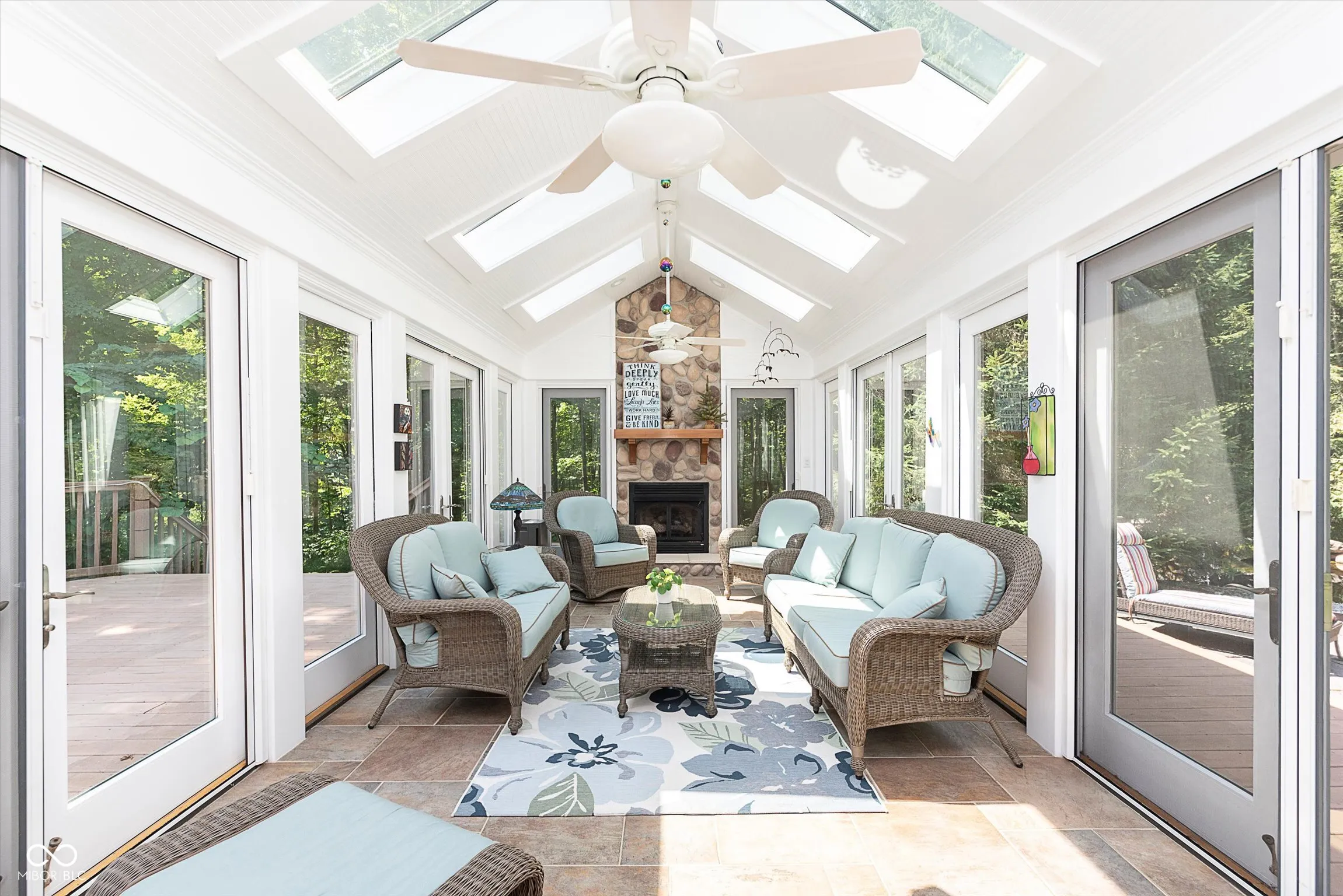 This is the one! Set in the tranquil Woodacre neighborhood near Eagle Creek Park, this custom, contemporary ranch home is situated on an acre of green, wooded landscape. The home spans over 3000sf and boasts living spaces flush with natural light, including a gorgeous sun room to enjoy almost year-round. The great room features hardwood floors + vaulted ceilings + recessed LED lighting + wet bar + wine fridge + fireplace…looking out to park-like scenery. The home cook will appreciate the kitchen, complete with a center island + prep sink + granite countertops + cabinets galore. The primary suite is a retreat featuring skylights + heated floors + walk-in tile shower and tub + reading nook as well as separate entrance onto a sprawling composite deck and hot tub! Don’t forget the upstairs bonus room, which makes for the perfect, private office or game & entertainment area. You’ll love the location, convenient to highways, shopping, dining, schools, and the city’s largest park, where walking & biking trails are just across the street…It’s a must see!