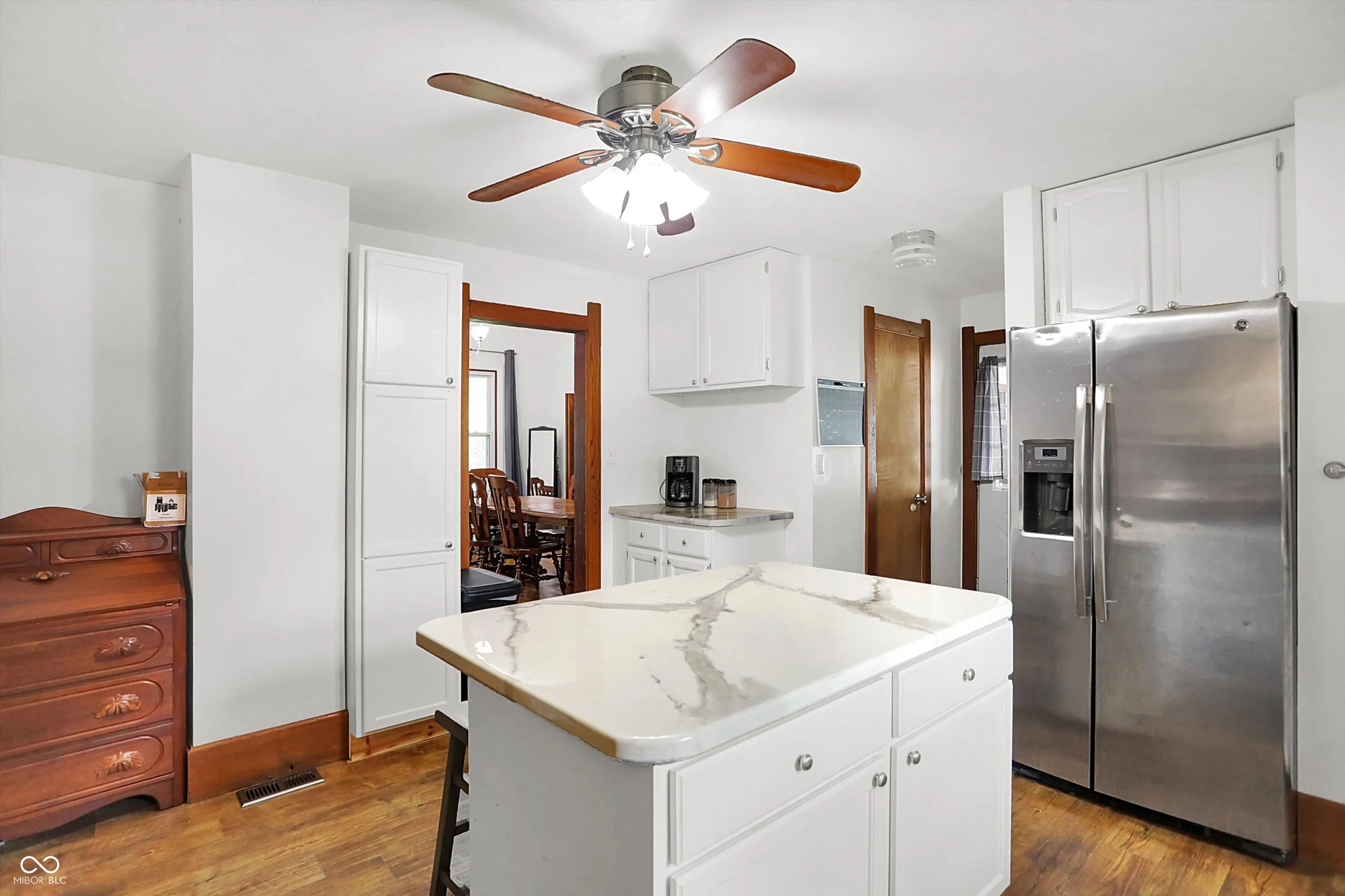 Discover the charm of rural living in this 3-bedroom, 1- bath home set on a gorgeous, peaceful and well-located 1.21 acre lot in Clayton. The interior features soaring ceilings, hardwood floor and large windows, giving an open and airy feel. The updated kitchen features a large center island, newer cabinets and walk-in pantry. The spacious attic is ready for your finishing touches and provides an excellent opportunity for expansion. The massive 3+ car detached garage with pneumatic lift is a standout feature, providing ample parking and workspace, complete with a bar and additional bath, awaiting your finishing touches. Enjoy the tranquility of rural living, while being a short drive to town amenities. Make this your oasis today!