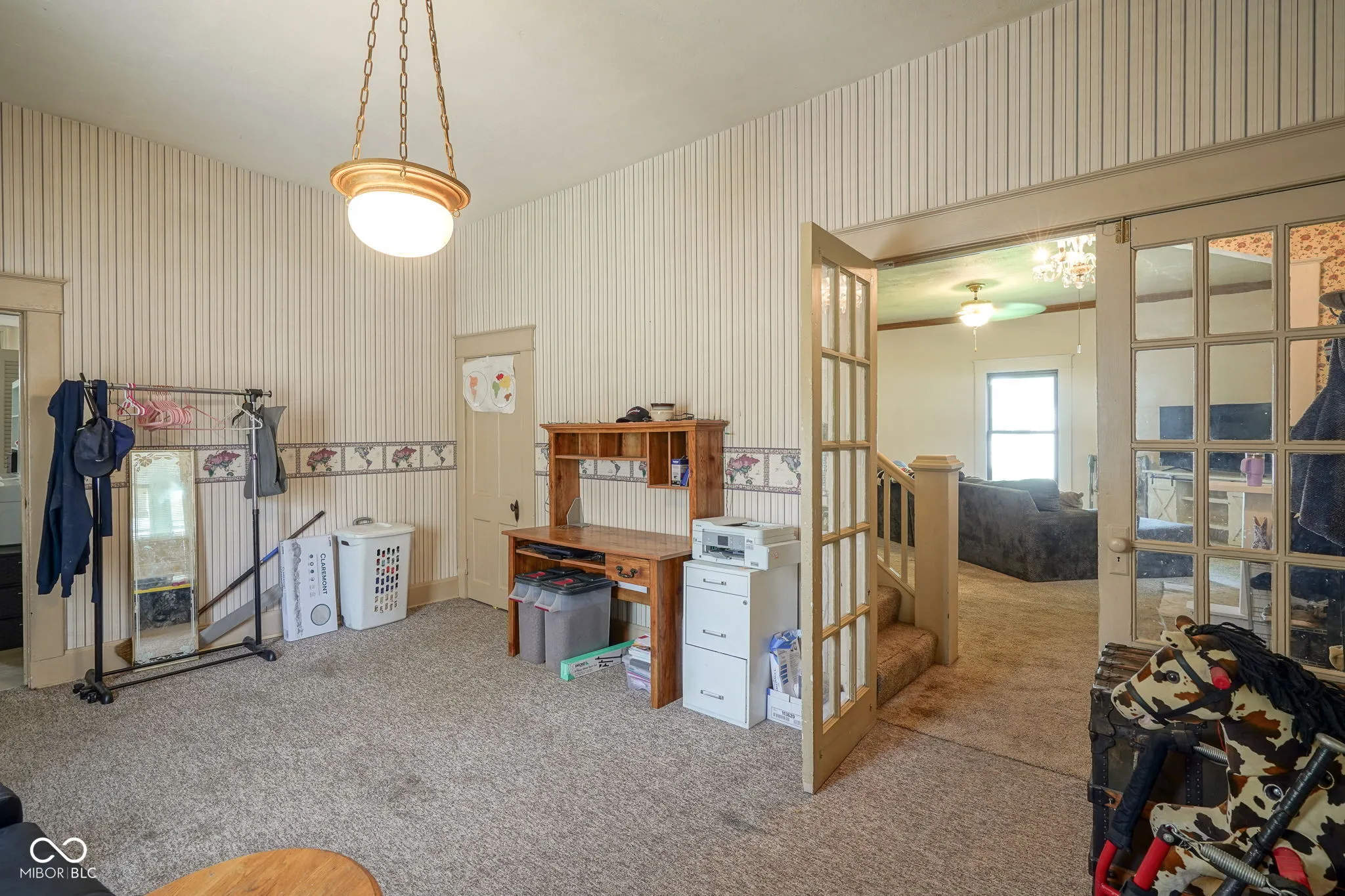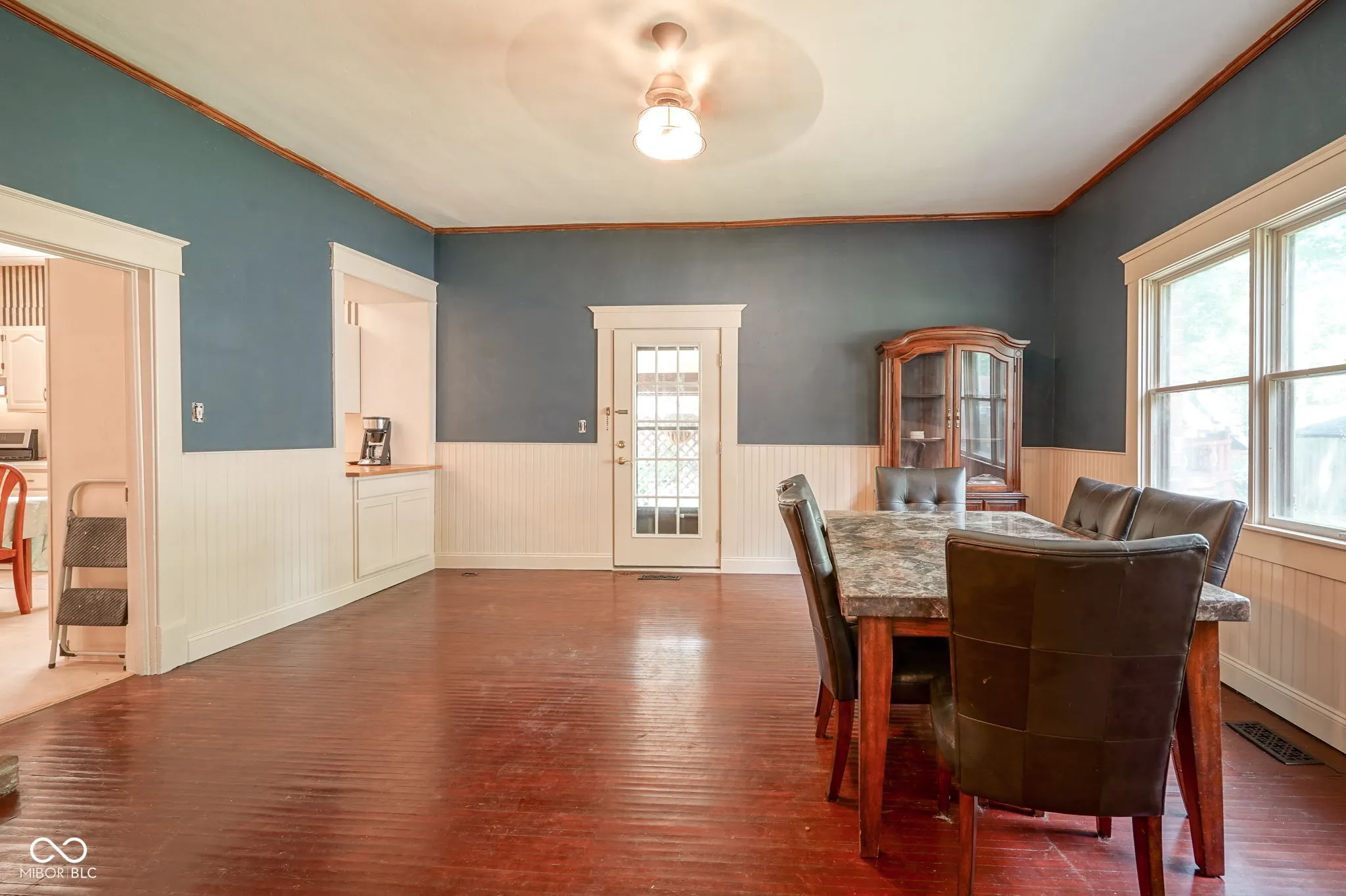 Welcome to this beautifully preserved 1890s single-family home, where vintage charm meets contemporary comfort. Nestled on a .38-acre lot, this residence offers over 2,800 finished square feet of cozy and spacious living, perfect for both relaxation and entertaining. Step inside to discover a harmonious blend of vintage elegance and modern amenities. The home features three bedrooms and two full bathrooms, one of which has just been fully remodeled from the studs, ensuring ample space for family and guests. Enjoy the beauty of original hardwood floors that have been lovingly refinished, complemented by striking 9-foot ceilings that enhance the sense of grandeur throughout. The heart of the home, the eat-in kitchen, boasts brand-new vinyl plank flooring and an adorable coffee bar, making it a delightful space for culinary adventures. The adjacent laundry room and bathroom have also been updated with stylish new vinyl plank flooring. Relax and unwind in the inviting three-season porch, or step outside to the back patio, where you’ll find a partially covered area with beautiful brickwork-ideal for outdoor dining or lounging. The property is fully fenced with a privacy fence, offering a secure and serene retreat. Additional features include a detached brick garage and a beautiful, spacious yard adorned with endearing brick pathways, perfect for gardening or play. Located in the charming community of Crawfordsville, this home combines historical charm with modern convenience, making it a truly unique find. Don’t miss the opportunity to own a piece of history with all the comforts of today. Schedule your visit to experience this exceptional home firsthand!