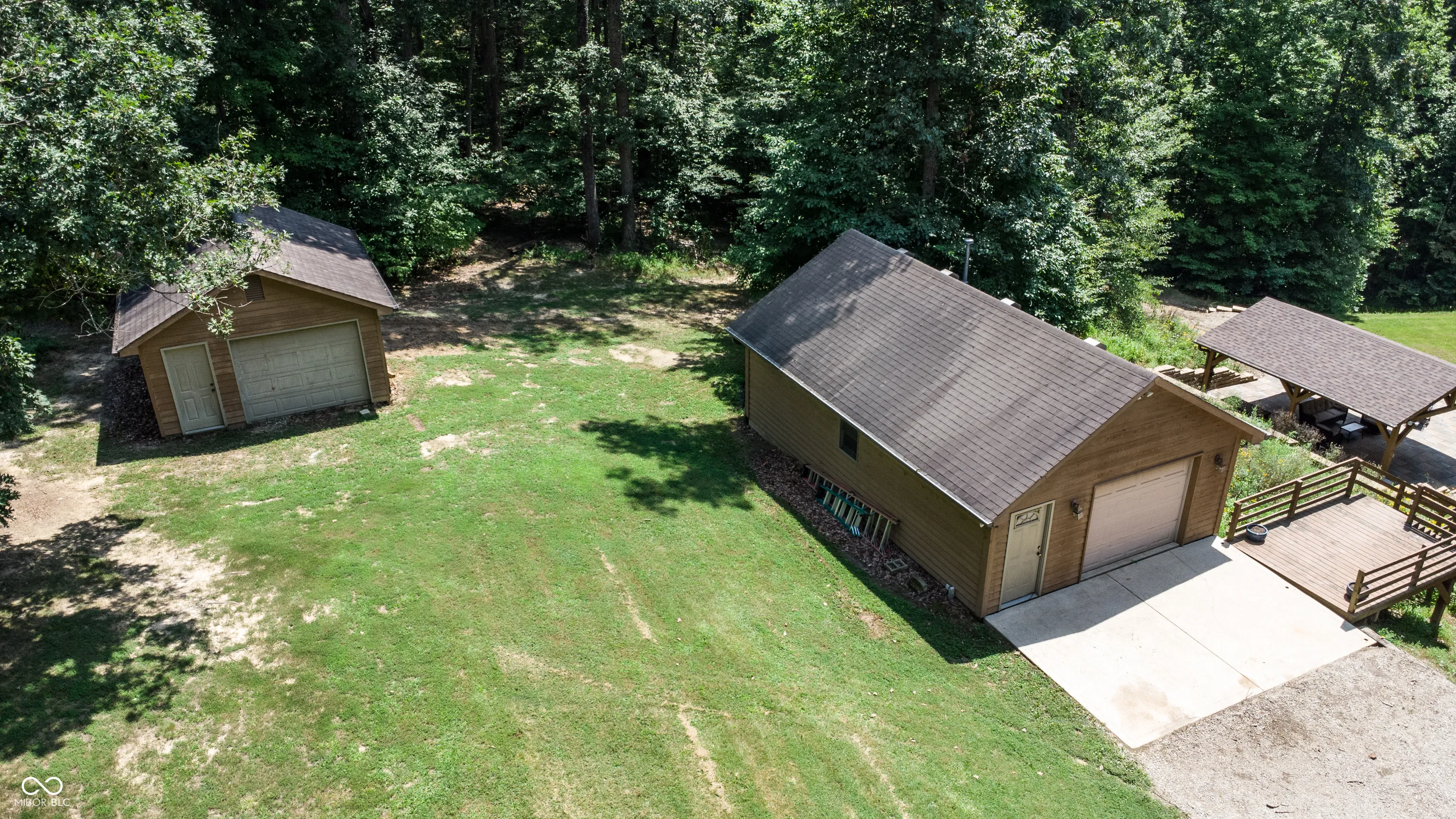 Escape to tranquility in this beautiful 3-BD, 2-BA home nestled on 3 parcels combined for over 10 acres in the heart of Brown County, IN. This stunning property offers the perfect blend of rustic charm and modern comforts, making it ideal for your new home or a retreat for those seeking peace and serenity. The open living area is filled with natural light and perfect for hanging out with family or hosting friends. The kitchen boasts modern appliances and ample counter space. From there you can walk out on to the large back deck and enjoy the outdoors while overlooking your very own pond! Perfect for fishing, relaxing, or just soaking up the views. Hosting a movie night or watching the big game on the weekend? You can do this in your own recently built outdoor pavilion down by the pond, complete with a built-in projector, screen, and bluetooth speakers. It’s the perfect spot for entertaining or unwinding by the water. In the mornings, step out onto your the screened in patio to enjoy your morning coffee. The big yard plus acreage is great for gardening, playing, hiking through the woods, or just enjoying the fresh country air. Need extra space for hobbies or projects? Check out the versatile outbuilding/shop, ideal for woodworking, crafting, or auto shop. Keep your tools and outdoor equipment organized in the convenient adjacent storage shed. The extra room on the main floor and the one in the basement make for a perfect office or place to read or watch TV. The home also includes a 2-car garage as well as plenty of storage space. This charming home has a little bit of everything. Peaceful and quiet, but still close to schools, parks, and local amenities. The entire house and decks around the house were painted in July 2024. Don’t miss out on making it yours! Call today to set up a showing and see for yourself.
