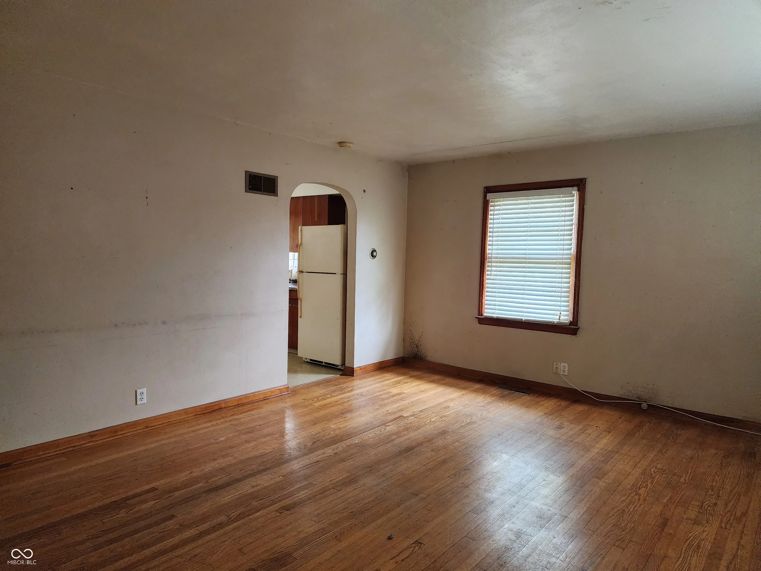 Cute 2 Bedroom, 1 bath home on Main St. in Meadowbrook area. Hardwood floors in living room, bedrooms and hall. Gas furnace, central A/C and gas water heater. Bath was previously updated w/ pedestal sink. Double lot! One-car detached gargae. Home has been a rental and needs TLC.