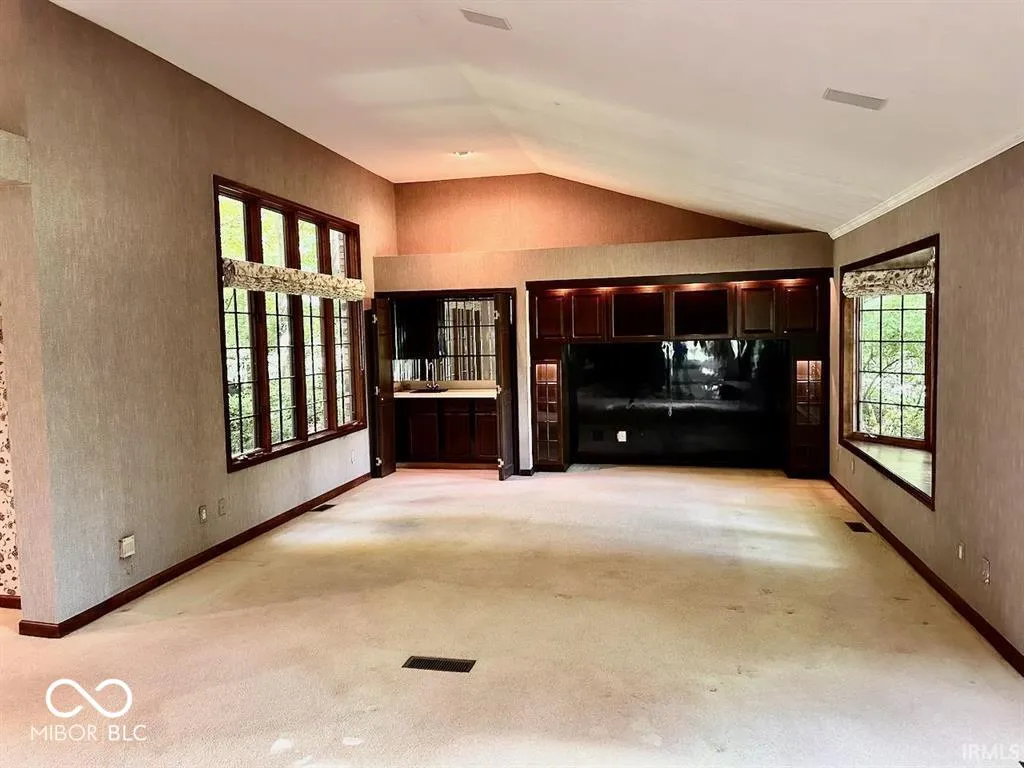 A rare Yorktown property with a double lot on the White River is now available! Featuring 2.65 AC and 265 lineal feet of river access, the home has 2,730 SF of finished space, 2-3 bedrooms (one being a den that could be a bedroom), 2 full baths, an enormous family room, dining room, finished sun room, double-sided fireplace, and 2-car attached garage with a large walk-up attic. Looking for more livable space? The attic could certainly be converted. The roof is only 8 yrs old. The circular concrete drive is newer. The main bathroom has a jetted tub, heated floors, and a sauna. The property is on city water, but there is also a well for irrigation. There’s a storage shed attached to the house too. The amazing lot is what this property is all about! The home is sold AS-IS. Immediate possession. Showings only through ShowingTime. Please get your own verification. Estate Sale. 2 Parcels with this property for sale: 1014326016000 and 1014326017000. NOTE: THE ACTUAL HOME IS NOT IN A FLOODPLAIN.
