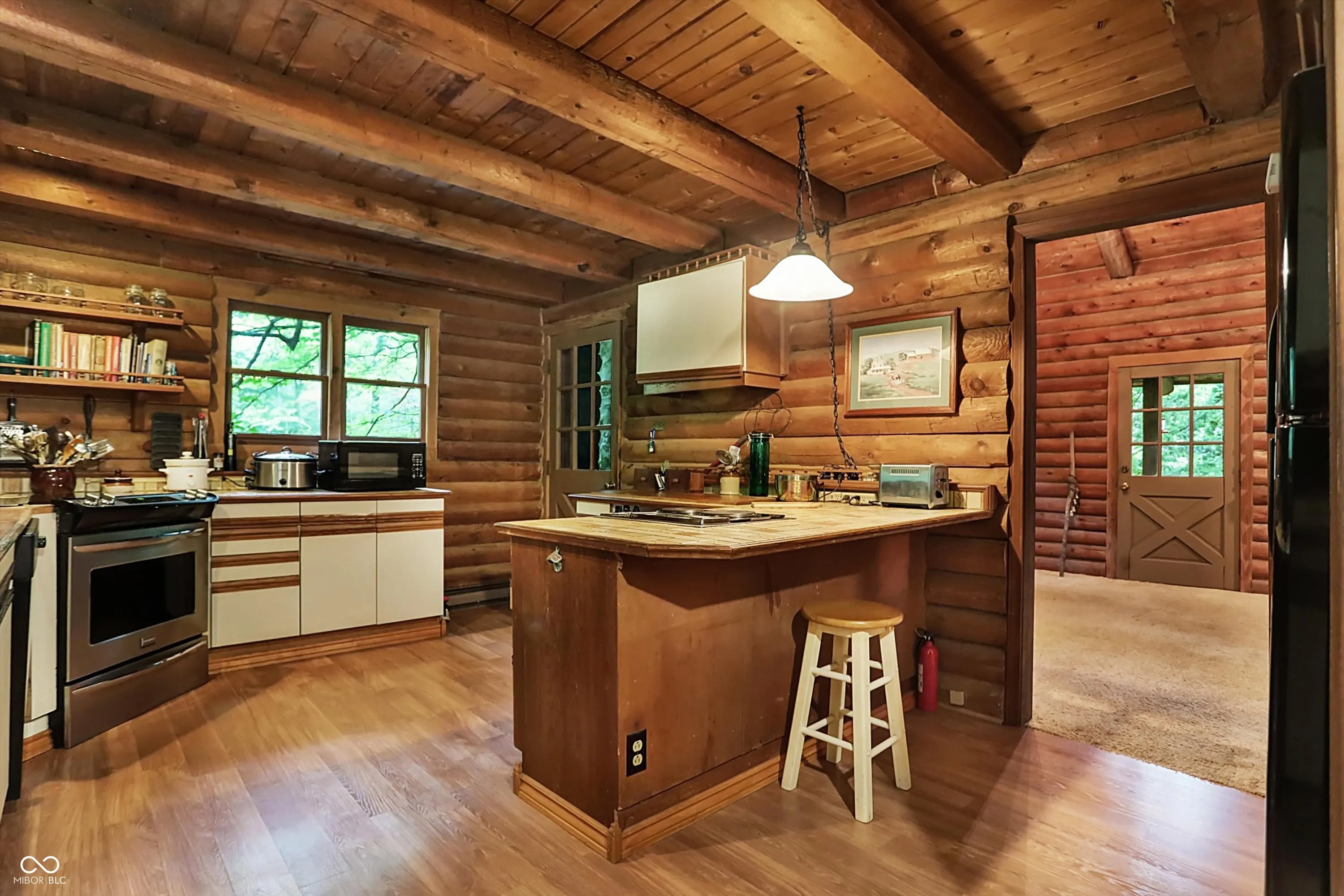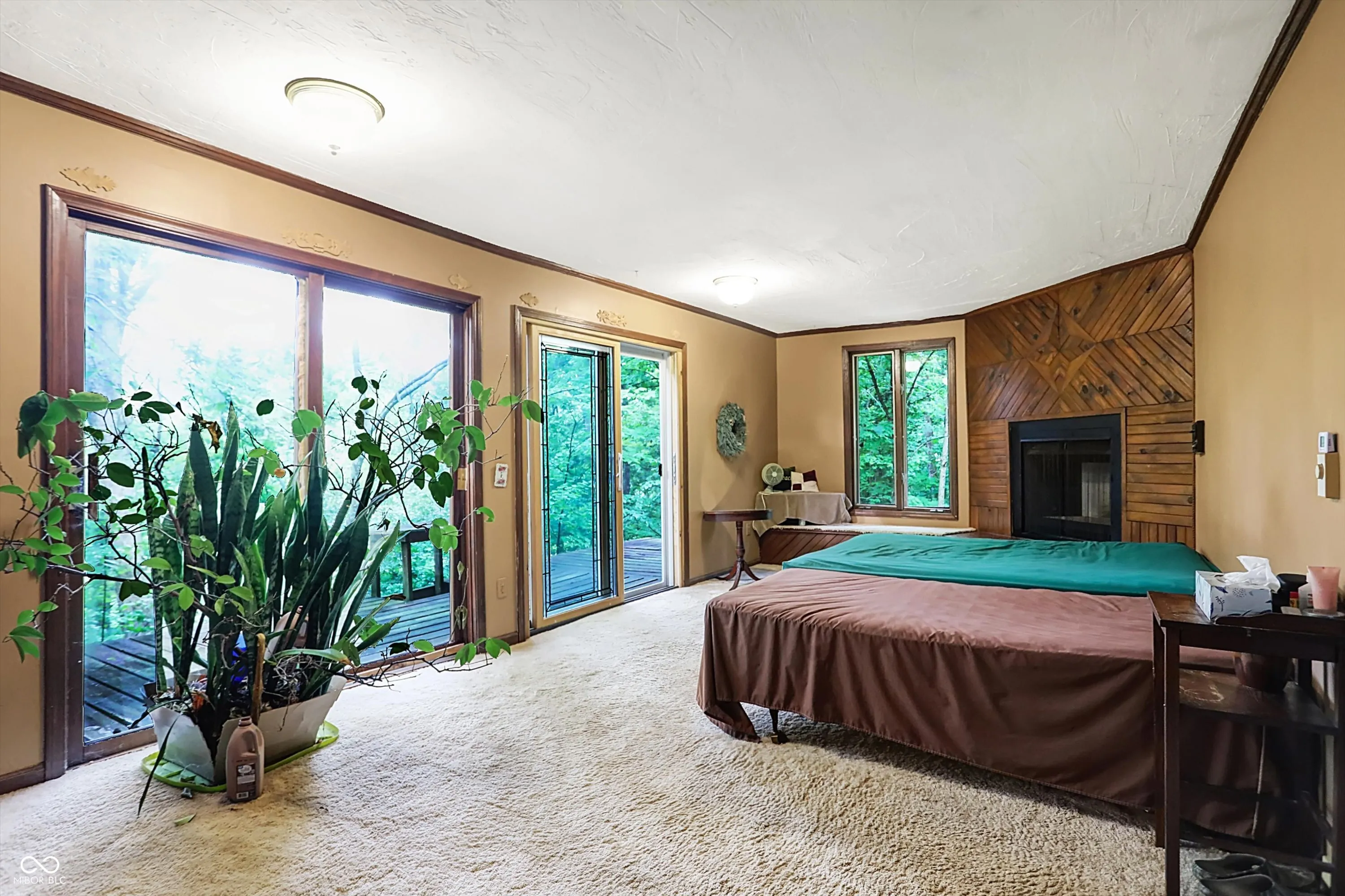 RARE GEM! This 4-bedroom, 3.5-bathroom home is situated on nearly 4.5 acres of picturesque land. As you enter, you’re welcomed into a grand living room with tall ceilings and a striking stone fireplace. The kitchen is equipped with ample counter and cabinet space, and large windows that provide stunning views of the expansive property. The main floor is home to two bedrooms, including the spacious primary suite. The primary bedroom has multiple floor-to-ceiling sliding doors, large windows, and an ensuite bathroom equipped with a garden tub, large vanity, and its own fireplace as well as a walk-in closet. Adjacent to the primary suite is a versatile room that can be used as an office, additional storage space, or a closet. Venture upstairs to find a loft that overlooks the living room, offering a cozy spot for relaxation or additional living space. The upper level also includes two generously sized bedrooms that share a full bathroom, perfect for family or guests. The basement is designed for entertainment, featuring a wide-open space ideal for gatherings, a small bar for hosting, a bedroom with panoramic views, a study that can be used as an office or playroom, and a full bathroom. Outside, the expansive deck provides ample privacy and is the perfect place to enjoy nature. The property includes a nearby pond, ideal for fishing or simply enjoying the tranquil surroundings. Whether you’re looking for a new home, a vacation retreat, or an Airbnb investment, this property offers endless possibilities!